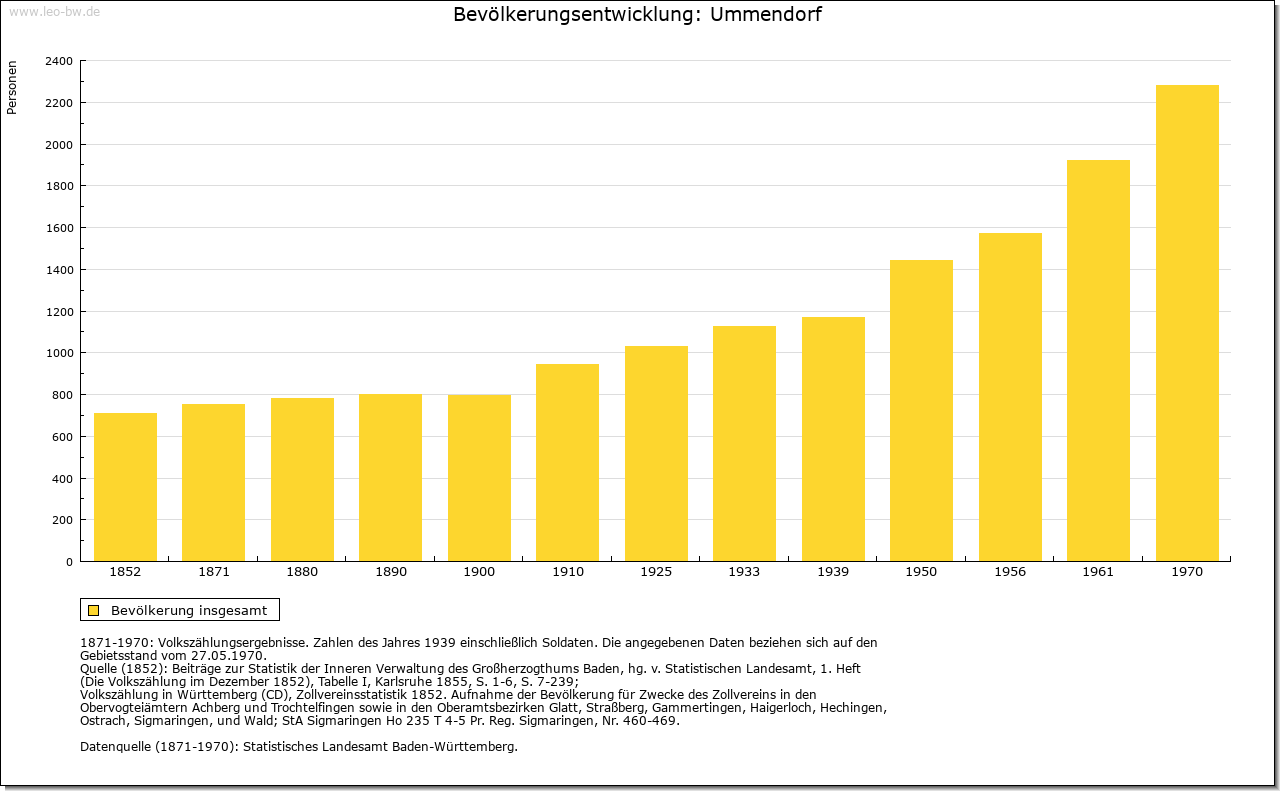 | Ortslage und Siedlung (bis 1970): | Haufendorf an der Einmündung des Umlachtals in das Rißtal. Großes Neubaugebiet mit Hochhäusern im Westen zwischen dem Ortskern und der Bahnlinie; starke Neubautätigkeit aber auch am östlichen und südöstlichen Ortsrand. |