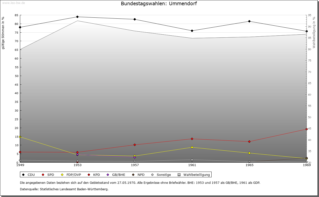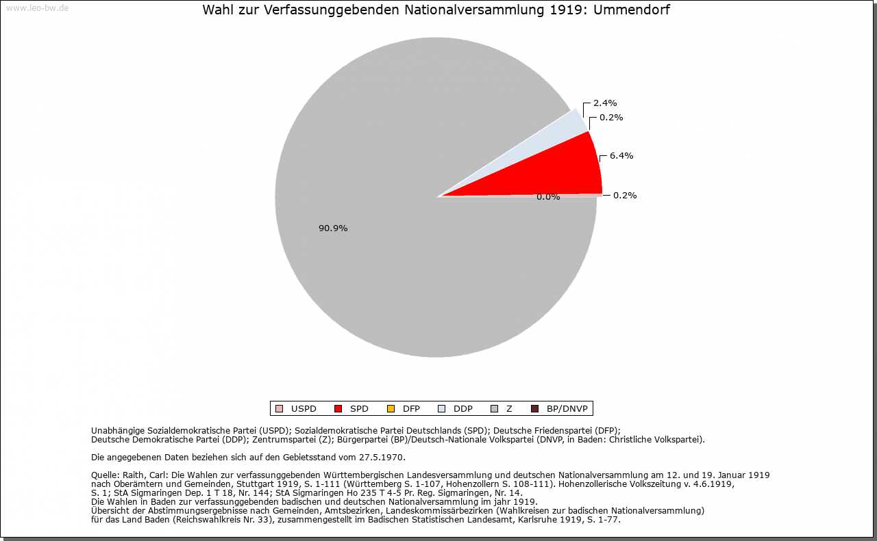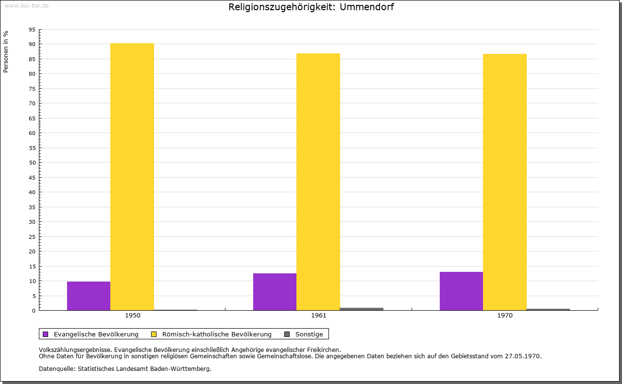 | Geschichte: | Um 1128 (Корie 17. Jahrhundert) Ummendorf (Personenname). Herren von Ummendorf um 1128 bis 1286 (1365); Hermann von Ummendorf war 1221 Marschall Kaiser Friedrichs II. Vor 1239 (Helwig »von Ummendorf«) waren hier die von Essendorf begütert; ihr restlicher Besitz erst 1440 verkauft. Ort mit Burgstall von den von Steußlingen über die von Schellenberg 1373 (1360) an Kloster Weißenau. 1554 durch Matthias Manlich aus Augsburg gekauft. 1555 Eintausch des Besitzes des Biberacher Spitals. Nach dem Erwerb durch Kloster Ochsenhausen (1565) Verleihung der hohen und malefizischen Obrigkeit 1566. Im 16. Jahrhundert wurde das Schloss (heute Pfarrhaus) gebaut, 1623 erweitert. Dreigeschossiger Bau mit 2 runden Ecktürmen, neue Außenfassung um 1750. Qualitätvolle spätbarocke Ausstattung. Lusthäuschen aus dem 18. Jahrhundert. Sitz der ochsenhausischen Prälaten. Von 1623 bis 1632 war hier ein Seminar für höhere philosophische und theologische Studien. Mit dem Klosteramt Ummendorf 1803 an Fürst von Metternich-Winneburg. 1806 unter württembergische Staatshoheit, Oberamt (1938 Landkreis) Biberach. Standesherrschaft 1825 an den Staat verkauft. |