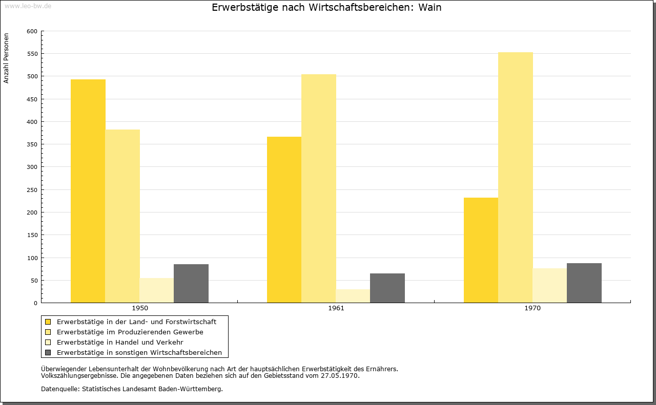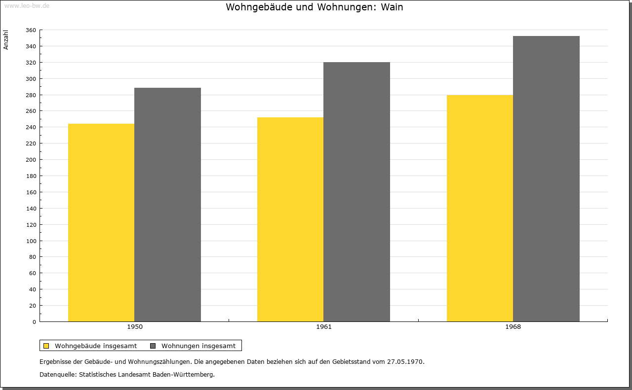 | Ortslage und Siedlung (bis 1970): | Wain ist ein langgestrecktes Dorf entlang der Weihung. Seit Mitte des 17. Jahrhunderts linearer Ausbau nach Westen (Ortsteil Bethlehem), dort heute Gewerbegebiet. Neubaugebiet im Südwesten. |