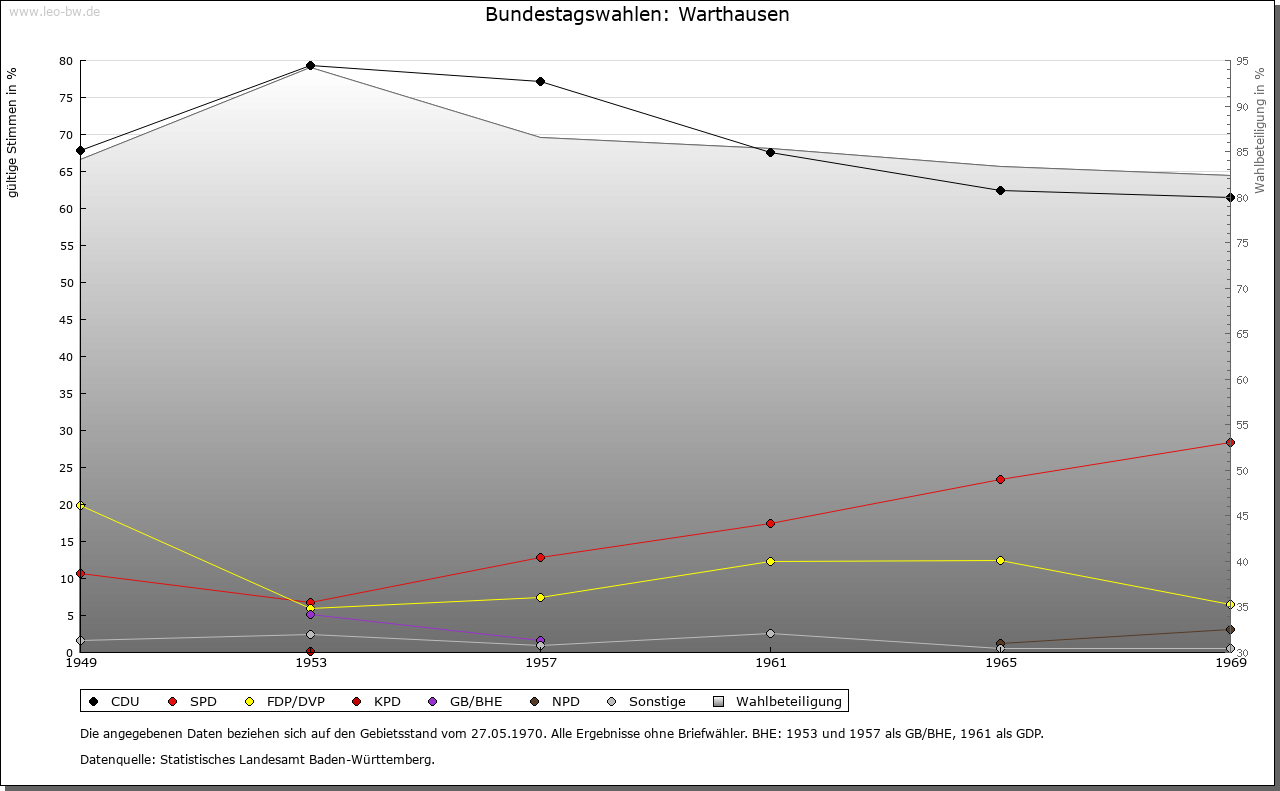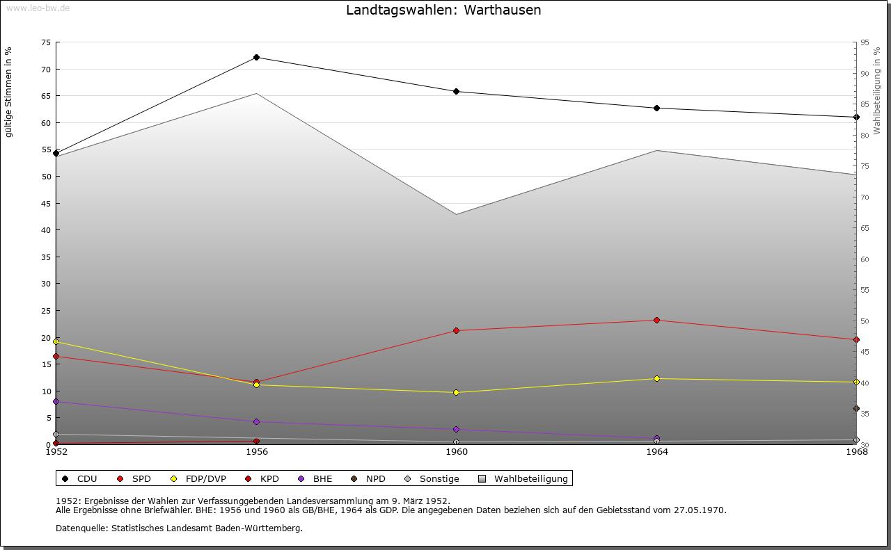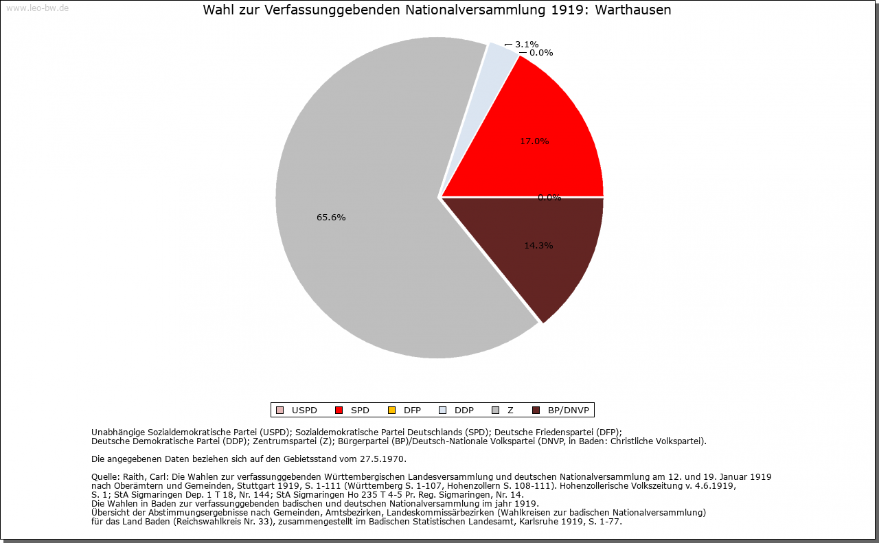 | Geschichte: | Um 1120 (Корie 16. Jahrhundert) Warthusen (Personenname Warto?). Siedlung der älteren Ausbauzeit. Marktrecht 1777. Hauptort der Herrschaft Warthausen, mit dieser 1806 unter württembergische Landeshoheit, Oberamt (1938 Landkreis) Biberach. |