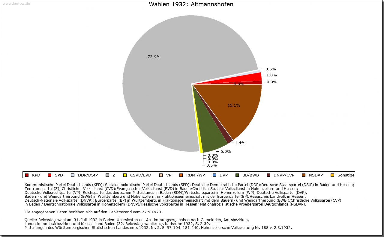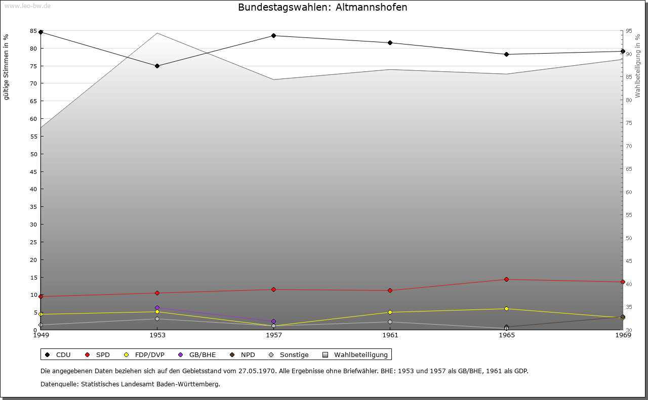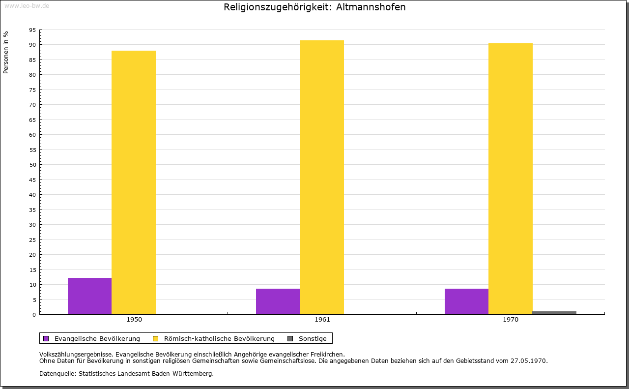 | Geschichte: | 1188 Altmannishovin (Personenname). Siedlung des 8./9. Jahrhunderts Herren von Altmannshofen sind ab 1201 genannt. Seitenlinie der welfischen, später staufischen Ministerialenfamilie von Lautrach (Marschallamt in Schwaben). Die Herrschaft Altmannshofen kam 1539 durch Kauf an die Herren von Landau, 1601 an die Freiherren von Muggenthal und 1662 an das Haus Waldburg-Zeil. Hohe Gerichtsbarkeit im 16. Jahrhundert bei der Grafschaft Zeil, niedere bei den Herrschaftsinhabern. Dem Ritterkanton Hegau-Bodensee-Allgäu steuerbar. Schloss um 1620 umgebaut, im 18. Jahrhundert renoviert. Vereinödung 1803. Seit 1810 endgültig württembergisch, Oberamt Leutkirch, 1938 Landkreis Wangen. |