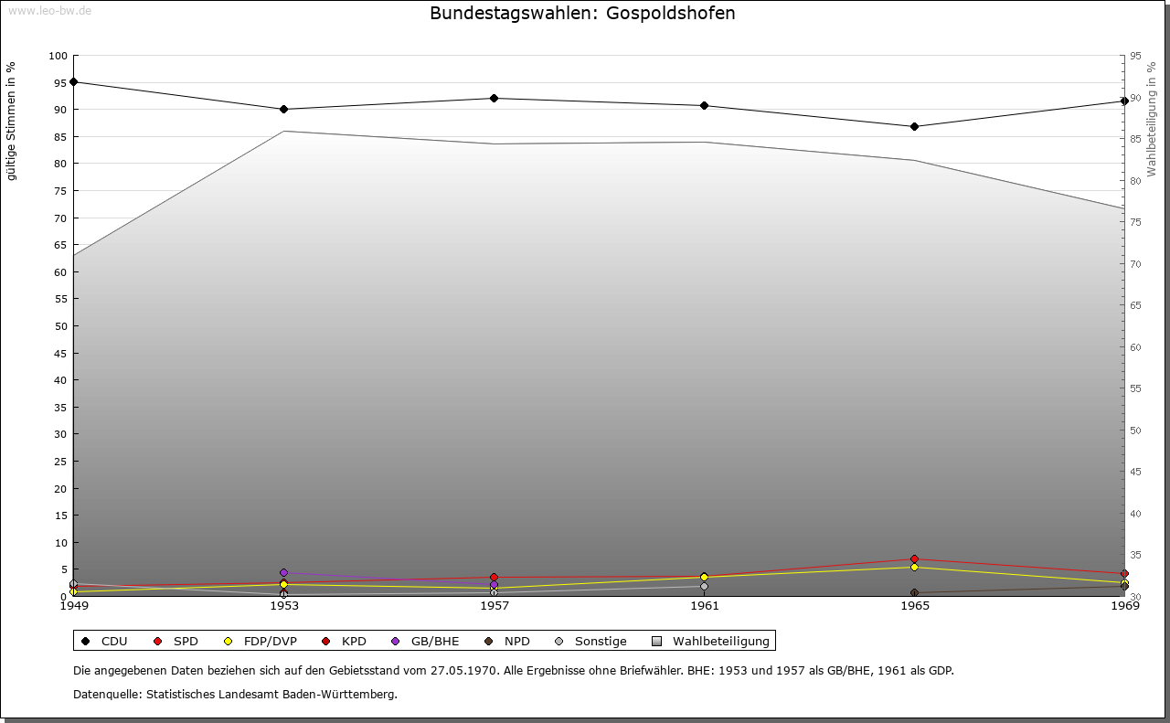 | Geschichte: | 1128 (Корie 12. Jahrhundert) Gozboldishoven, 1278 Goespolzhoven, 1290 Gozoltzhofen (Personenname), Siedlung des 8./9. Jahrhunderts. Besitz der Klöster Baindt, Ochsenhausen und Weingarten. Vereinödung 1789. Das Gebiet wurde 1823 von Wurzach abgetrennt und zur selbständigen Gemeinde erhoben. Bis 1849 in administrativer und polizeilicher Hinsicht unter dem Waldburg-Zeil-Wurzachischen Amt Wurzach. 1909 Bau des Rathauses der Gemeinde Gospoldshofen in der Stadt Wurzach (Neubau 1968/69). |