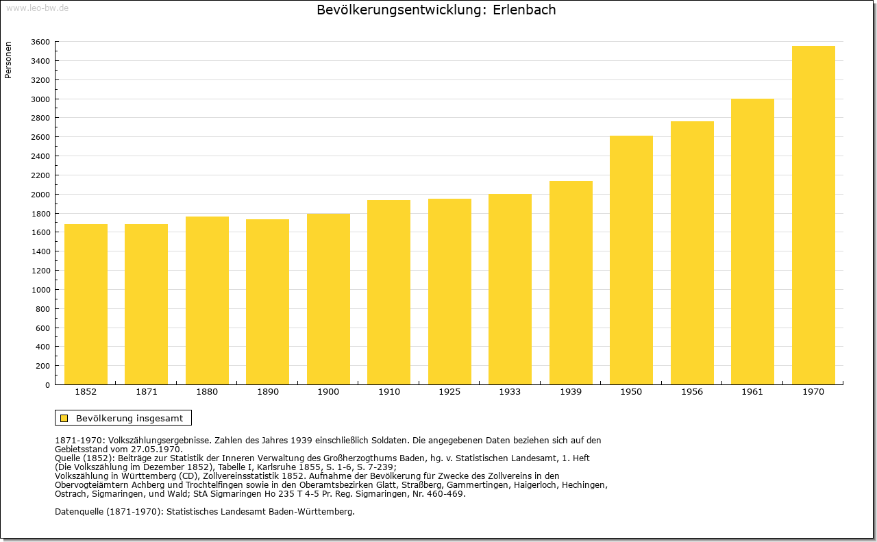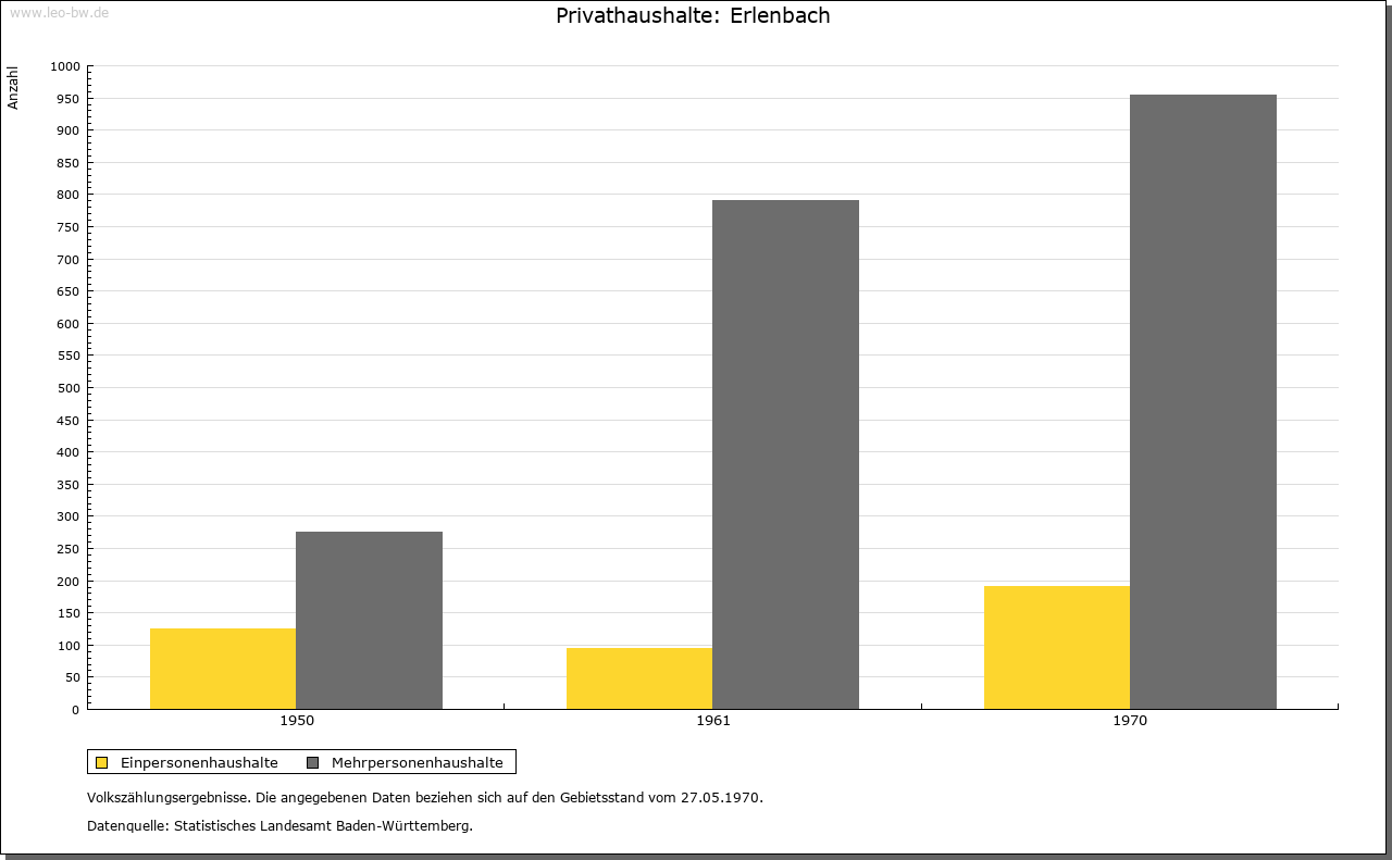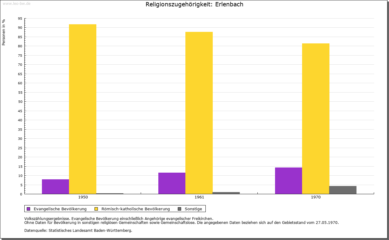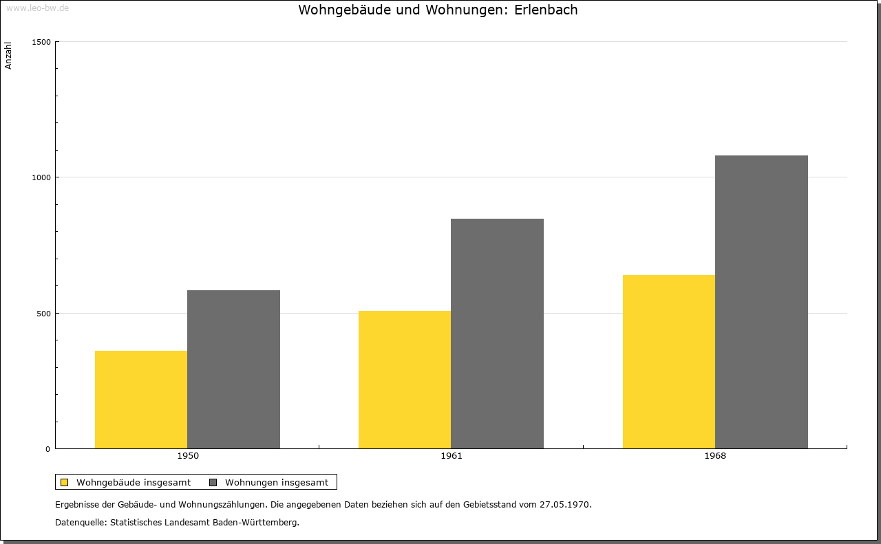 Ortslage und Siedlung (bis 1970): | Im Erlenbacher Gewann Ohrberg entdeckte bandkeramische Tonscherben sind die bislang ältesten Zeugnisse hiesiger Besiedlung. Aus der Bronzezeit stammen eine Reihe von Pfeilspitzen sowie ein Grabhügel am Geißberg nordöstlich von Erlenbach. Die erste Erwähnung Erlenbachs (»ad Erlebach«) datiert aus dem dritten Viertel des 12. Jahrhunderts; kurz darauf erscheinen Erlenbach (»Erlibach«) und Binswangen (»Binzwange«), die sich von alters her eine Gemarkung teilten, nebeneinander (1176). Beide Orte dürften in der jüngeren, hochmittelalterlichen Ausbauzeit entstanden sein. Ihre Namen sind Stellenbezeichnungen und beziehen sich im einen Fall auf ein von Erlen gesäumtes Fließgewässer, im anderen Fall auf ein Binsenfeld. 1554 bestanden Binswangen aus 63 und Erlenbach aus 86 Häusern. Im Dreißigjährigen Krieg wurden beide Dörfer schwer heimgesucht; im Dezember 1642 brannten schwedische und französisch-weimarische Truppen Erlenbach nieder. Bereits Mitte der 1620er Jahre und 1635 hatte die Pest zahlreiche Opfer gefordert, so dass 1626 außerhalb des Dorfs ein Pestfriedhof angelegt werden musste. Um 1800 belief sich die Zahl der Häuser in Erlenbach auf 142, in Binswangen auf 75. Zu den Neubaugebieten der Zeit nach dem zweiten Weltkrieg aus Ein- und Zweifamilienhäusern zählen unter anderem östlich »Viertel Steige« und »Jauchen« (1960/70), Weißenhofstraße, Auweg, nördlich »Seegärten« (1962/70), Klingenstraße, nordwestlich »Sponshalden« (1964/68), Schießmauer, westlich an der Friedensstraße und südlich an der Talstraße, »Im Unterwasser«, Neckarsulmer Straße, Weinsberger Straße. Ein Gewerbebetrieb ließ sich am Ostrand des Orts nieder. |