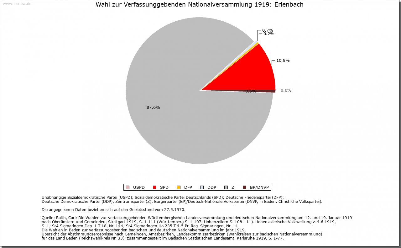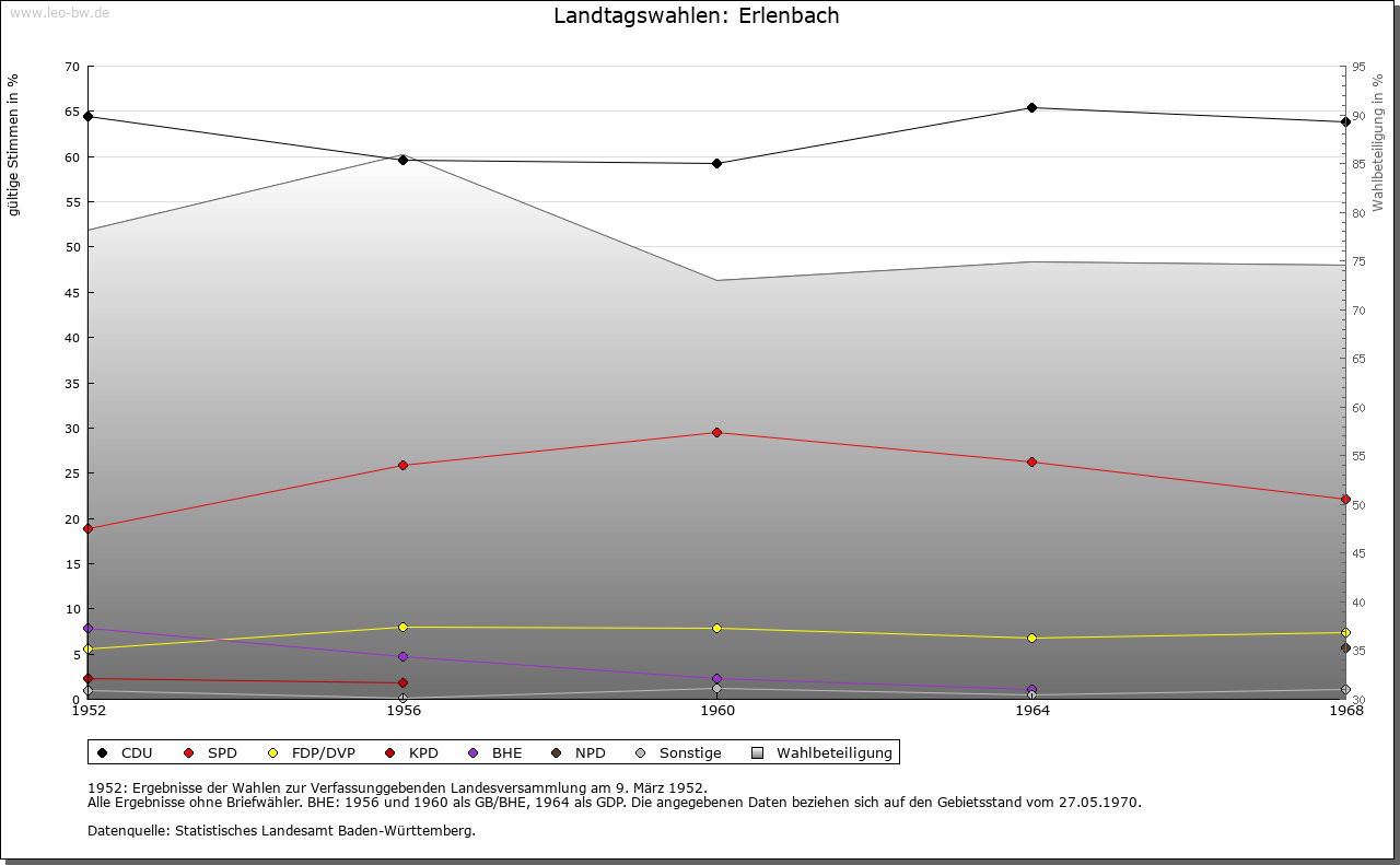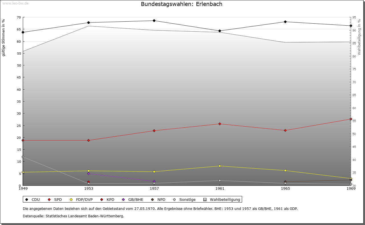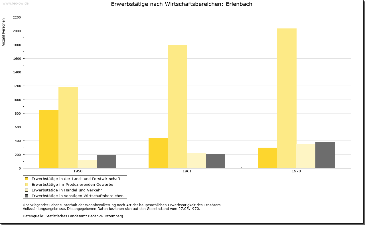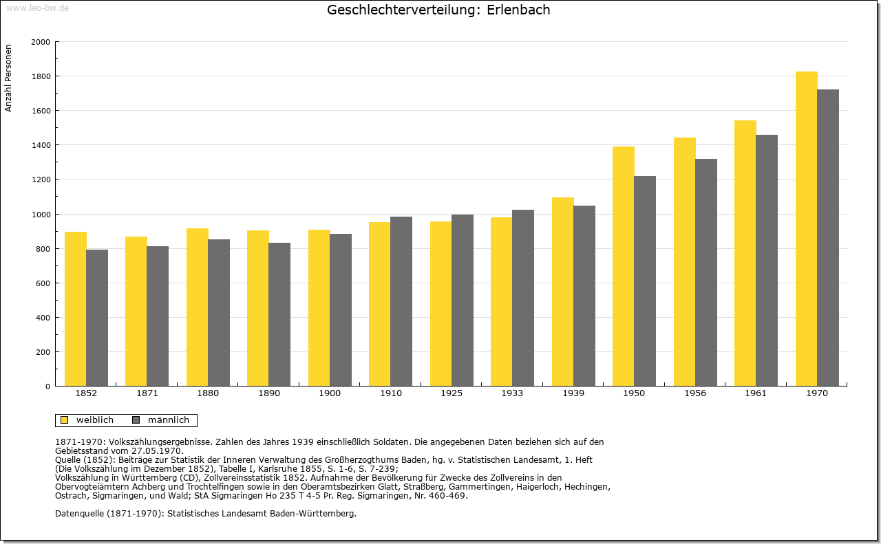 Ortslage und Siedlung (bis 1970): | Im Erlenbacher Gewann Ohrberg entdeckte bandkeramische Tonscherben sind die bislang ältesten Zeugnisse hiesiger Besiedlung. Aus der Bronzezeit stammen eine Reihe von Pfeilspitzen sowie ein Grabhügel am Geißberg nordöstlich von Erlenbach. Die erste Erwähnung Erlenbachs (»ad Erlebach«) datiert aus dem dritten Viertel des 12. Jahrhunderts; kurz darauf erscheinen Erlenbach (»Erlibach«) und Binswangen (»Binzwange«), die sich von alters her eine Gemarkung teilten, nebeneinander (1176). Beide Orte dürften in der jüngeren, hochmittelalterlichen Ausbauzeit entstanden sein. Ihre Namen sind Stellenbezeichnungen und beziehen sich im einen Fall auf ein von Erlen gesäumtes Fließgewässer, im anderen Fall auf ein Binsenfeld. 1554 bestanden Binswangen aus 63 und Erlenbach aus 86 Häusern. Im Dreißigjährigen Krieg wurden beide Dörfer schwer heimgesucht; im Dezember 1642 brannten schwedische und französisch-weimarische Truppen Erlenbach nieder. Bereits Mitte der 1620er Jahre und 1635 hatte die Pest zahlreiche Opfer gefordert, so dass 1626 außerhalb des Dorfs ein Pestfriedhof angelegt werden musste. Um 1800 belief sich die Zahl der Häuser in Erlenbach auf 142, in Binswangen auf 75. Zu den Neubaugebieten der Zeit nach dem zweiten Weltkrieg aus Ein- und Zweifamilienhäusern zählen unter anderem östlich »Viertel Steige« und »Jauchen« (1960/70), Weißenhofstraße, Auweg, nördlich »Seegärten« (1962/70), Klingenstraße, nordwestlich »Sponshalden« (1964/68), Schießmauer, westlich an der Friedensstraße und südlich an der Talstraße, »Im Unterwasser«, Neckarsulmer Straße, Weinsberger Straße. Ein Gewerbebetrieb ließ sich am Ostrand des Orts nieder. |
