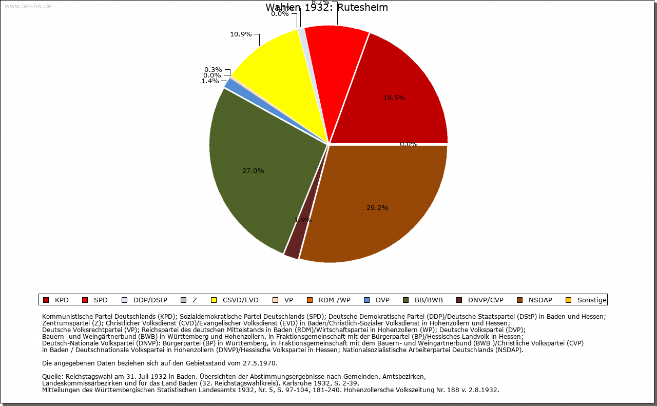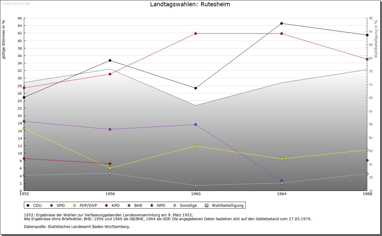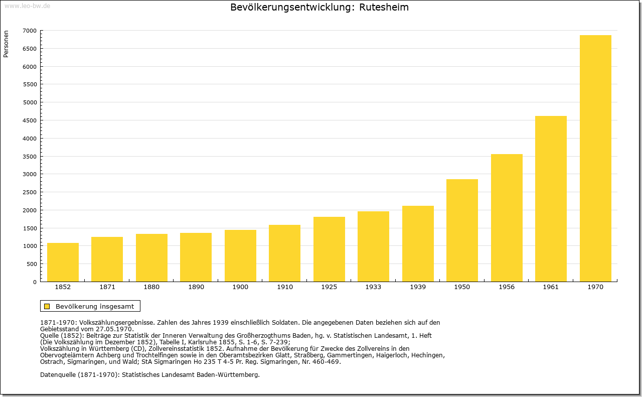 | Geschichte: | 767 Rothmar(e)sheim, um 1110 Ruthmersheim (Personenname Routmar). Merowingerzeitlicher Ort mit zahlreichen Reihengräbern. Kloster Lorsch erhielt hier 767 Besitz, Kloster Hirsau erstmals im späten 11. Jahrhundert. Weitere Schenkungen erhielt Hirsau um 1100 und um 1170 von Mitgliedern der nur dabei auftretenden Familie von Rutesheim, ferner von Edelfreien von Salzstetten und den von Talacker. Der Ort gehörte (ob nach Calwer Vorbesitz?) im späten 13. Jahrhundert den Tübinger Pfalzgrafen, die ihn 1302 an Württemberg verkauften. Dieses erwarb 1318 auch den Hirsauer Besitz. Im 15. Jahrhundert gehörte Rutesheim zum Witwengut der Erzherzogin Mechthild und damit wohl zum Amt Böblingen, sonst war bis 1972 Leonberg zuständiger Verwaltungssitz. Im 14. Jahrhundert war der Ort mit Graben und Toren befestigt. 1837 vernichtete ein Großbrand 120 Gebäude. |