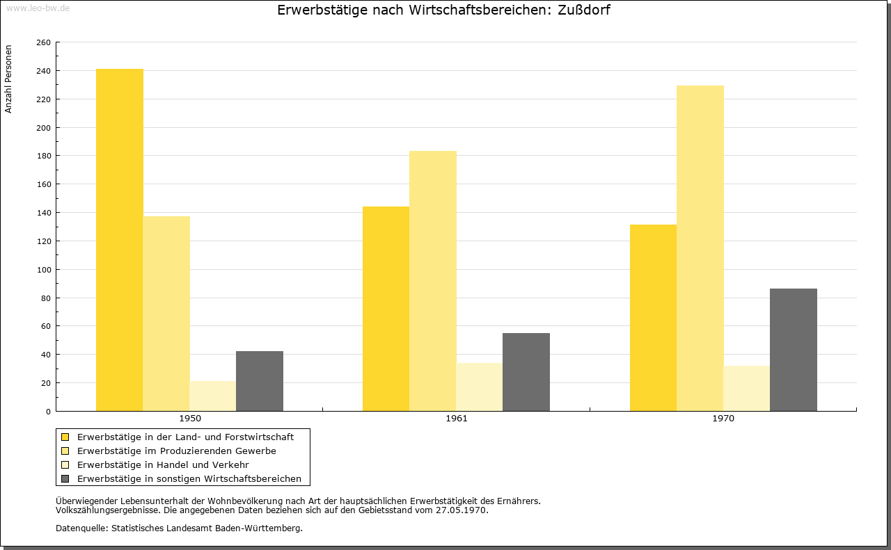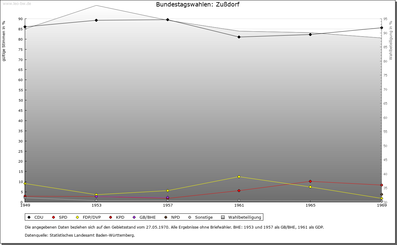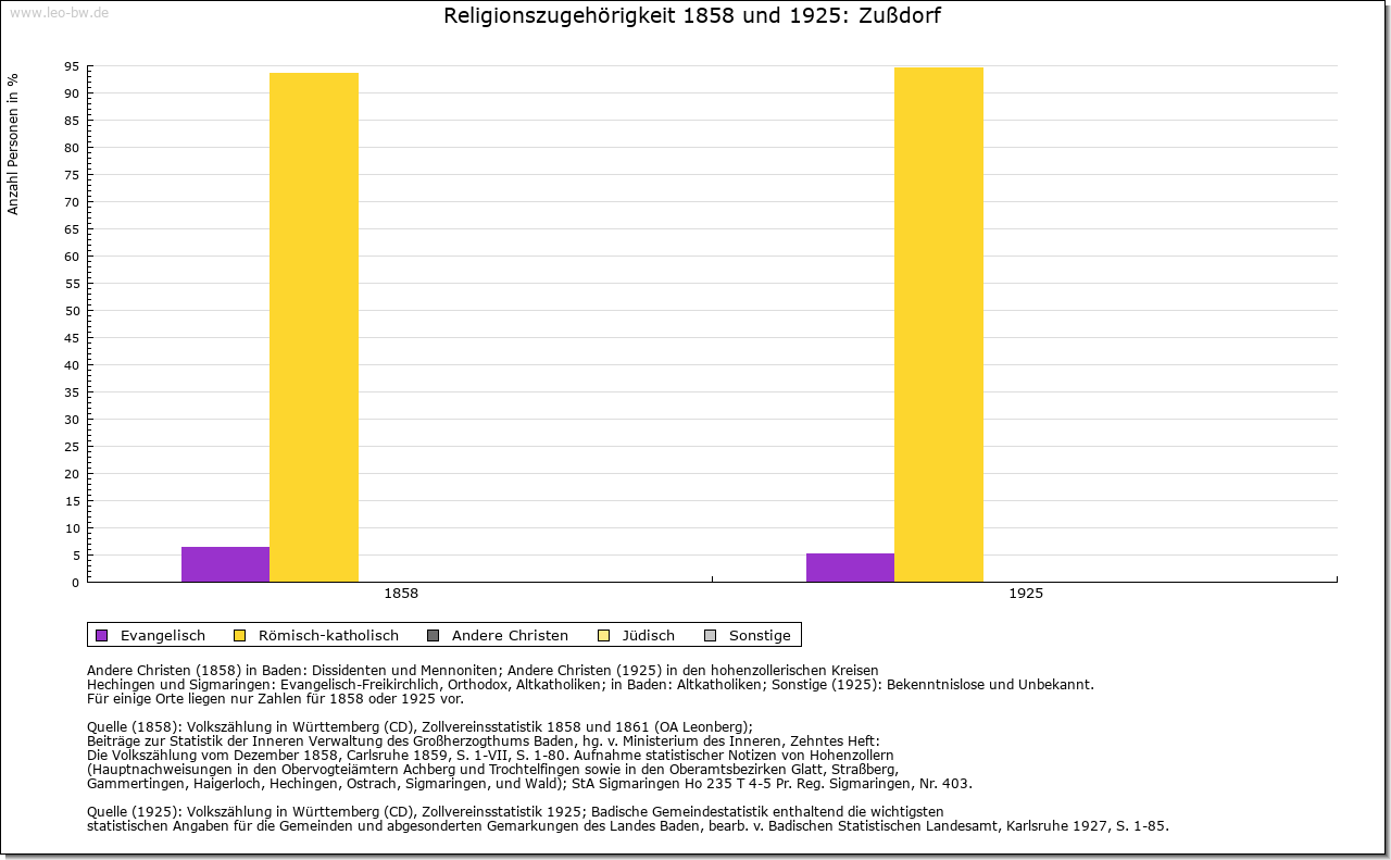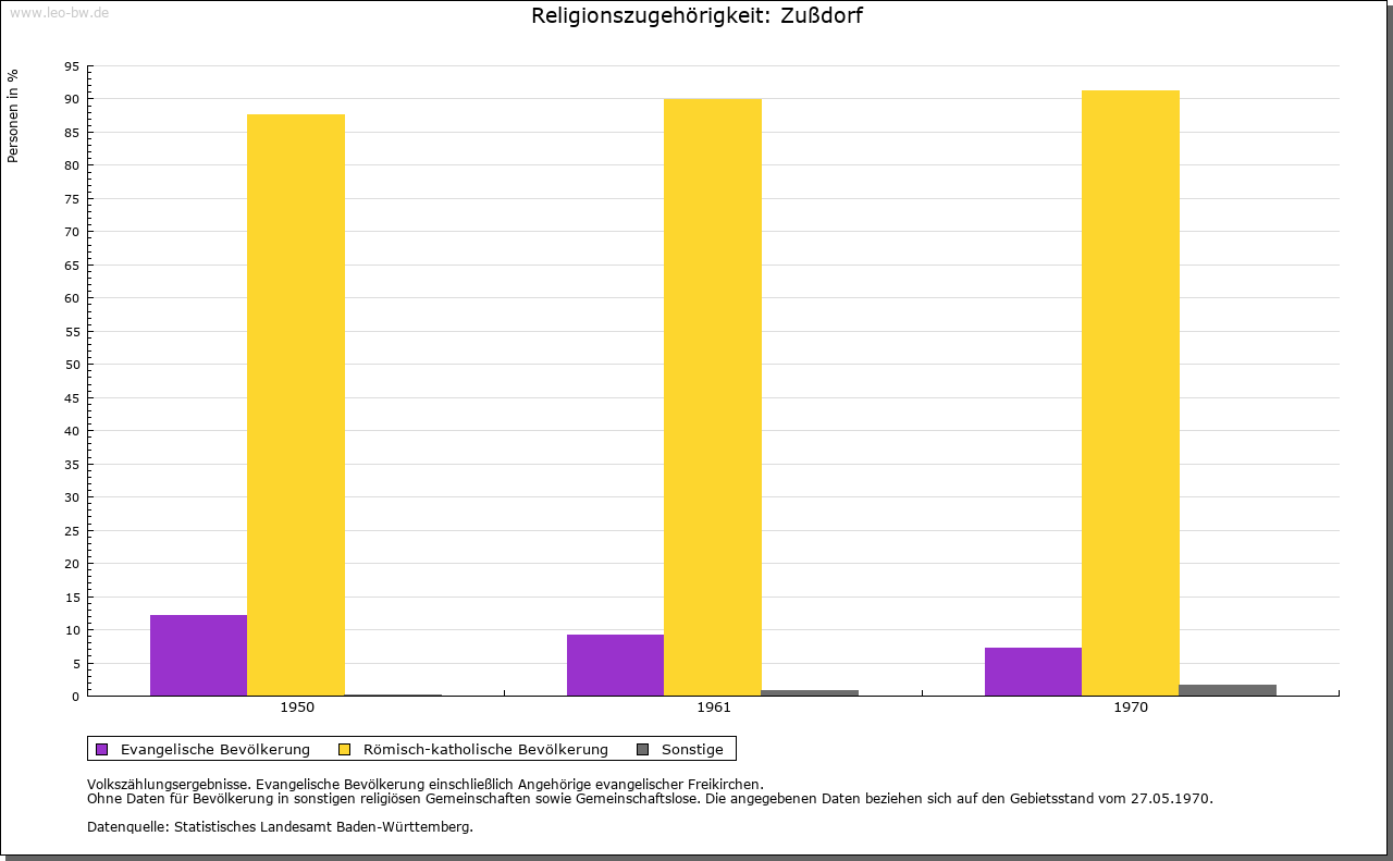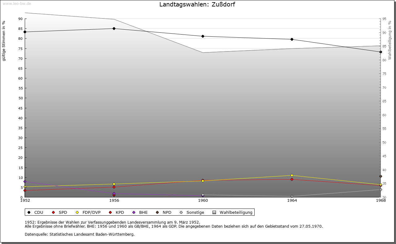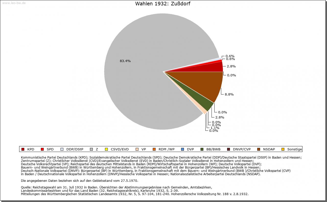 | Geschichte: | 1192 Zustorf (Personenname?). Siedlung der älteren Ausbauzeit. Merowingische Grabfunde unsicher. 1192 ist Heinrich von Zußdorf, Dienstmann der Grafen von Heiligenberg, genannt. Weitere Herren von Zußdorf sind Mitte des 13. Jahrhunderts bis Mitte des 14. Jahrhunderts erwähnt. Die Burg (1298 Castrum) und wohl auch das Dorf waren Eigenbesitz des Heinrich von Niuvrun (vermutlich Neufra bei Riedlingen), der wohl den größten Teil, darunter die Burg, 1298 den Grafen von Berg zu Lehen auftrug. Die Erben, wie auch in Neufra die Herren von Hornstein, überließen 1300 Burg und Dorf an die Gremlich von Pfullendorf, die sich (so 1400 bis 1431) nach dem Ort benannten. 1447 Verkauf an die Stadt Ravensburg. 1649 mit Bettenreute und Danketsweiler an die Hyrus von Homburg, 1659 an von Rehling, und fortan Teil des Ritterguts Bettenreute. Burg im 30jährigen Krieg zerstört, Turm 1823 abgebrochen. Die Landeshoheit war strittig zwischen der Grafschaft Heiligenberg und der Landvogtei Schwaben. 1805 an Württemberg. Patrimonialamt Bettenreute bis 1809. Oberamt Altdorf, 1810 Oberamt (1938 Landkreis) Ravensburg. 1810 Schultheißerei, 1826 zur Gemeinde Esenhausen, 1829 wieder selbständige Gemeinde. |