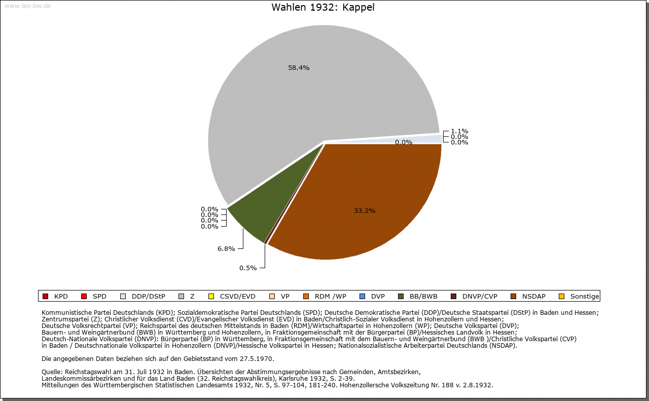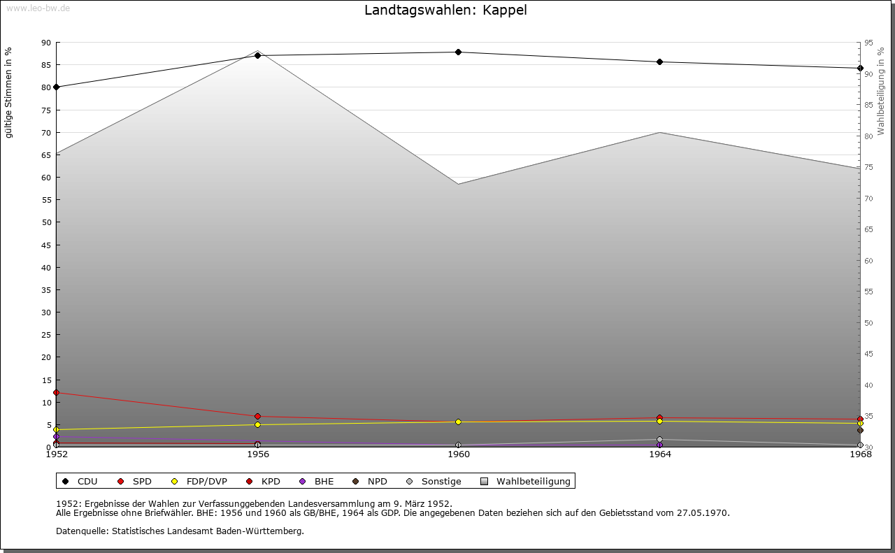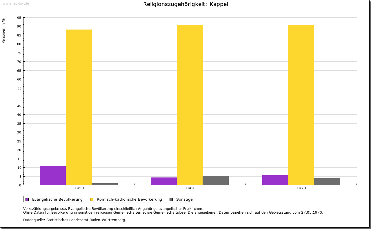 Geschichte: 12. Jahrhundert Kapilla, 1228 Capella. Der Ort entstand vermut­lich bei einer Kirche der Merowingerzeit; aus dieser Zeit sollen auch Grabfunde stammen. Niederadel 1183 bis 1263 bekannt, im 13. Jahrhundert Dienstleute der Grafen von Veringen. Später zur Landvogtei Schwaben und deren Amt Wolketsweiler. Nach dem Anfall an Württemberg 1805 (Oberamt Altdorf, 1810 Oberamt, 1938 Landkreis Ravensburg) blieb das alte landvogteiliche Amt zunächst bestehen, bis daraus 1826 die Gemeinde Kappel, bei im wesentlichen unverändertem Umfang, hervorging. 1849 erfolgte die Abtren­nung des Gemeindegebiets Wolketsweiler.