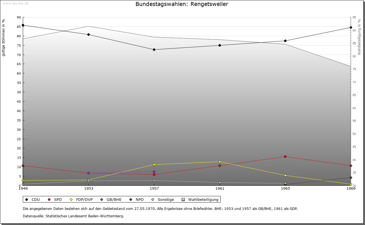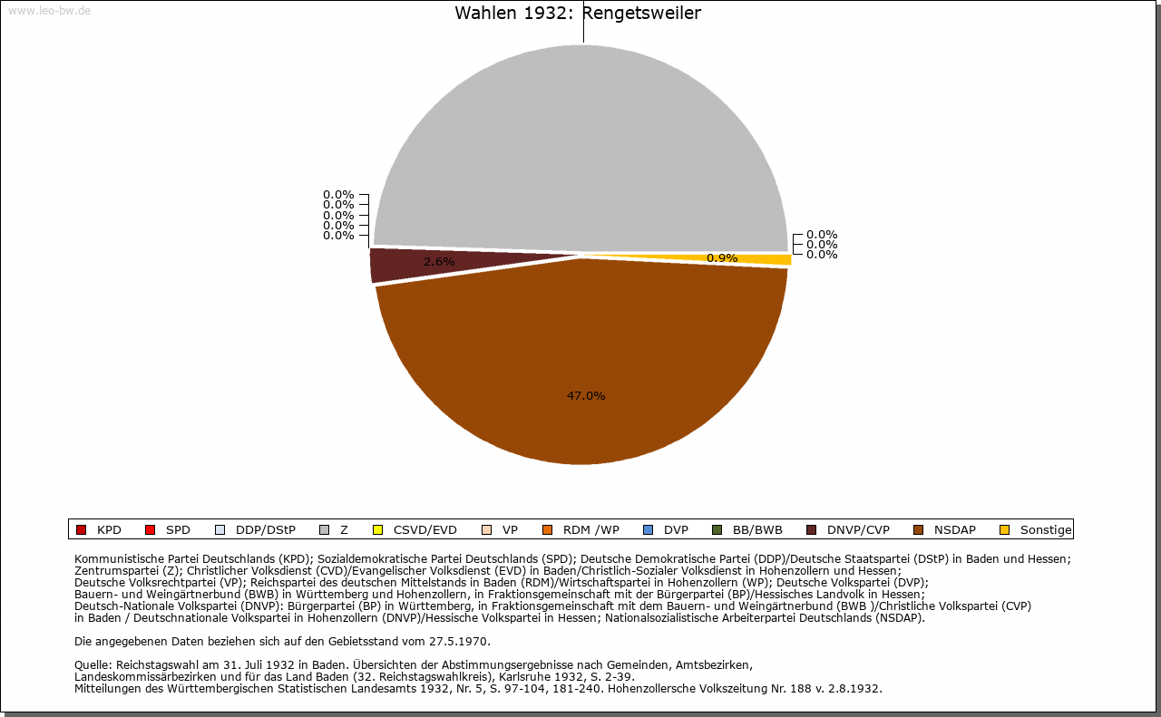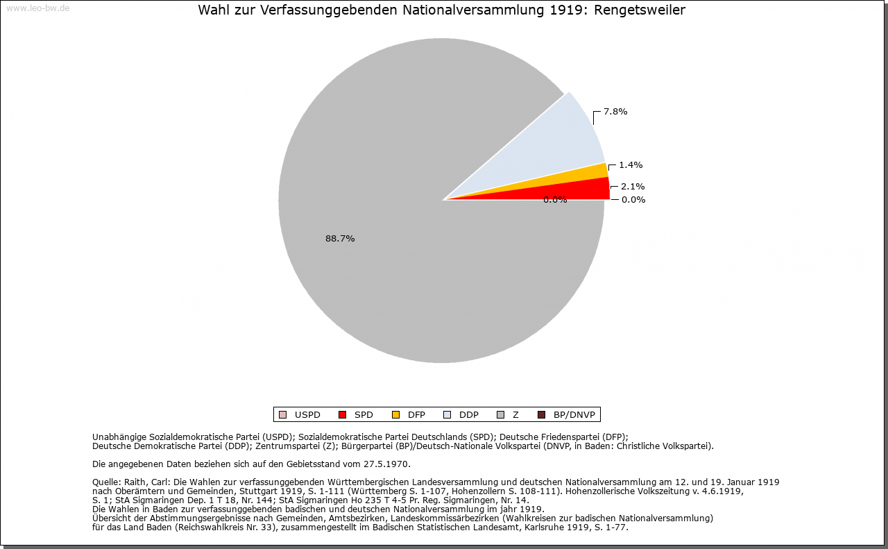 | Geschichte: | 1256 Renwerrwiler, 1301 Rengartswiler (Personenname Reginger). Ausbausiedlung des 8./9. Jahrhunderts. Die Lokalisierung früher Nennungen des Ortsnamen ist schwierig, da dieser in ähnlicher Form öfters vorkommt. Der gelegentlich hierher gezogene Adel (mit dem Lindenblatt im Wappen) gehört wohl nach Regentsweiler bei Ludwigshafen/Bodensee. Das Dorf war wohl schon früh, nachweisbar erst 1399, Bestandteil der Grafschaft Sigmaringen, die auch die Ortsherrschaft ausübte. 1806 Fürstentum Hohenzollern-Sigmaringen. 1826 Oberamt Wald (1850 preußisch), 1862 wieder Oberamt (1925 Landkreis) Sigmaringen. |