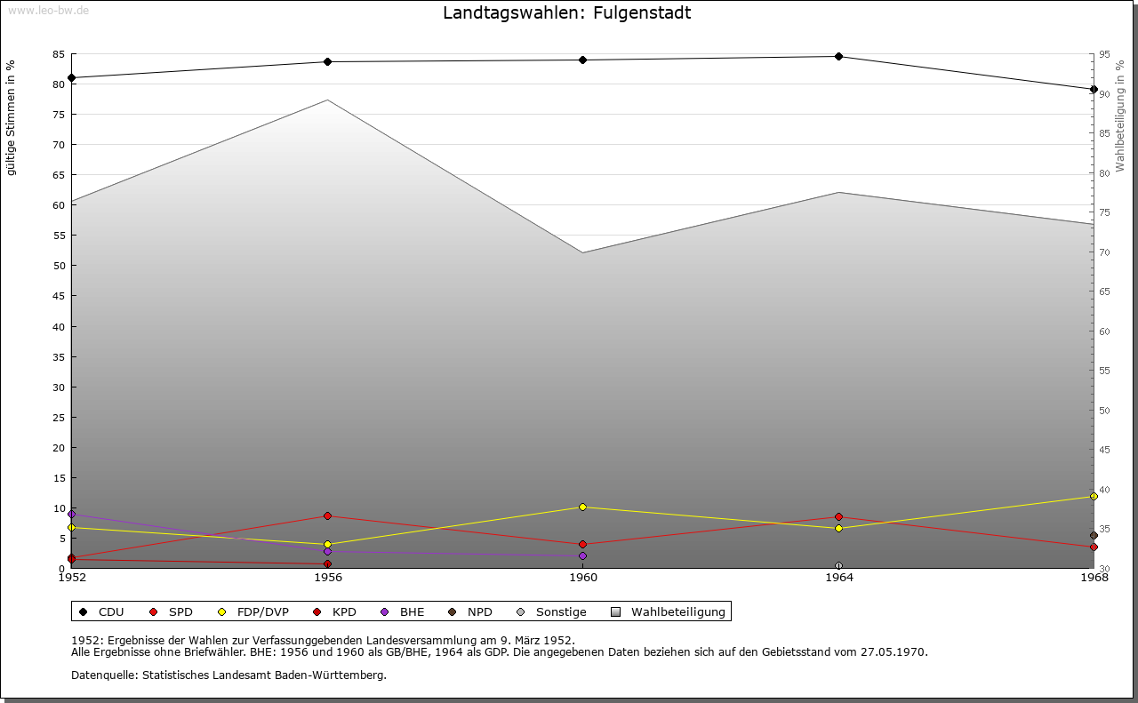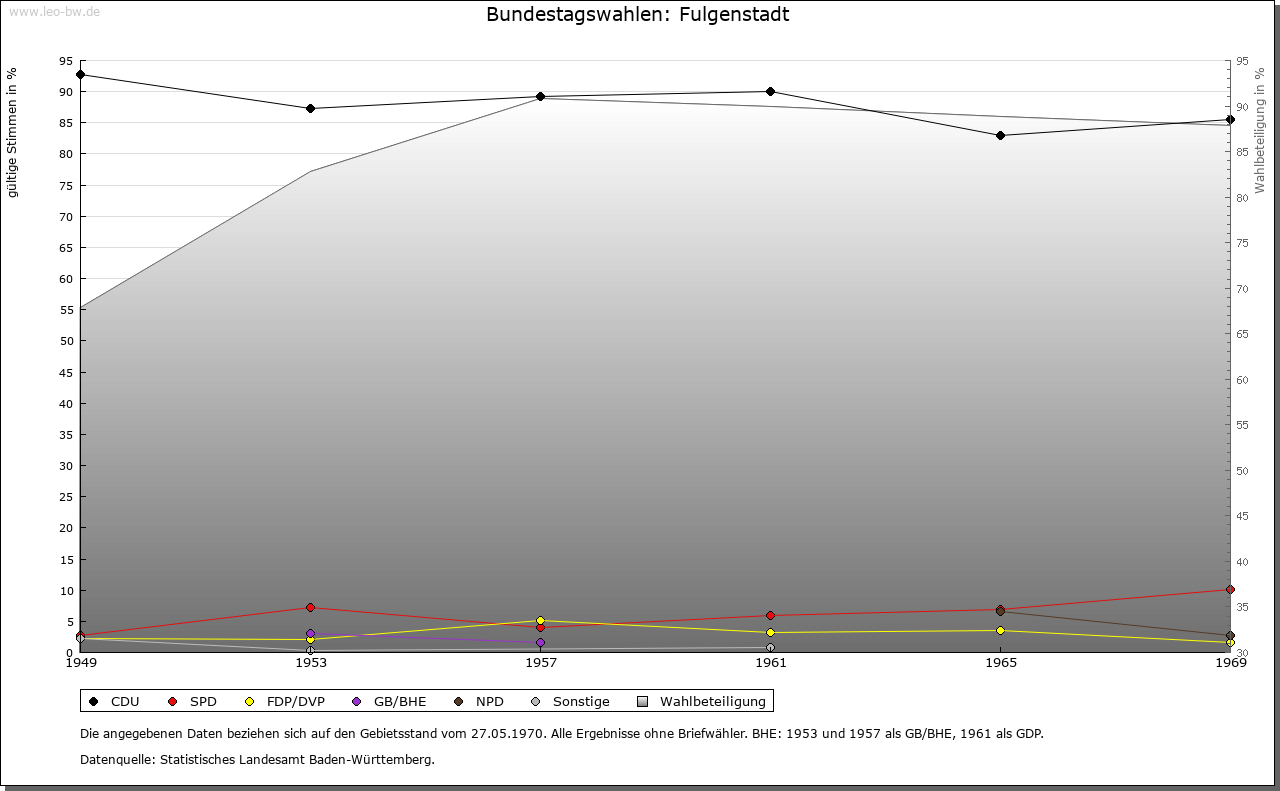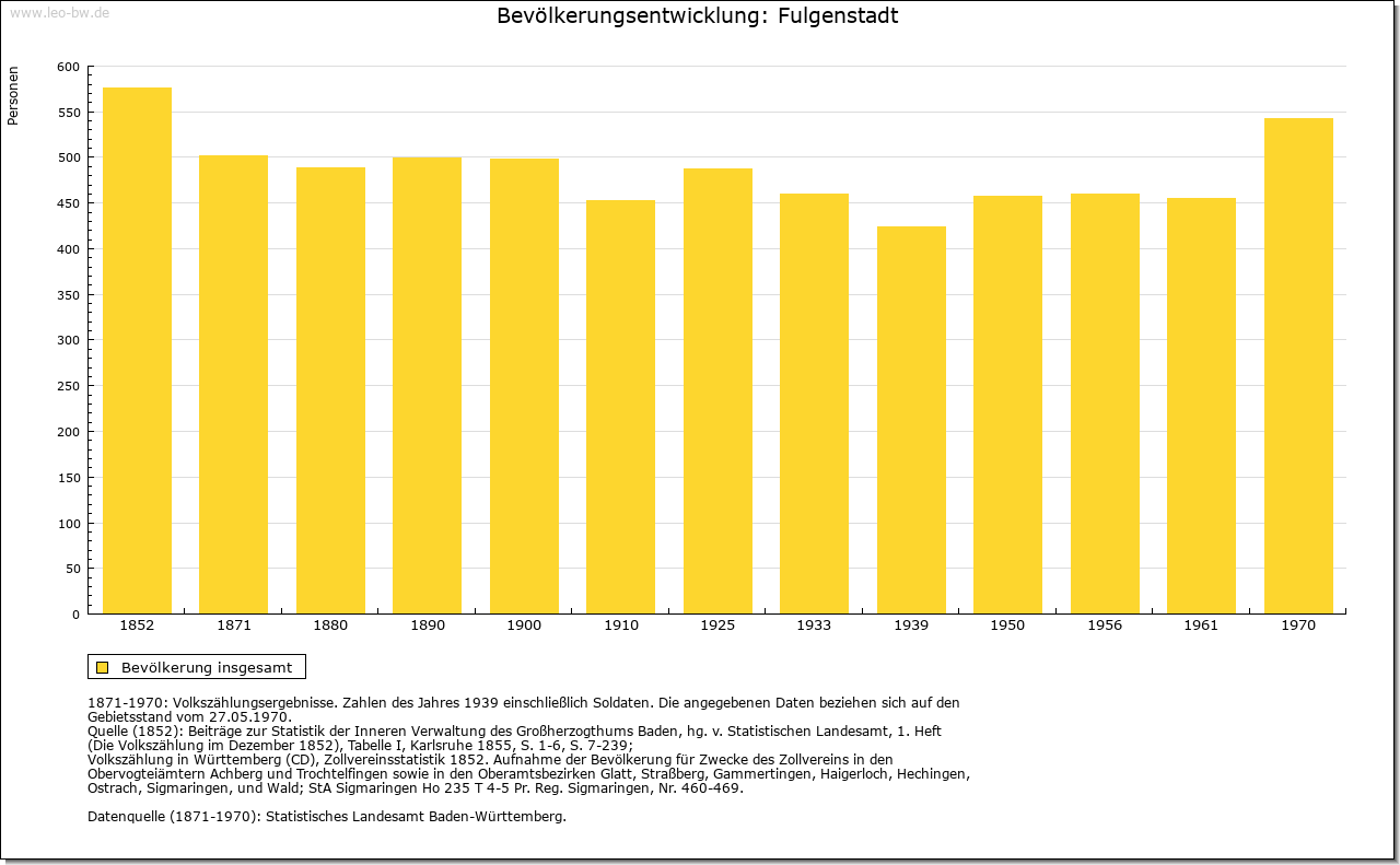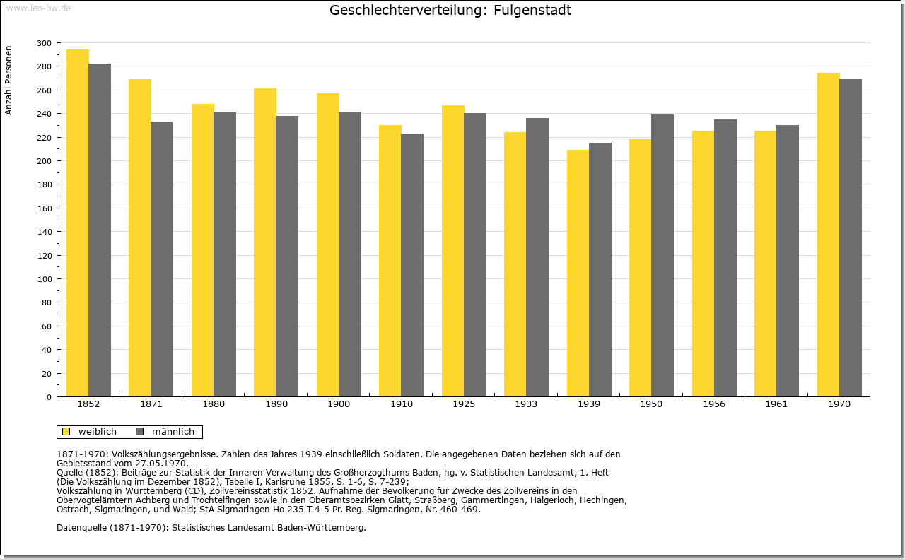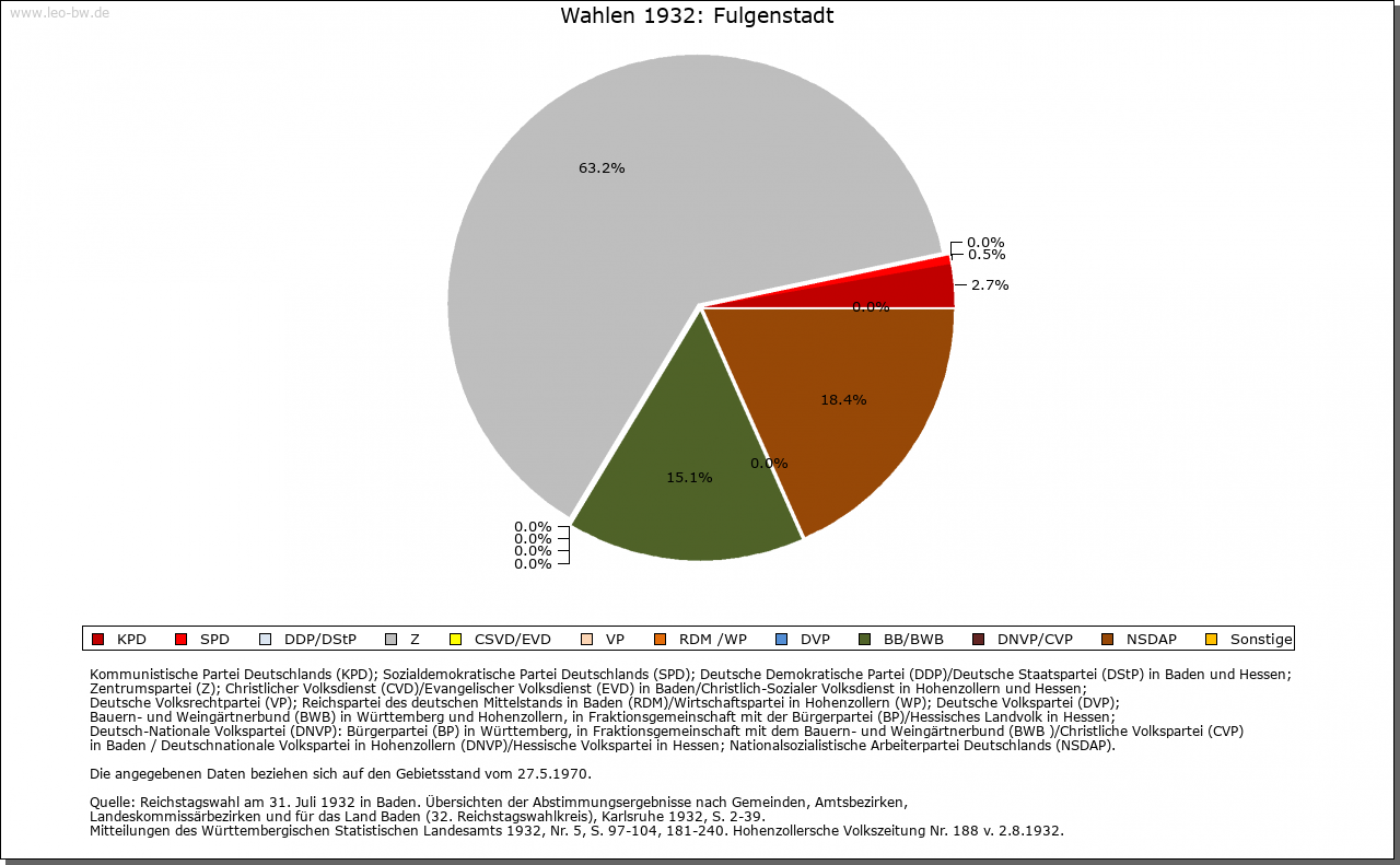 | Geschichte: | 1094 (Fälschung 13. Jahrhundert) Fuligunstat (wohl Personenname). Die Anfänge der Siedlung reichen vermutlich in die Merowingerzeit zurück. Der niederadlige Werner von Fulgenstadt tritt 1171 auf; 1340 wird ein Albrecht von Fulgenstadt erwähnt. Oberhoheit mit Saulgau 1299 an Habsburg; später war der Ort Teil der Grafschaft Friedberg. 1452/54 an die Truchsessen von Waldburg, 1786 an die Fürsten von Thurn und Taxis. 1806 unter württembergische Staatshoheit, Oberamt Saulgau. Die Thurn und Taxissche Patrimonialverwaltung (Oberamt beziehungsweise Amt Scheer) bestand bis 1849 (mit Unterbrechung 1809 bis 1823). 1938 Landkreis Saulgau. |