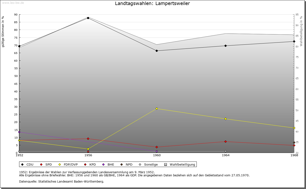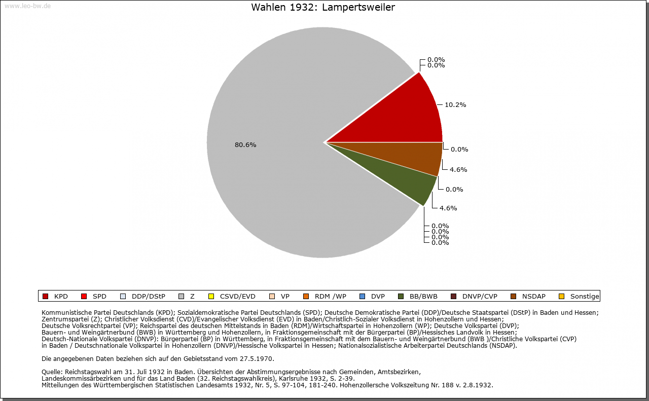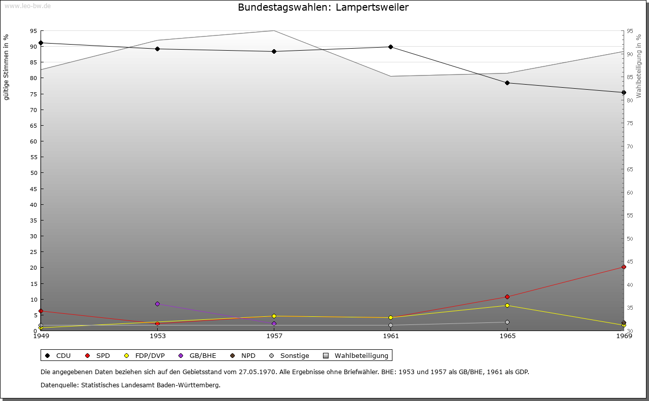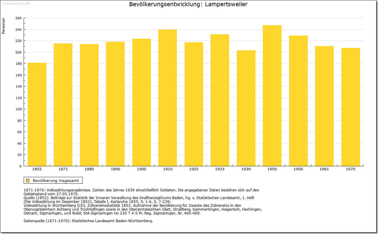 | Geschichte: | 1122 Lampolteswilare (Personenname Lantbold). Ausbausiedlung des 8./9. Jahrhunderts. 1122 und im 13. Jahrhundert kommen Herren von Lampertsweiler vor (hierher oder zu einem anderen Ort dieses Namens?). Der Ort gehörte seit dem 14. Jahrhundert zur Grafschaft Friedberg und zum Amt Sießen, da die Grundherrschaft größtenteils dem Kloster zustand. Mit Friedberg an die Truchsessen von Waldburg, 1786 an Thurn und Taxis (Oberamt beziehungsweise Amt Scheer). 1806 unter württembergische Staatshoheit, Oberamt Saulgau. Die Thurn und Taxissche Patrimonialverwaltung blieb mit Unterbrechung bis 1849 bestehen. 1938 Landkreis Saulgau. |