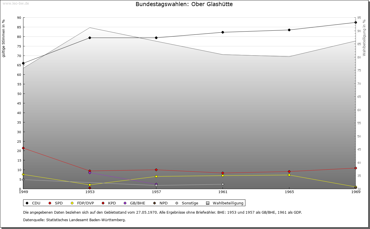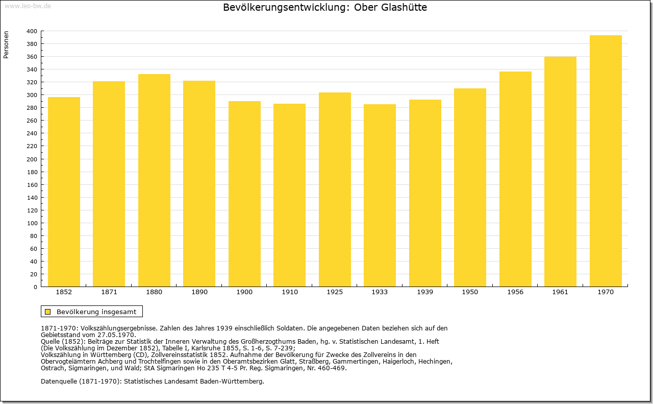 | Geschichte: | Die beiden erstmals im 16. Jahrhundert erwähnten Siedlungen Ober- und Unterglashütte entstanden im Spätmittelalter beziehungsweise im 16. Jahrhundert aus Glashütten, wie die ursprünglichen Namen alte und neue Glashütte beweisen. Sie teilten die Geschicke von Stetten am kalten Markt, zu dem sie auch kirchlich gehören. |