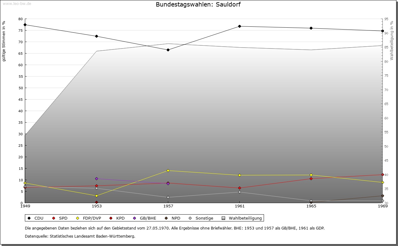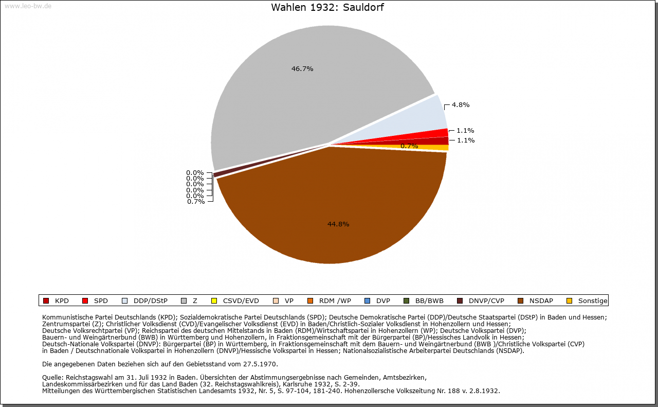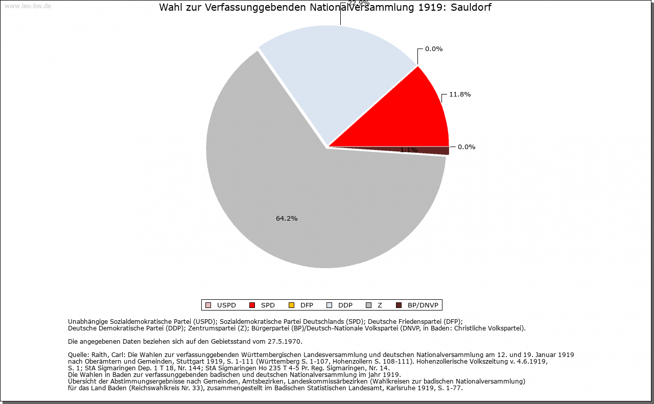 | Geschichte: | Um 983 (Chronik um 1150) Suldorf (= Dorf an der Sule = Wildlache), wohl aus der fränkischen Ausbauzeit. Bei seiner Gründung erhielt Kloster Petershausen umfangreichen Grundbesitz aus den Familiengütern des Bischofs Gebhard II. von Konstanz, den es bis zur Säkularisation behielt. Sauldorf war Bestandteil der Herrschaft Herdwangen. Die Vogtei über den Klosterbesitz wurde von Kaiser Otto IV. Anfang des 13. Jahrhunderts (wohl zwischen 1208 und 1212) der Familie von Schmalegg übertragen. 1385 und 1403 befand sie sich im Besitz Burkhards von Hohenfels; seit 1474 im Besitz der Familie von Zimmern nachweisbar. Während die hohe Gerichtsbarkeit der Grafschaft Sigmaringen zustand, besaß Kloster Petershausen das Niedergericht, die Steuer- und Militärhoheit. Mit der Säkularisation 1803 an Baden. 1842 vom Вezirksamt Pfullendorf zum Вezirksamt Meßkirch. 1936 Вezirksamt (1939 Landkreis) Stockach. |