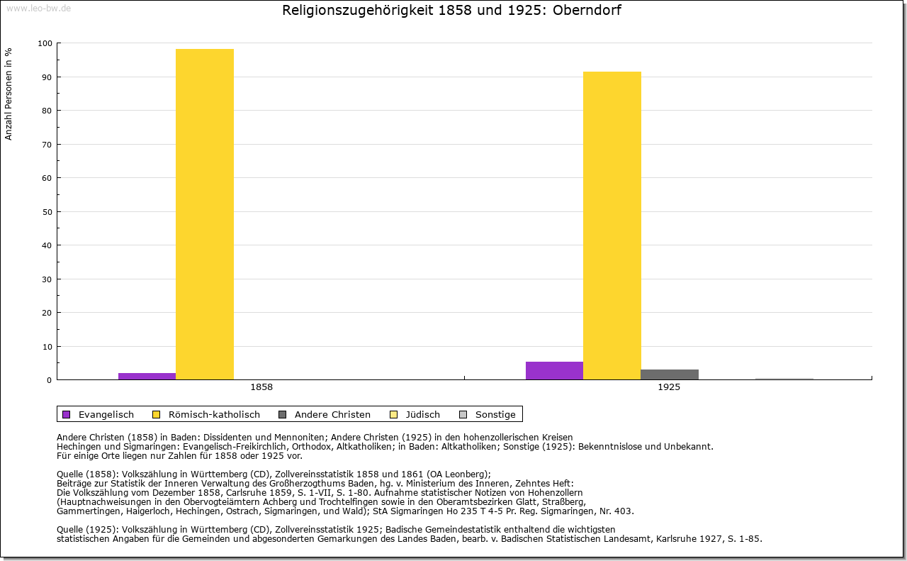 | Geschichte: | 975 (Chronik 12. Jahrhundert) Hoberendorf. Vermutlich Siedlung der älteren Ausbauzeit. Der Ort gehörte wohl schon früh, nachweisbar aber erst im 15. Jahrhundert, zur Herrschaft Hohenfels, die damals den Herren von Jungingen gehörte. Nach dem Aussterben dieser Familie 1506 an die Deutschordenskommende Altshausen verkauft, die Oberndorf der Obervogtei Hohenfels unterstellte. Mit dem Obervogteiamt 1806 an Hohenzollern-Sigmaringen. Das Amt Hohenfels wurde 1822 mit dem (seit 1850 preußischen) Oberamt Wald vereinigt, 1862 Oberamt (1925 Landkreis) Sigmaringen. Der Weiler Höllsteig wurde 1977 in die Gemeinde Owingen, Bodenseekreis, umgegliedert. |
