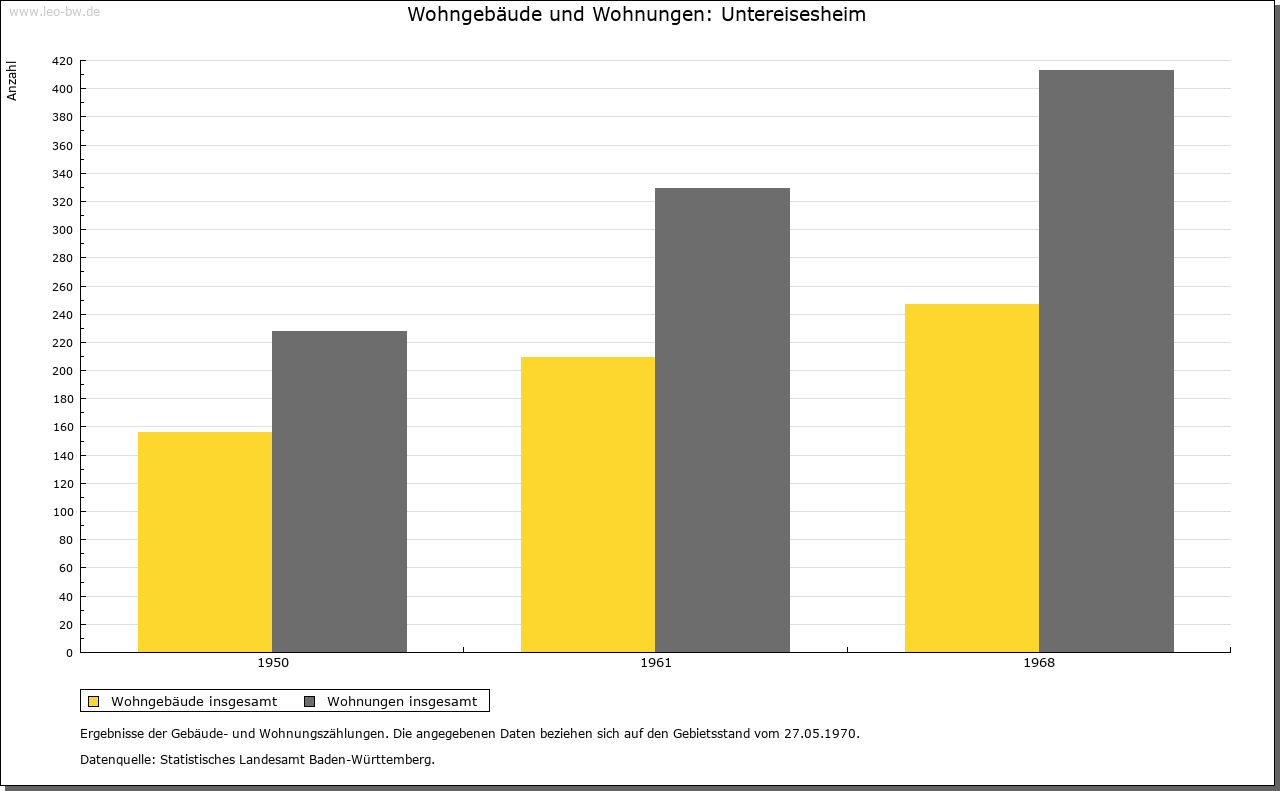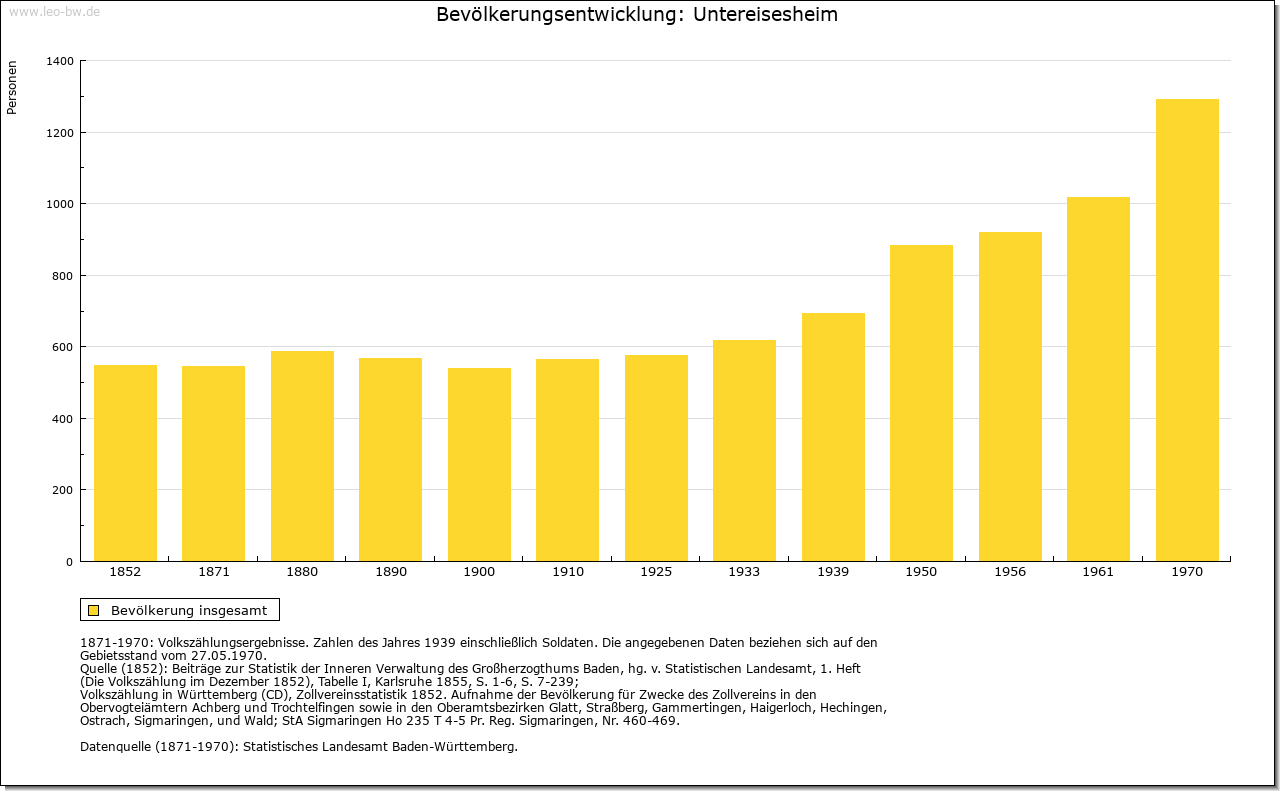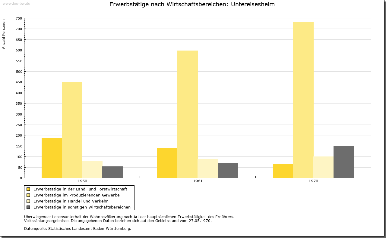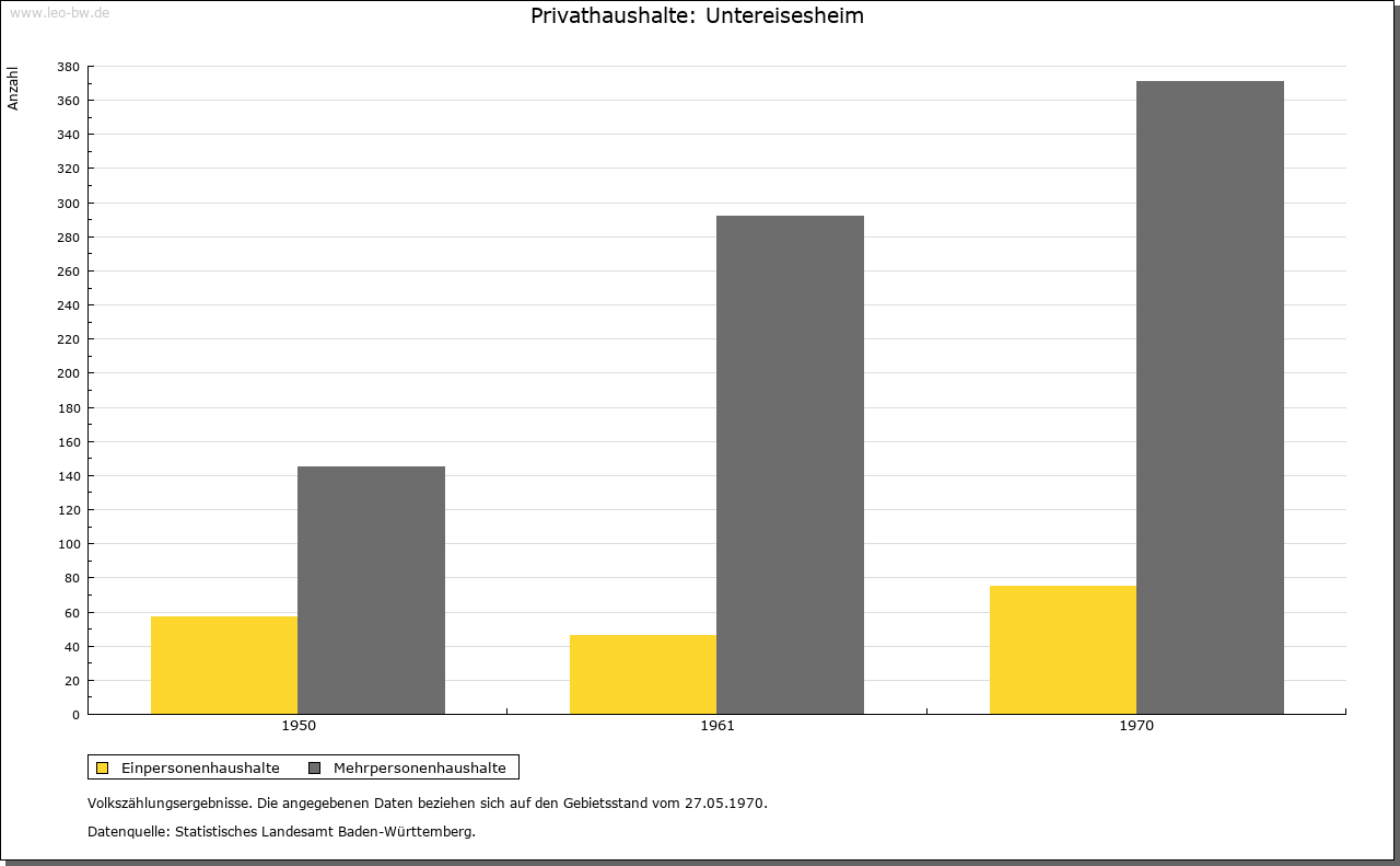 | Wirtschaft und Bevölkerung: | Aus einem Lagerbuch der von Lomersheim aus dem Ende des 15. Jahrhunderts sind für das Dorf knapp hundert Einwohner zu erschließen, zu Beginn des 17. Jahrhunderts etwa zweihundert (47 Untertanen). Im Dreißigjährigen Krieg verödete der Ort gänzlich. Bis zum Kriegsende kehrten etwa fünfzig Menschen zurück, 1654 waren es wieder mehr als sechzig. Bereits um die Wende zum 18. Jahrhundert wurde die Marke von zweihundert überschritten, Mitte der 1720er Jahre die von dreihundert beinahe erreicht; 1771 belief sich die Einwohnerzahl auf ungefähr 320 und 1806 auf circa 370. Ihren Lebensunterhalt fand die Bevölkerung vor allem in der Landwirtschaft, daneben in der Fischerei. 1771 wurden 168 Rinder gehalten; Pferde waren selten. Im Ackerbau dominierten Roggen, Dinkel und Hafer. 1624 gab es in Untereisesheim eine Mahlmühle, eine Ölmühle und eine Kelter; auch ein Weinberg (8 Morgen) wird genannt. |