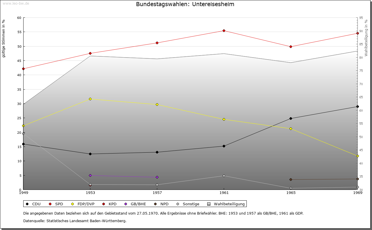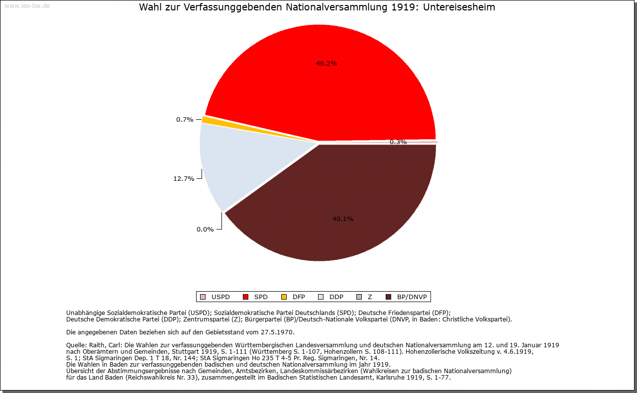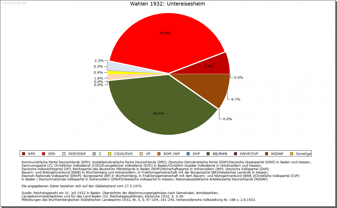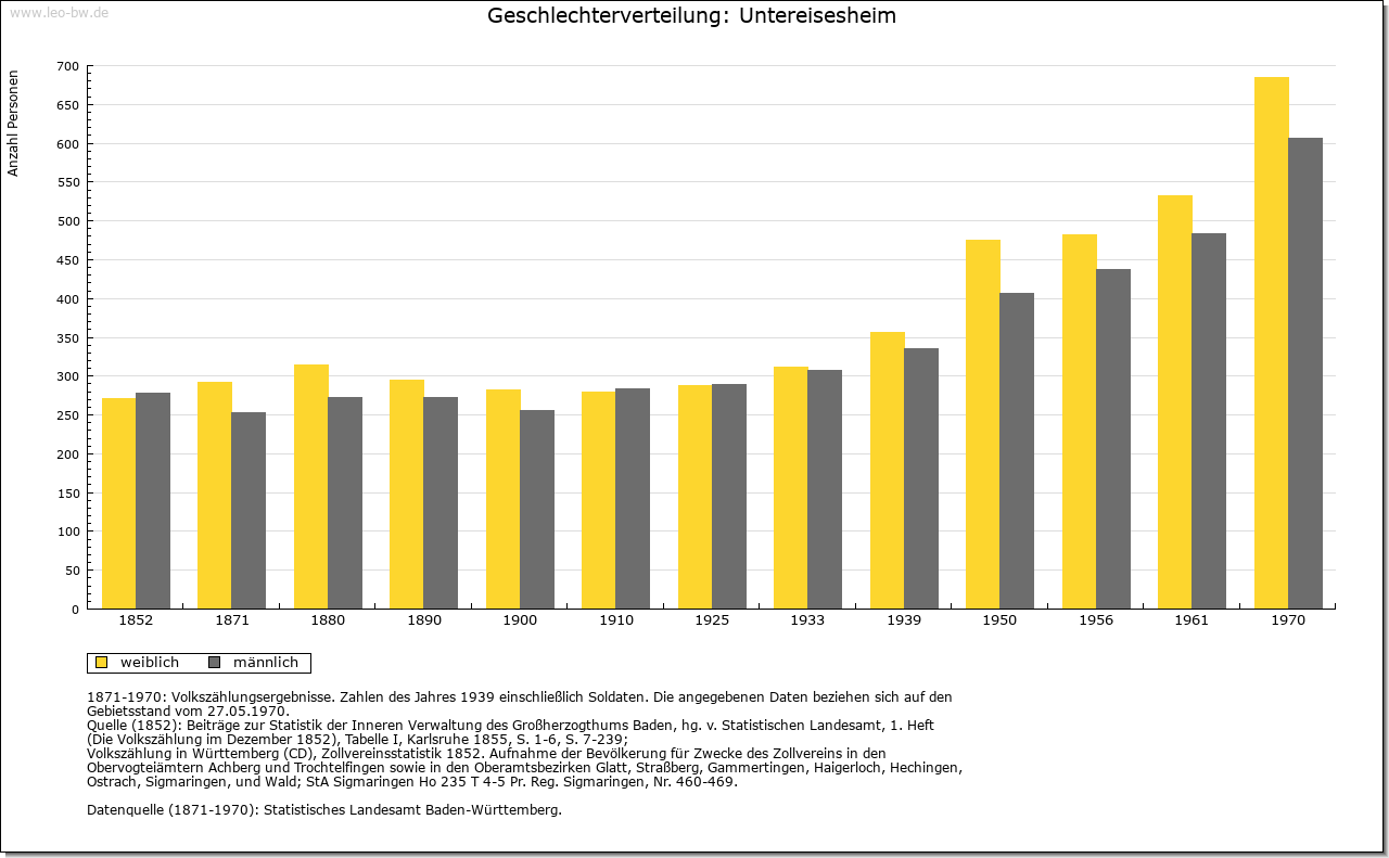 | Wirtschaft und Bevölkerung: | Aus einem Lagerbuch der von Lomersheim aus dem Ende des 15. Jahrhunderts sind für das Dorf knapp hundert Einwohner zu erschließen, zu Beginn des 17. Jahrhunderts etwa zweihundert (47 Untertanen). Im Dreißigjährigen Krieg verödete der Ort gänzlich. Bis zum Kriegsende kehrten etwa fünfzig Menschen zurück, 1654 waren es wieder mehr als sechzig. Bereits um die Wende zum 18. Jahrhundert wurde die Marke von zweihundert überschritten, Mitte der 1720er Jahre die von dreihundert beinahe erreicht; 1771 belief sich die Einwohnerzahl auf ungefähr 320 und 1806 auf circa 370. Ihren Lebensunterhalt fand die Bevölkerung vor allem in der Landwirtschaft, daneben in der Fischerei. 1771 wurden 168 Rinder gehalten; Pferde waren selten. Im Ackerbau dominierten Roggen, Dinkel und Hafer. 1624 gab es in Untereisesheim eine Mahlmühle, eine Ölmühle und eine Kelter; auch ein Weinberg (8 Morgen) wird genannt. |