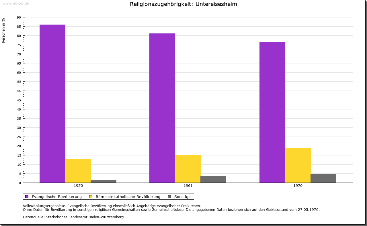 Ortslage und Siedlung (bis 1970): | Die ältesten archäologischen Zeugnisse von Untereisesheimer Gemarkung stammen von Bandkeramikern und aus der späten Bronzezeit. Bereits im 19. Jahrhundert wurden im Gewann Steinlehle Reste römischer Gebäude entdeckt. Die Anfänge der bestehenden Siedlung reichen – durch Reihengräberfunde dokumentiert – zurück in die älteste nachantike Siedlungsschicht. Der dazu passende, zum Jahr 767 erstmals erwähnte Ortsname (»Isinheimer marca«) ist in seinem ersten Teil vermutlich von einem Personennamen abgeleitet; die Unterscheidung zwischen Ober- und Untereisesheim ist seit 1253 nachzuweisen (»iuxta Ysensheim inferiori«). Daneben kommen auch die Namensformen »Nidern Isishein« (1319) und »Clein Ysesshein« (1424, ähnlich 1447) vor. Die verkehrsgünstige Lage am Neckar erwies sich schon früh als vorteilhaft, hatte im Dreißigjährigen Krieg aber auch erhebliche Zerstörungen zur Folge; die Schlacht bei Wimpfen zog 1622 nicht zuletzt Untereisesheim in Mitleidenschaft. Im späteren 17. Jahrhundert war das – zusammen mit Obereisesheim – dem württembergischen Territorium als Exklave vorgelagerte Dorf von dem herzoglichen Landesbauinspektor d’Avila für den Ausbau zu einem Verkehrsknoten vorgesehen; entsprechende Pläne sahen einen Hafen mit Landebrücken und einen regelmäßigen Marktschiffsverkehr bis nach Mainz und Frankfurt vor. Zum Schutz dieses Handelshafens und zur Herausforderung Heilbronns wurde sogar der Bau einer Festung erwogen, allerdings erledigten sich diese Pläne mit dem Tod Herzog Eberhards III. (gestorben 1674). Neue Wohngebiete haben den Ort besonders im Westen (»Schloß Weinberg« seit 1967), Südwesten (»Hoffeld —Krappenbäumle« seit 1969) und Norden (»Schafhaus«, auch Hochhäuser, seit 1971) baulich erweitert. |