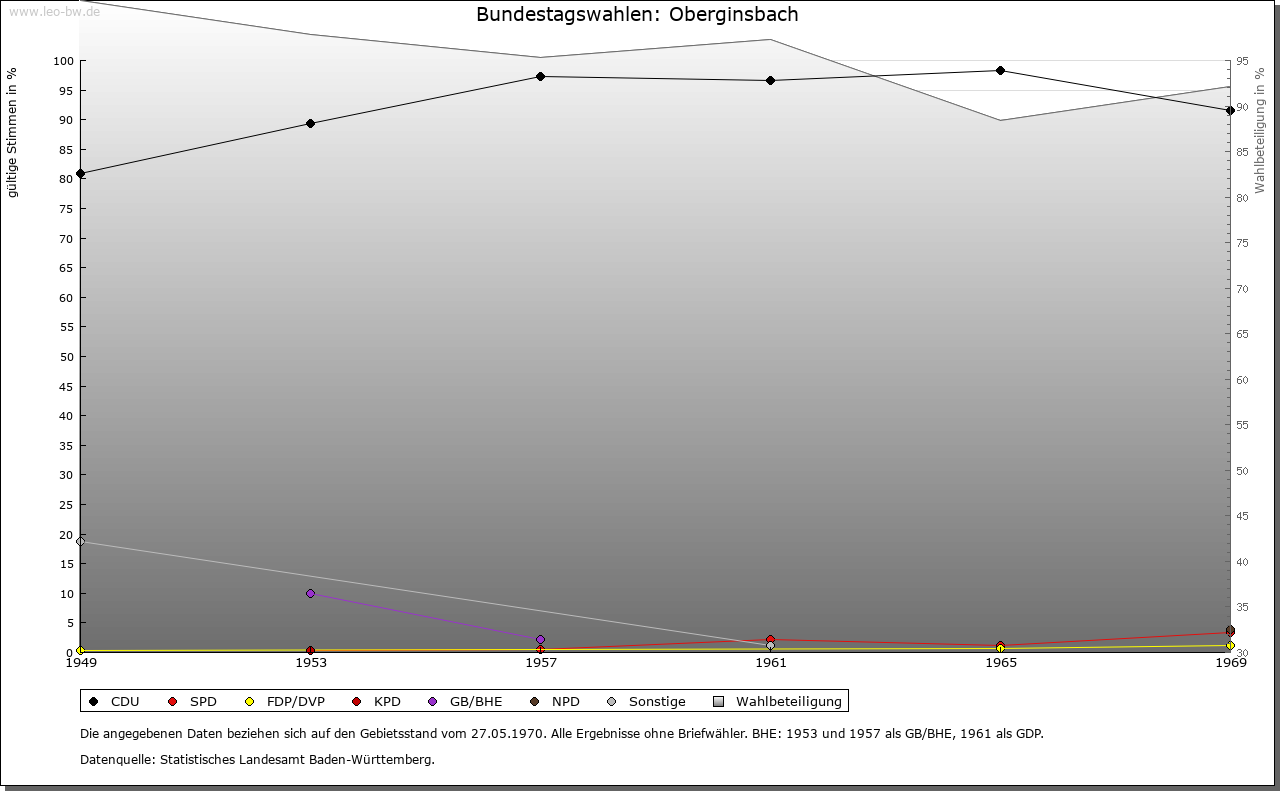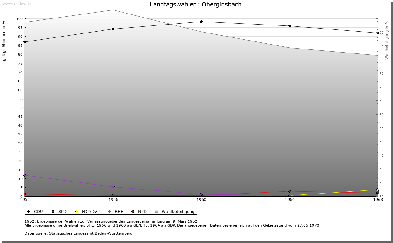 | Geschichte: | Ebenso wie in Krautheim schenkten die Grafen von Komburg-Rothenburg und die Edelfrau von (Kocher-) Stein am Ende des 11. Jahrhunderts in Ginsbach Güter an das Kloster Komburg. Auch in den Jahrhunderten danach war Oberginsbach herrschaftlich stets eng mit Krautheim verbunden und teilt in dieser Hinsicht dessen Geschichte; erst seit seinem Anfall an Württemberg trennten sich 1806 die Wege. Als Grundbesitzer und Rentenbezieher treten in Spätmittelalter und Frühneuzeit zumeist Angehörige des Ritteradels in Erscheinung, darunter nicht zuletzt Familien, die aus der Ministerialität der Edelherren von Krautheim und ihrer Erben hervorgegangen waren, so namentlich die von Aschhausen (1315/1564), von Dörzbach (1328), Lesch (1364), von Klepsau (1411), von Bachenstein (1418/65), von Adelsheim (vor 1534), von Berlichingen (1534), von Stetten (1648) und von Muggenthal (1648). Das Kloster Komburg verkaufte einen Teil seiner althergebrachten Gerechtsame bereits 1319 an die von Aschhausen, den Rest 1483 an die Herrschaft Hohenlohe. Die Zisterzienserinnen von Gnadental waren hier aufgrund von Krautheimer Schenkungen (1252) noch im 15. Jahrhundert begütert, das Kloster Schöntal seit 1311. Auch die Frauenklause von Neunkirchen bei Bad Mergentheim hatte diverse Rechte, die 1420 an die Frühmesse zu Hohebach und später über die Kartause Tückelhausen (16. Jahrhundert) an die von Stetten gelangten. Schultheiß und Gericht sind für das Jahr 1579 bezeugt, aber selbstverständlich hat es sie schon im späten Mittelalter gegeben. Eine eigene Beurkundungskompetenz hatten sie nicht, vielmehr bedurften ihre Rechtsgeschäfte der Besiegelung durch Schultheiß, Rentmeister und Rat der Stadt Krautheim. Rathaus und Bürgermeisteramt finden 1693 Erwähnung. Oberginsbach fiel 1806 an Württemberg, gehörte bis 1810 zum Oberamt Schöntal, bis 1811 zum Oberamt Ingelfingen, dann zum Oberamt, seit 1938 Landkreis Künzelsau. |