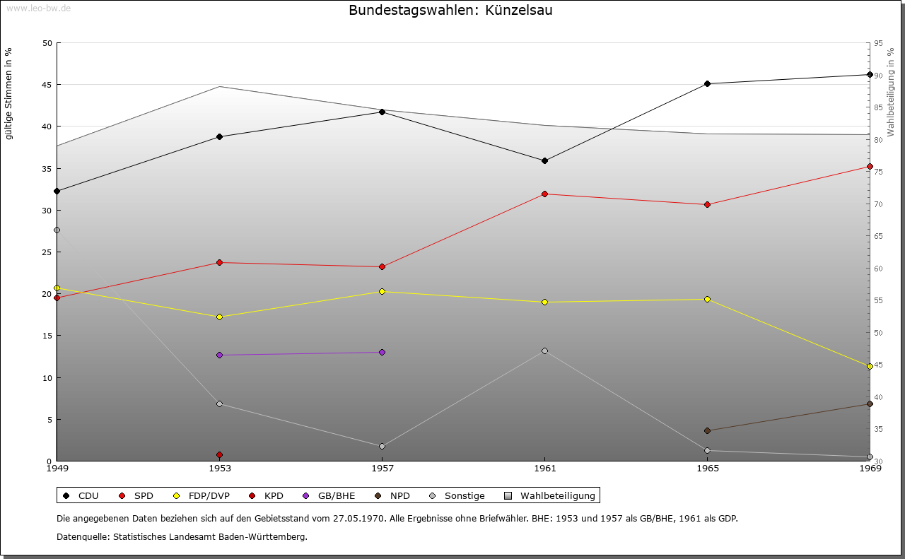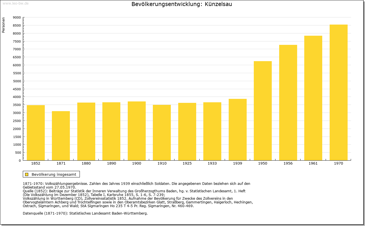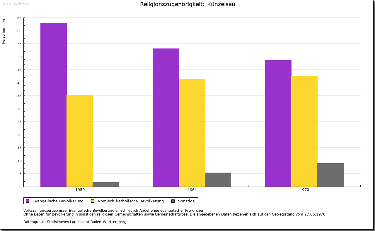 Ortslage und Siedlung (bis 1970): | Künzelsau ist eine Siedlung der hochmittelalterlichen Ausbauzeit. 1098 erstmals urkundlich erwähnt (»Cuonzelshowe«), bezieht sich sein Name mit dem Bestimmungswort auf eine Koseform des Personennamens Konrad (Kunz); das Grundwort beschreibt die Ortslage am Wasser. Diverse archäologische Funde geben zu erkennen, dass auf der Gemarkung bereits in prähistorischer Zeit gesiedelt wurde. Westlich der Stadt, im Wald Rehbocksrain, wo Mitte des 19. Jahrhunderts zwei Grabhügel entdeckt wurden, fand man 1914 einen bronzezeitlichen Dolch. Aus der Baugrube für die Stadthalle an der Schulstraße kam ein hallstattzeitlicher Bronzering zutage und bei Grabungsarbeiten in der Stadtkirche zwei latènezeitliche Scherben. Schon um die Wende vom 14. zum 15. Jahrhundert war Künzelsau ein Marktflecken. Gleichwohl wird es noch 1499 als »villa« bezeichnet, 1500 einmalig als »oppidum« und 1700 als Stadt, nachdem der ganze, mit einem Palisadenzaun geschützte Ort seit 1670/76 auch von einem Graben umgeben war. Allerdings setzte sich die Bezeichnung Stadt erst nach der Vollendung der Ringmauer 1767/86 durch. Eine förmliche Verleihung von Stadtrechten gab es nicht. Zugang gewährten drei Tore, das Obere (1551, von Süden), das Untere (1552, von Norden) und das Hintere beziehungsweise Morsbacher Tor (1525, von Osten). Seit älteren Zeiten war der Ort, dessen Grundriss um die Wende vom 18. zum 19. Jahrhundert die Form eines gestreckten, mit der Spitze nach Osten weisenden Dreiecks hatte, in vier Viertel eingeteilt, das Kirchen-, Kelter-, Badstuben- und Dürrenviertel, letzteres benannt nach dem Haus einer Bürgerfamilie, vor dem die Versammlungen dieses Viertels einberufen wurden. Der auf der Höhe jenseits des Kochers gelegene Ortsteil Garnberg tritt wie Künzelsau um 1100 ins Licht der Geschichte (»Gagernberg«); entstanden ist er gewiss nicht vor dem hohen Mittelalter. Zur Schenkung der Frau von (Kocher-) Stein an das Kloster Komburg gehörig, saßen auf dem Hof im 14. Jahrhundert die von Nagelsberg (1301) und später die von Stetten (1421), die hier 1676/90 ein kleines Schloss mit ummauertem Vorhof errichteten. Grund- und Ortsherrschaft fielen in eins. Über die von Hirschligau (1709) und ihre Erben aus den Familien von Pölnitz und Forstner von Dambenoy gelangte der Besitz, aus dem inzwischen ein Dorf geworden war, 1803/17 käuflich an die Fürsten zu Hohenlohe-Ingelfingen. Die Zahl der Häuser belief sich am Ende des 18. Jahrhunderts auf vierzig, die der Einwohner auf rund zweihundert. Auch Nagelsberg gehört in den Kontext der Stein’schen Schenkung an Komburg (um 1100 »Nagelsberch«). Im 13. Jahrhundert war der Ort namengebender Sitz von Ministerialen der Edelherren von Boxberg und Krautheim beziehungsweise von Dürn. Diese Niederadligen von Nagelsberg, deren Wappen in Gold drei senkrecht stehende blaue Nägel (2 : 1) zeigt, waren mit Gütern in Jagsthausen, Tiefental und Untergriesheim Vasallen der Bischöfe von Würzburg; noch vor ihrem Erlöschen um die Mitte des 14. Jahrhunderts scheinen sie ihren Stammsitz in Nagelsberg aufgegeben zu haben. Ein neues Schloss (»novum Nagelsperg«) trugen um 1319/20 die Edelherren von Dürn von Würzburg zu Lehen; dieser Teil gelangte hernach über die Rosenberg (1329) an das Erzstift Mainz. Daneben existierten lehnsherrliche Rechte des Klosters Komburg, als dessen Vasallen unter entsprechender Zubenennung seit 1325/33 die aus Mergentheim stammenden Lesch in Erscheinung treten. 1327 verpfändeten diese ihren Teil, den langen Turm und die Hofstatt beim Tor – also wohl den älteren Teil der Burg –, an die Herren von Hohenlohe, die 1361 mit Mainz einen Burgfrieden schlossen und später ihre Nagelsberger Rechte tauschweise an das Erzstift abtraten (1492). Fortan war Nagelsberg Sitz eines kurmainzischen Amts, das 1802/03 an Hohenlohe-Ingelfingen und 1806 an Württemberg fiel. Als Grundbesitzer treten neben den jeweiligen Herren der Burg die Klöster Gnadental (1298) und Schöntal (1489) sowie die Herren von Berlichingen (1415/1514) und von Stetten (1462/1524) in Erscheinung. Den Zehnt bezog Kurmainz in der frühen Neuzeit allein. Nach der Trennung von der Pfarrei Künzelsau im Zuge der Gegenreformation wurde Nagelsberg zunächst dem Sprengel von Amrichshausen (um 1605) zugeschlagen, erhielt aber schon 1626 eine eigene Pfarrei, bei der 1705 auch eine Schule existierte; die Kirche Sankt Jakob entstand um 1607 und wurde 1681 erweitert. Um 1790 umfasste der Ort 61 Häuser mit 93 Haushaltungen (darunter 17 Schutzjuden) und hatte mithin etwa 400 Einwohner. Das ganz im Osten der Künzelsauer Stadtgemarkung gelegene Sonnhofen (1323 »Svonhouen«) war Mitte des 14. Jahrhunderts im Besitz der Herren von Hohenlohe (Amt Langenburg), gehörte aber später zur Stetten’schen Herrschaft Buchenbach. Zuständige Pfarrei war Unterregenbach. Nach Künzelsau wurde der Weiler erst 1977 umgemeindet. Schon seit langem wüstgefallen sind der Wohnplatz Baldehofen (1518), an den noch heute der Flurname Baldenwasen nordwestlich von Gaisbach erinnert, sowie die Weiler Kronhofen (1311/1548) westlich und Webern (1341/1548) südwestlich von Künzelsau (Waldparzelle Weberschlag). Auf dem Wartberg südöstlich über der Stadt erbauten die Herren von Stetten im Zuge der Tierberger Fehde mit den Grafen von Hohenlohe 1488 einen Wartturm, dessen oberer Teil im 19. Jahrhundert einstürzte. Bei der Zarge, einem Burgstall am unteren Ende des Hasenbergs gegenüber von Nagelsberg, handelt es sich um eine wohl im 13. Jahrhundert entstandene Talsperre, die Mitte des 14. Jahrhunderts im Besitz des Erzstifts Mainz war. Ein früher vermuteter Zusammenhang mit der edelfreien Familie von (Kocher-) Stein besteht nicht. Neuere Ortsteile schließen an den alten Stadtkern von Künzelsau an und steigen den gegenüberliegenden Hang unterhalb Garnberg empor. Zu den Ortserweiterungen nach dem zweiten Weltkrieg zählen unter anderem die Wohngebiete »Rösleinsberg« (ab 1948), 