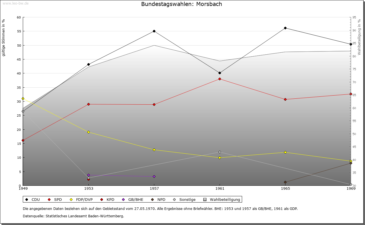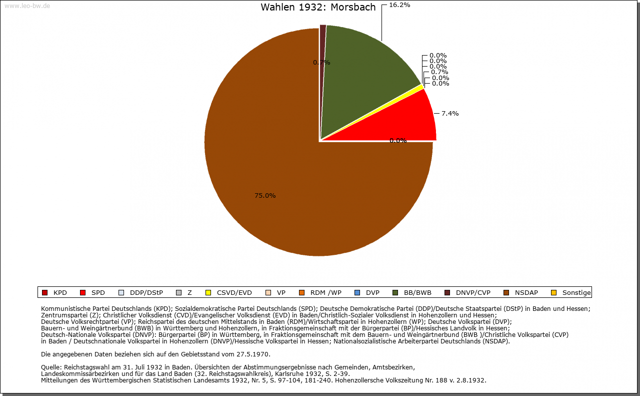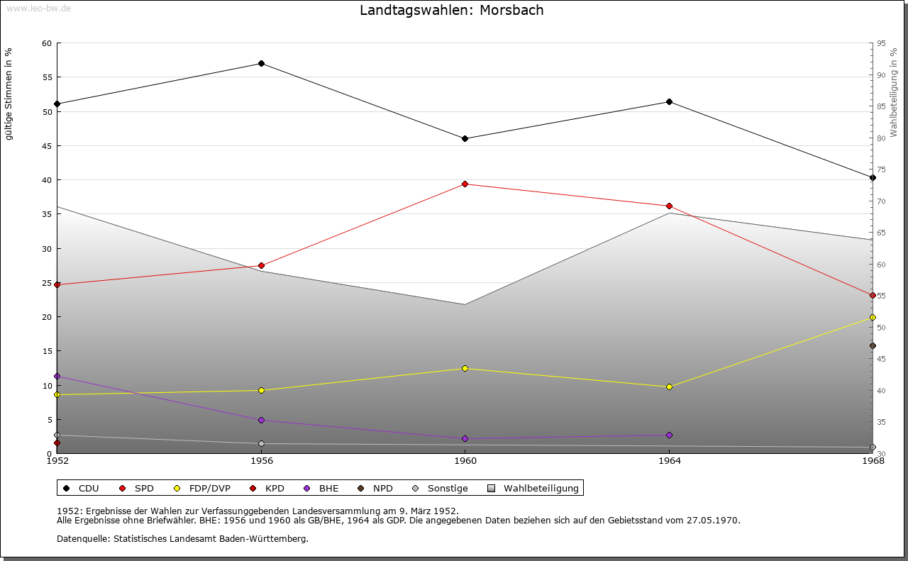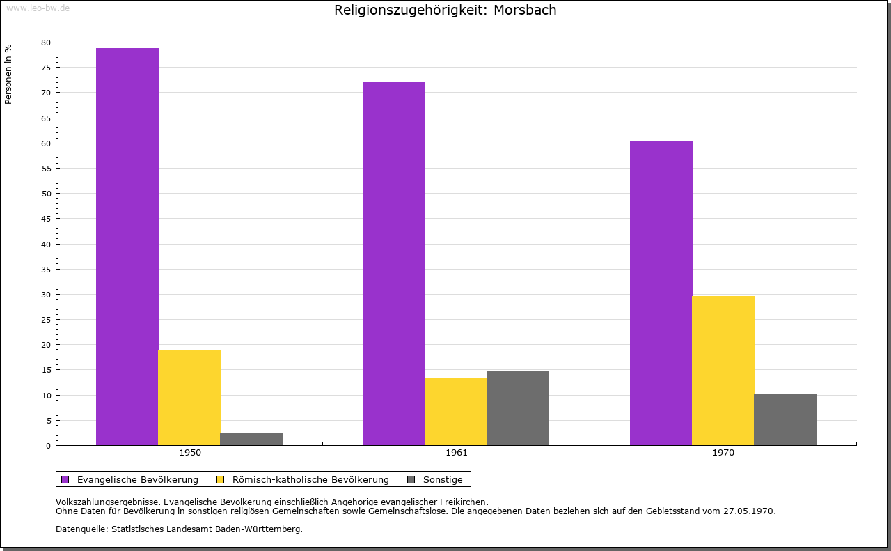 | Geschichte: | Grundlage der Herrschaftsbildung in Morsbach war offenbar wie bei den meisten anderen Orten der Nachbarschaft die um 1100 erfolgte Schenkung der Edelfrau von (Kocher-) Stein an das Kloster Komburg. In Spätmittelalter und Frühneuzeit stand alle hohe und niedere Obrigkeit den Herren von Stetten zu. 1806 wurde das seit dem 16. Jahrhundert beim Kanton Odenwald der freien Reichsritterschaft immatrikulierte Dorf von Württemberg mediatisiert. Als Grundherrschaft tritt seit der Wende vom 11. zum 12. Jahrhundert das Kloster Komburg in Erscheinung; 1483 verkaufte es seine letzten verbliebenen Rechte an Hohenlohe. Zwar finden Güter und Rechte der Herren von Stetten erst seit der Mitte des 14. Jahrhunderts Erwähnung, jedoch ist anzunehmen, dass ihre Komburger Lehen viel weiter zurückreichen und mit der Vogtei über den Klosterbesitz in Zusammenhang stehen. Darüber hinaus ist Besitz der Klöster Lichtenstern (1254/1322) und Schöntal (1489) zu nennen. Gelegentlich bezeugter Adelsbesitz – 1362/90 von Neuenstein, 1411 von Morstein, 1421 von Rinderbach, 1422 von Kirchberg, 1491 von Adelsheim, 1559 Sützel von Mergentheim, 1563 Rinck von Baldenstein – beruhte durchweg auf Mitgiften Stetten’scher Töchter und war nie von langer Dauer. Am Zehnt, der vom Hochstift Würzburg zu Lehen rührte, waren im Lauf des späten Mittelalters verschiedene ritteradlige Familien beteiligt; Ende des 17. Jahrhunderts bezogen ihn zu einem Drittel Hohenlohe-Neuenstein (in der Nachfolge des Klosters Komburg) und zu zwei Dritteln die Herren von Stetten. Gebauerschaft und Gemeinde zu Morsbach kauften 1390 von den Adligen von Neuenstein einen Acker und eine Wiese und 1421 von denen von Rinderbach ein Drittel des großen und kleinen Zehnten zu Künsbach, der noch 1682 in Gemeindebesitz war. Die Allmendgüter auf Morsbacher Gemarkung umfassten zu Beginn des 19. Jahrhunderts rund 64 Morgen. In den Jahren 1759 bis 1781 lag die Gemeinde mit ihrer Herrschaft in Streit und wurde mit Hilfe einer württembergischen Einquartierung unterworfen. Morsbach fiel 1806 an Württemberg. Es gehörte bis 1808 zum Oberamt Nitzenhausen, bis 1811 zum Oberamt Ingelfingen, danach zum Oberamt, seit 1938 Landkreis Künzelsau. |