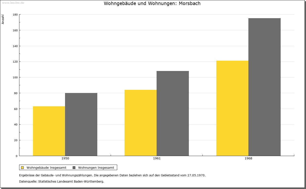 | Ortslage und Siedlung (bis 1970): | Aus vor- und frühgeschichtlicher Zeit stammen Grabhügel und die Reste einer Erdbefestigung (Heidenschlössle) auf der Höhe links des Kochers. Die Anfänge der Siedlung rechts des Flusses hat man in der Ausbauzeit des frühen Mittelalters zu suchen; ihre erste Erwähnung geschieht um 1100 (»Moesbach«; 1248 »Morsbach«). Ob der Name unter Bezug auf einen Personennamen oder eher als Stellenbezeichnung zu deuten ist, bleibt unklar, jedoch hat die letztere Möglichkeit mehr Plausibilität. Wiederholt wurde Morsbach von Hochwassern des Kochers in Mitleidenschaft gezogen, so namentlich in den Sommern der Jahre 1748 und 1789. Um die Wende zum 19. Jahrhundert umfasste das Dorf fünfzig Wohn- und 37 Ökonomiegebäude. |