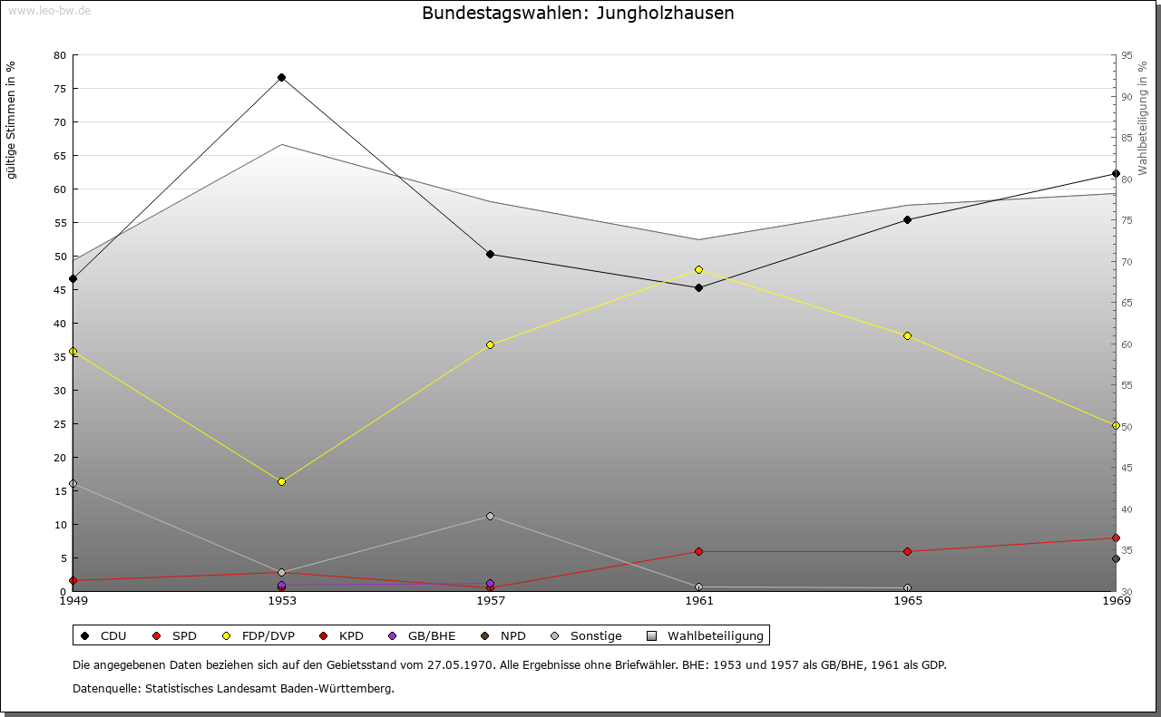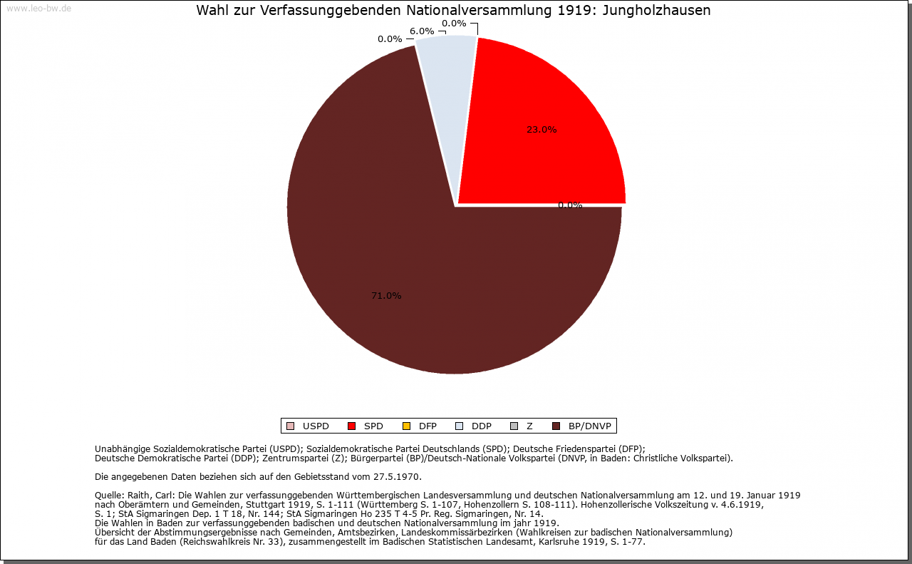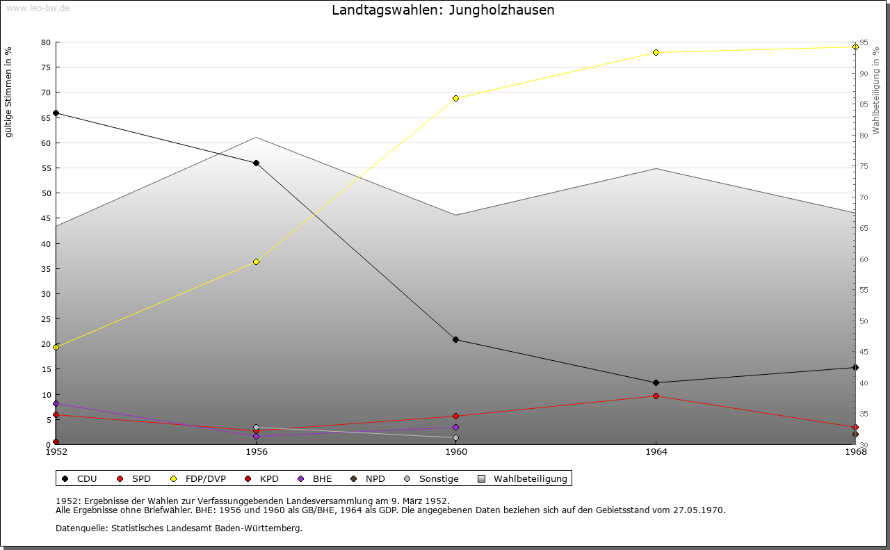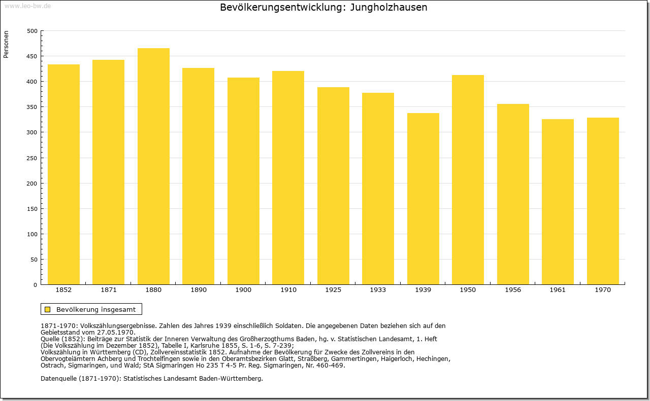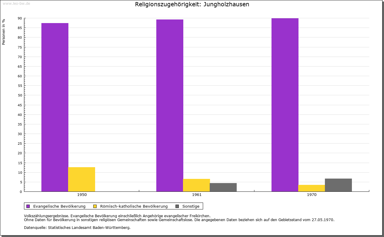 | Geschichte: | 1266 wird Jungholzhausen erstmals als »Jungoldshusen« genannt, der Ort befand sich damals im Besitz des Konrad von Krautheim. Vom 13. bis zum 16. Jahrhundert waren mehrere Besitzer und Lehensherren im Ort begütert: Während die Herren von Bachenstein über Eigenbesitz verfügten, erhielten die von Stetten ihren Anteil Jungholzhausens zunächst als würzburgisches Lehen. Auch Haller Bürger hatten sich zeitweilig ins Dorf eingekauft, des Weiteren besaß das Kloster Comburg einige Güter. Nachdem die Grafen von Hohenlohe 1488 den Anteil der Bachensteiner erworben hatten, konnten sie im Lauf des 16. Jahrhunderts auch Gutsbesitz und Rechte der Stetten an sich bringen. Dabei ergaben sich 1517 Streitigkeiten zwischen Hohenlohe und Stetten über die Haltung des Gerichts, das Bannweinausschänken und den Untergang. Eine Vermittlung erfolgte schließlich durch den Abt von Schöntal. 1520 verkaufte Gabriel von Stetten Güter und Gülten an Albrecht von Hohenlohe, unter anderem die Vogtei auf den comburgischen Gütern und seine Teile des Eichholzes, 1540 folgten weitere Verkäufe an Hohenlohe durch Margarethe von Stetten. Das Patronatsrecht der Kirche lag allerdings bei den Schenken von Limpurg, bis diese es 1536 an Hall abtraten. Die Verwendung des Kirchenzehnten und die hohe Obrigkeit bildeten 1542 einen der für das 16. Jahrhundert so häufigen Konfliktpunkte zwischen Hall und den Grafen von Hohenlohe, die sich mittlerweile als dominierende Ortsherrschaft in Jungholzhausen durchgesetzt hatten. Zwei von Hall eingesetzte evangelische Pfarrer wurden durch die zu diesem Zeitpunkt noch altgläubigen Hohenloher Grafen vertrieben, zudem mussten die Dorfbewohner einen Teil des Zehnten an die Döttinger Pfarrei abliefern. Die Streitpunkte wurden in den »Untermünkheimer Tag und Abschied« von 1543 aufgenommen, mit dem Ergebnis, dass der Jungholzhausener Pfarrer wieder den halben Kirchenzehnt und das, was ihm weiter zur Besoldung zustand, zugesprochen bekam. Nachdem Hall den Hohenlohe 1561 bereits die Heiligenrechnung abgetreten hatte, tauschte die Reichsstadt 1564 Patronatsrecht, Pfarrhaus, den halben großen sowie den kleinen Zehnten gegen die hohenlohische Pfarrei Ilshofen ein. Dies bedeutete in der Folgezeit das Ende einer selbstständigen Pfarrei in Jungholzhausen, welches zum hohenlohischen Amt Döttingen der Hohenlohe-Kirchberg zugeteilt wurde. 1701 kam der Ort zusammen mit anderen der Ämter Schrozberg und Döttingen an die Linie Hohenlohe-Langenburg. Als Teil dieser Herrschaft gelangte Jungholzhausen 1806 an das Königreich Württemberg. 1807/08 gehörte Jungholzhausen zum Oberamt Nitzenhausen, 1809/10 Oberamt Ingelfingen, 1812 Oberamt Künzelsau, 1938 Landkreis Schwäbisch Hall. Jungholzhausen gehörte zuerst zur Gemeinde Steinkirchen, dann zur Gemeinde Döttingen, seit 1824 selbständig. |
