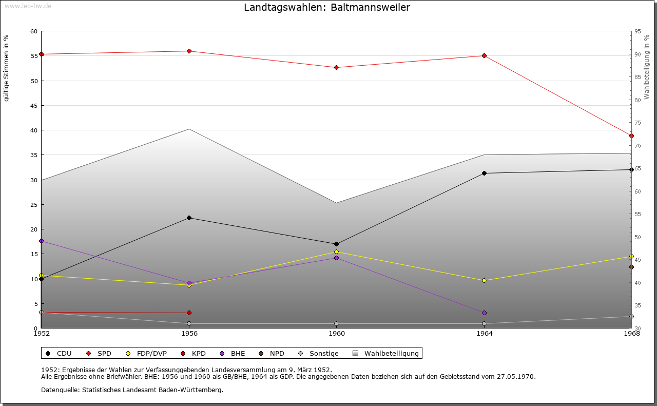 | Geschichte: | Mit Beginn des 16. Jahrhunderts hatte sich der Herzog von Württemberg als Ortsherr in Baltmannsweiler durchgesetzt. Aussagen über frühere Herrschaftsträger sind schwieriger: Bei der Ersterwähnung 1299 verkaufte die Familie der »Phawen«, ein Niederadelsgeschlecht aus Pfauhausen (heute Wernau), Waldbesitz in »Baltramswile« an das Esslinger Spital. 1332 veräußerte Hedwig, geborene von Wildenau, den Zehnt in Baltmannsweiler, der ihre Mitgift gewesen war, an den Esslinger Bürger Eberhard von Hochdorf. Beide genannten Familien gehörten räumlich und sozial in den Umkreis der Herzöge von Teck. Vier Jahre später, als Herzog Ludwig von Teck den Esslinger Bürger Konrad Holderlin mit dem großen und kleinen Laienzehnten belehnte, traten sie auch unmittelbar mit Baltmannsweiler in Verbindung. Dass die Herzöge von Teck diesem Besitz einige Bedeutung zumaßen, zeigte sich 1303, als die Familie ihn explizit vom umfangreichen Güterverkauf an Habsburg ausnahm. So darf also mit einiger Gewissheit Baltmannsweiler im 14. Jahrhundert als Teil der teckischen Herrschaft gesehen werden. Mit dem raschen Zerfall des teckischen Herzogtums im 14. Jahrhundert setzte sich Württemberg als Ortsherr durch, wie sich bei der Einrichtung einer eigenen Pfarrei 1440 zeigte. Im 14. und 15. Jahrhundert war der Zehnt auf verschiedene Träger aufgesplittert. Neben der bereits erwähnten Hedwig von Wildenau zählten hierzu die Schweler von Wielandstein, auch sie aus dem Umfeld der Herzöge von Teck. In komplizierten Rechtsgeschäften gaben sie Anteile an das Kloster Adelberg und vor allem an Esslinger Bürger ab. Bis ins 16. Jahrhundert bereinigte sich diese Zersplitterung, 1573 gehörten alle Erträge aus großen und kleinen Zehnten der Pfarrei im Ort, bis auf kleinere Anteile, die dem Stift Göppingen zustanden. Württemberg hatte um 1400 im Ort nur wenige Grundrechte, darunter Waldbesitz, der zwischen Baltmannsweiler und Hohengehren lag. Um Besitz- und Steuerfragen gab es Streit mit Esslinger Bürgern und dem Esslinger Spital, den größeren Grundeigentümern im Ort. 1399 bedurfte es zwischen Württemberg und dem Esslinger Spital einer Schlichtung. Doch übernahm das expansive Württemberg in der Folgezeit den Grundbesitz von Spital und Bürgern der Reichsstadt. Einen bedeutsamen Schritt bei der weiteren Arrondierung der Grundherrschaft leistete 1436 Graf Ludwig von Württemberg mit dem Kauf von 450 Morgen Land vom Kloster Denkendorf. Mit Jörg Merchlin wird 1573 erstmals ein Schultheiß namentlich genannt, die Gemeinde tritt schon 1442 in Erscheinung. Das überlieferte Ortsrecht aus dem 15./16. Jahrhundert teilte Baltmannsweiler mit Thomashardt. Baltmannsweiler gehörte bis 1938 zum Oberamt Schorndorf, seither zum Landkreis Esslingen. |