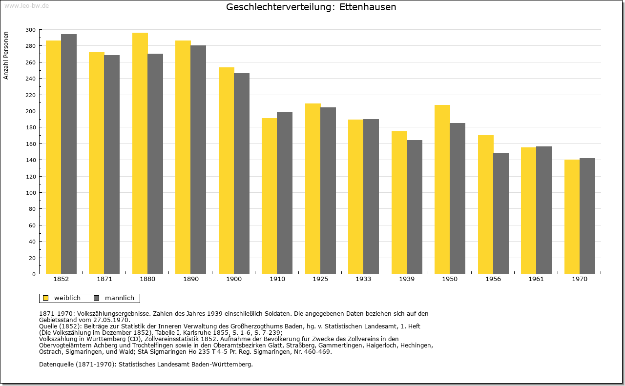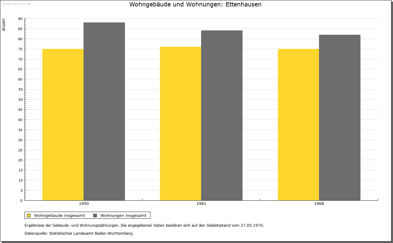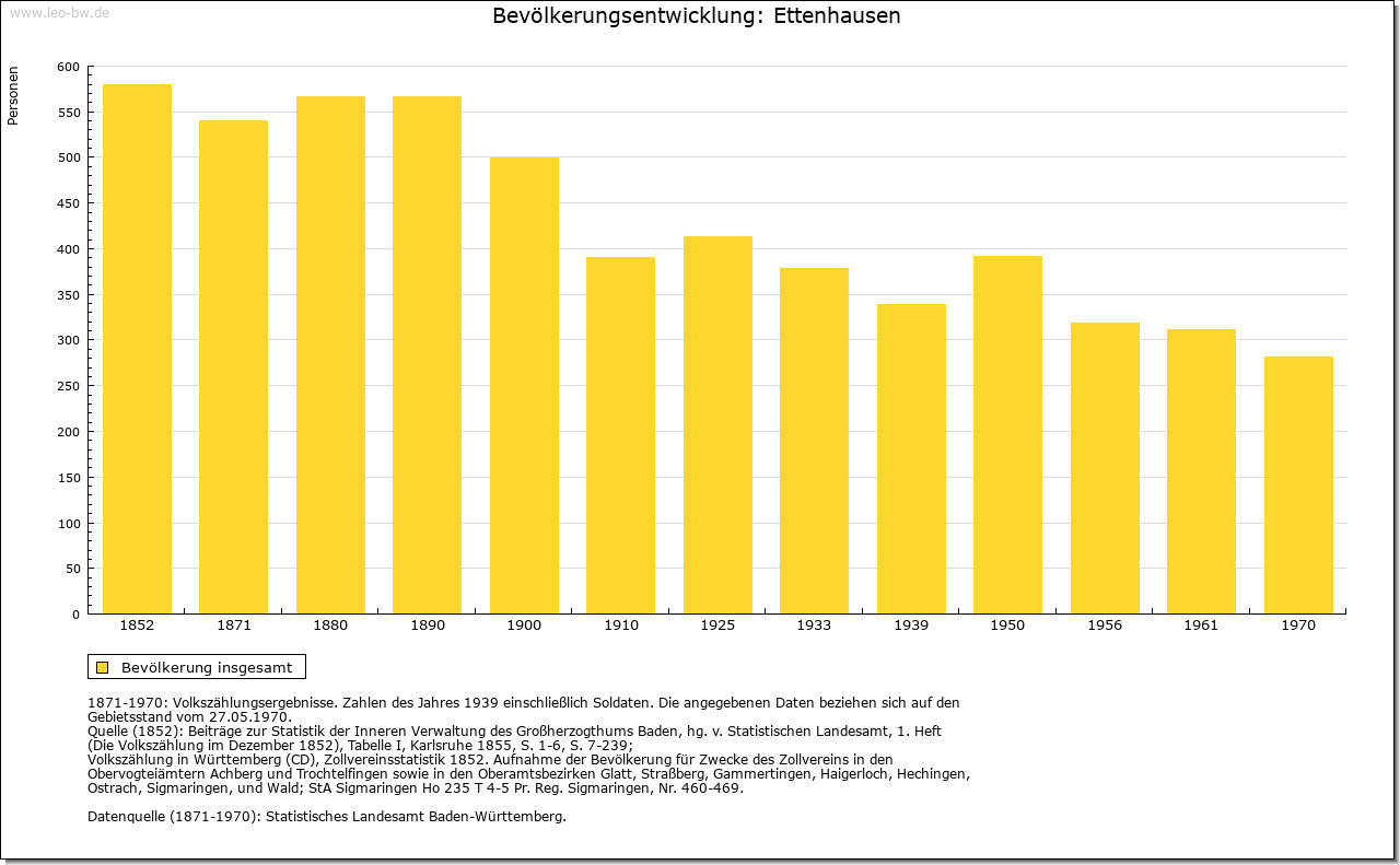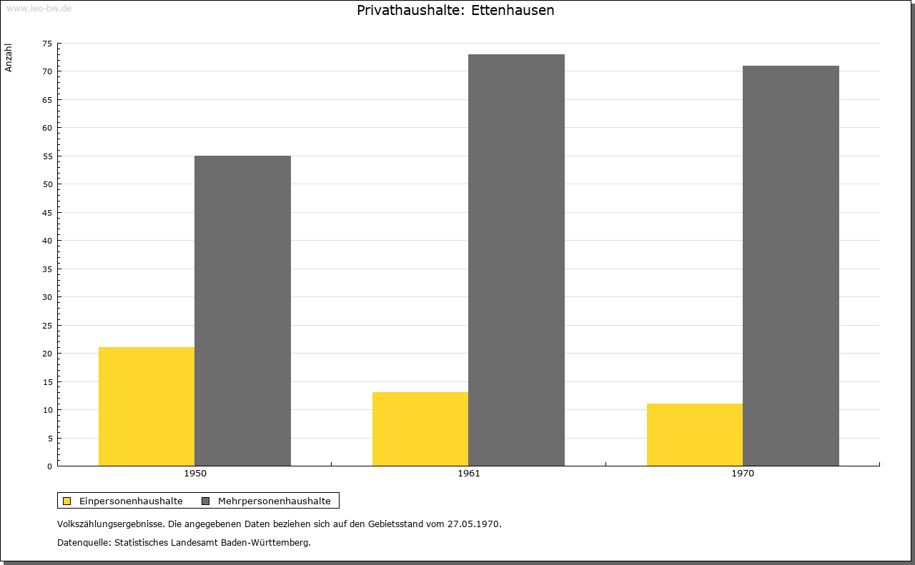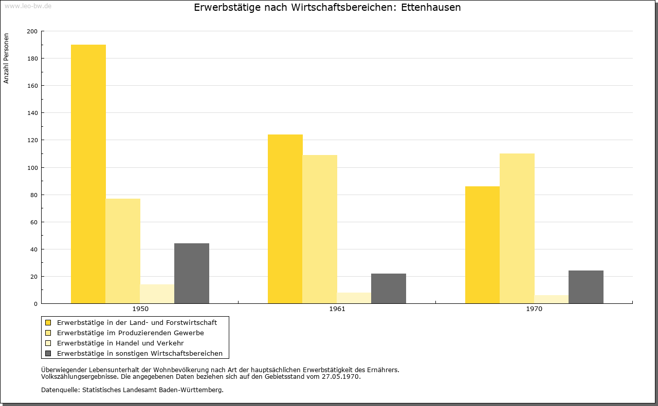 | Wirtschaft und Bevölkerung: | Die Bevölkerung ist vorwiegend bäuerlich. Noch bis zum Beginn des 20. Jahrhunderts wurde am Südhang des Ettetals Weinbau betrieben. Eine Mühle ist schon 1334 belegt. Ende des 18. Jahrhunderts wuchs die Bevölkerung Ettenhausens leicht an, was wahrscheinlich durch den personellen Bedarf der nahe gelegenen Fürstenresidenz Bartenstein verursacht war. |