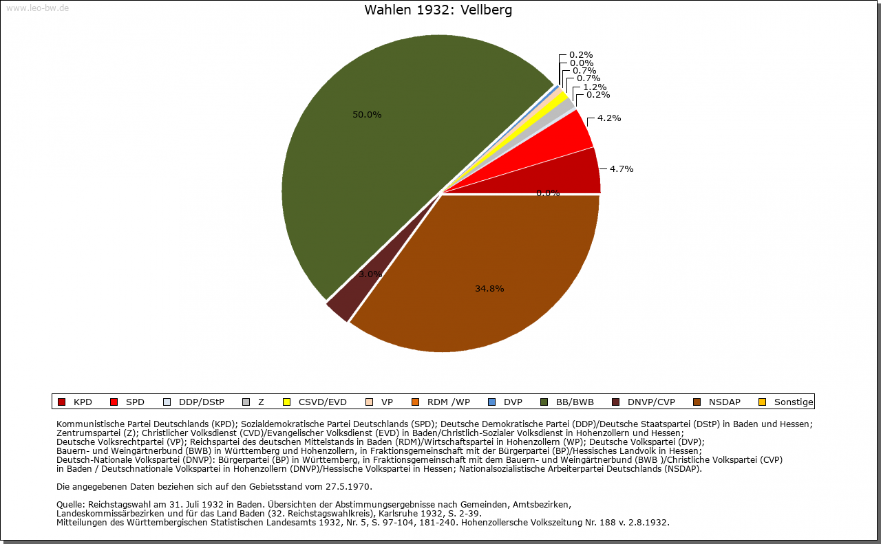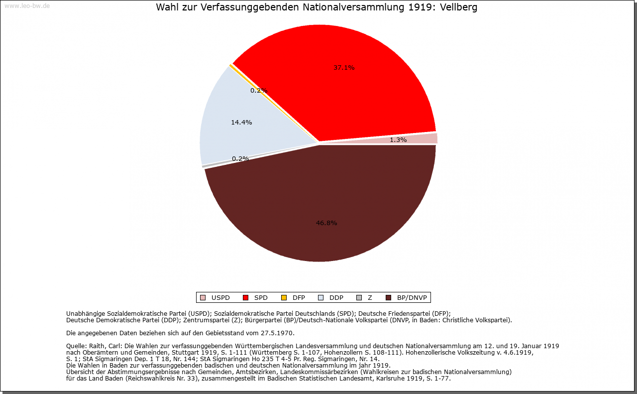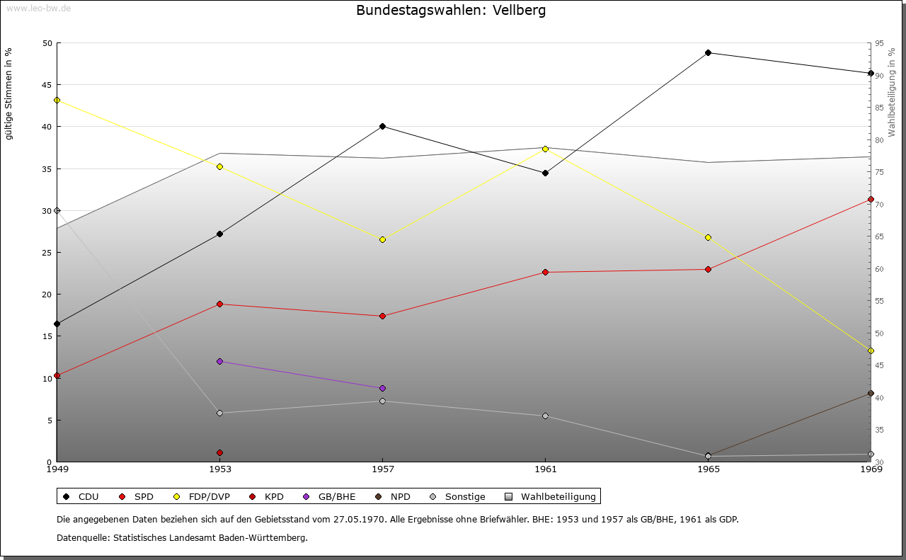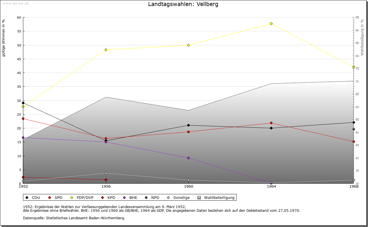 Geschichte: Mit dem edelfreien Heinrich von Vellberg (»nobilis laicus Heinricus de Uelleberc«), der 1102 bei der Übertragung des Klosters Lorch an den Papst durch Herzog Friedrich I. von Schwaben mitwirkte und nochmals 1108 bei einem Gütertausch zwischen dem Würzburger Stift Neumünster und dem Kloster Comburg als Zeuge genannt ist, wird erstmals ein Angehöriger einer sich nach dieser Burg nennenden Familie greifbar. 1145 findet sich mit Walter von Vellberg als Zeuge in einer Urkunde König Konrads III. letztmals ein Vertreter des wohl noch edelfreien Geschlechts. Mögliche familiäre Beziehungen der Edelfreien von Vellberg zu den Grafen im Maulachgau oder den Grafen von Comburg müssen offen bleiben. Bezüge zu den Grafen von Lobenhausen – 1145 ist mit Walter von Vellberg auch Walter von Lobenhausen als Zeuge genannt – sind wegen der späteren Lehensabhängigkeit der Burg Vellberg von den Grafen von Hohenlohe, den Erben des lobenhausischen Besitzes, durchaus denkbar. Schriftliche Belege für die Existenz einer staufischen Ministerialenfamilie auf der Burg fehlen. Ab der Mitte des 13. Jahrhunderts (1253: »Volcard von Velleberg«) sind in den Quellen die Ritter von Vellberg genannt, die wohl der Ministerialität der Schenken von Limpurg entstammten. Das vellbergische Wappen zeigt in Blau unter einem goldenen rechten Obereck einen silbernen Adlerflügel. Die weit verzweigte Familie findet sich in der Folge auf Adelssitzen der Region (zum Beispiel Kottspiel, Pfahlheim bei Ellwangen). In den Benediktinerabteien Ellwangen (Erenfried 1309–11) und Comburg (Erenfried I 1402–21; Erenfried II 1449–73) wurden im 14./15. Jahrhundert Mitglieder der Familie zu Äbten gewählt. 1342 ist mit Konrad von Vellberg erstmals ein Vertreter des Geschlechts als Bürger in Hall nachweisbar. Die Verschwägerung mit zahlreichen wohlhabenden Familien des reichsstädtischen Stadtadels gab finanzielle Spielräume: Haug von Vellberg kaufte 1409/68 die ehemalige Reichsburg Leofels, die ihm als württembergisches Lehen übertragen wurde. Mit dem Einsetzen der schriftlichen Überlieferung im 14. Jahrhundert war die Burg Vellberg als hohenlohisches Lehen nur noch in Anteilen im Besitz der Ritter von Vellberg. 1411 ist sogar von einer Aufsplitterung in Achtel die Rede. Neben Familien aus der Ritterschaft (zum Beispiel ab 1381 Klingenfels, ab 1414 Streckfuß, ab 1425 Adelsheim) und den Schenken von Limpurg (ab 1400) besaßen auch Mitglieder des hällischen Stadtadels (zum Beispiel ab 1367 Enslingen, ab 1394 Bachenstein, ab 1400 Lecher) Teile der Burg. In der zweiten Hälfte des 15. Jahrhunderts ist ein gezielter Zuerwerb von Grundbesitz im Umkreis von Vellberg zu beobachten, zudem gelang es dem Geschlecht, bis 1480 die gesamte Burganlage wieder in Familienbesitz zu überführen. Der 1481 vereinbarte Burgfrieden war darauf ausgelegt, den Besitz der Familie (Ganerbenschaft) dauerhaft zu sichern. Zugleich sollte durch die Anlage eines durch Mauern geschützten Markts auf vellbergischem Eigengut vor dem Burgareal der Mittelpunkt für den Aufbau einer ritterschaftlichen Herrschaft geschaffen werden. 1492 übertrugen die Ritter den Markt an Graf Rudolf von Helfenstein, der ihn den Ganerben als Mannlehen zurückgab. Die Verleihung des Marktrechts durch König Maximilian I. erfolgte 1500. 1506 erhielten die Vellberger das Recht auf Stock und Galgen in der eigenen Herrschaft, das die Grafen von Helfenstein beim König erwirkt hatten und den Rittern als Reichsafterlehen weitergaben. In der Folgezeit wurde Vellberg als »Stättlein« bezeichnet, ohne dass eine formale Verleihung des Stadtrechts vorlag. 1577 gelang es Konrad von Vellberg, den gesamten Familienbesitz in einer Hand zusammenzuführen. Der Ausbau der ritterschaftlichen Herrschaft führte ab der Mitte des 16. Jahrhunderts zu Auseinandersetzungen mit den beiden mächtigen Nachbarn, der Reichsstadt Hall und der Markgrafschaft Brandenburg-Ansbach, die zum Teil im Vergleich zum Austausch obrigkeitlicher Rechte führten (zum Beispiel Steinbacher Vertrag mit Hall 1572), zum Teil aber auch vor das Reichskammergericht getragen wurden. Dieser Territorialisierungsprozess wurde 1592 unterbrochen, als mit Konrad von Vellberg das Geschlecht im Mannesstamm ausstarb. Das ›Vellberger Erbe‹, das sich aus Lehengütern verschiedener Herren (Helfenstein, Hohenlohe, Württemberg, Stift Ellwangen, Bistum Würzburg) und adligem Eigengut zusammensetzte, zerfiel in seine Bestandteile. Hall erwarb nach kontroverser innerstädtischer Diskussion in einem juristisch komplizierten Verfahren mit den adligen Eigengütern (1595), den hohenlohischen (1598/1600, bis 1610 Recht auf Rückkauf) und den helfensteinischen (1611) Lehen den Kernbestand der Herrschaft. Bereits 1599 hatte die Reichsstadt demonstrativ die Richtstatt auf dem Galgenberg in Fronarbeit durch die Untertanen der Herrschaft instand setzen lassen. Der neu erworbene Besitz wurde im reichsstädtischen Amt Vellberg zusammengefasst. Als Vertreter der Herrschaft vor Ort ist bereits in ritterschaftlicher Zeit ein Vogt genannt. Auch nach 1595 findet sich an der Spitze des hällischen Amts ein Vogt, der im Amtshaus (heute Rathaus) residierte. Die Auseinandersetzungen mit dem Ritterkanton Odenwald über das Besteuerungsrecht zogen sich bis in die Mitte des 18. Jahrhunderts hin und wurden 1760 durch einen Vergleich vor dem Reichshofrat beigelegt, der Hall dazu verpflichtete, als Ausgleich für die verlorenen Steuereinnahmen dem Ritterkanton die immense Summe von 340000 Gulden zu bezahlen und das Rittergut Hausen abzutreten. Die mit der Markgrafschaft Brandenburg-Ansbach strittige Grenze der Hochgerichtsbezirke wurde 1678 durch den Gründelhardter Vertrag geregelt, der den Raum Vellberg dem hällischen Bereich zuwies. Mit der Mediatisierung Halls 1802/03 fiel Vellberg an Württemberg, das vor Ort ein Stabsamt einrichtete, das bereits 1808 dem Oberamt Hall eingegliedert wurde. Die Ausbildung der bürgerlichen Gemeinde hatte sich bere