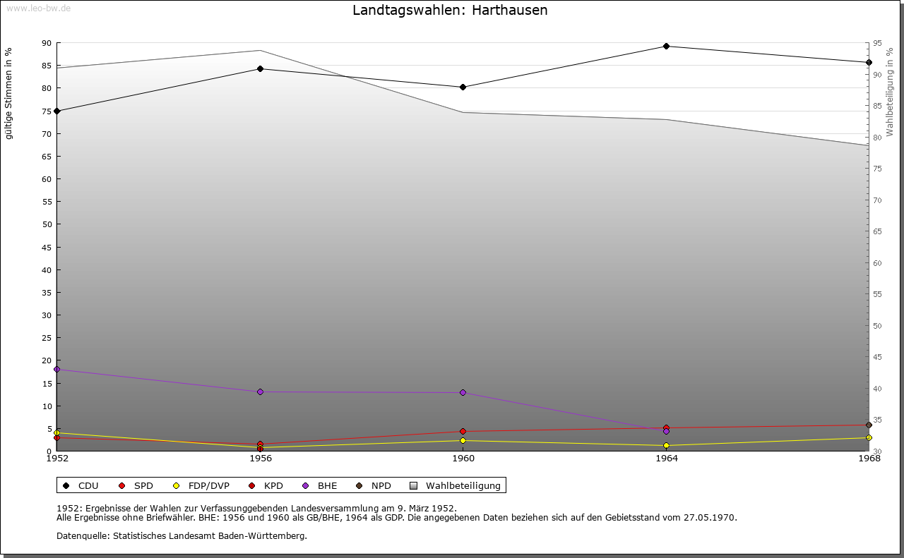Geschichte: 1185 Harthusen (zu hart = Weidewald), 1251 Husen prope Nassach (= Nassau). Im 12. Jahrhundert Besitz des würzburgischen Neumünsterstifts. Die Vogtei bereits im 13. Jahrhundert als würzburgisches Lehen in Händen der Hohenlohe-Brauneck. 1303 auch die Vogtei über die dortigen Güter des Stifts Neumünster. Die Hohenlohe verkauften bereits 1313 Gülten an das Deutschordenshaus Mergentheim, dem der ganze Ort mit der vormals brauneckischen Herrschaft Neuhaus und der Zent Markelsheim endgültig 1411 durch Kauf zufiel. Den vormaligen Besitz der Klause Neunkirchen erwarb 1534 das Mergentheimer Spital. Harthausen gehörte in das Gericht Igersheim und in das Deutschordensamt Neuhaus, kam 1809 mit diesem an Württemberg und zählte seitdem zum Oberamt, seit 1938 Landkreis Mergentheim.