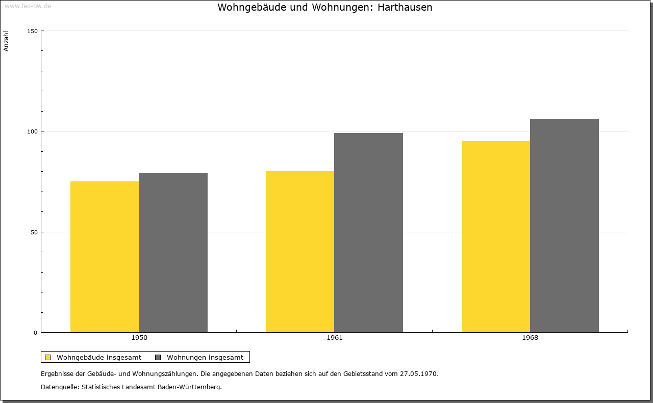 Das Straßendorf im oberen Harthauser Tal besitzt neue Einfamilienhausbebauung (1965) südlich des Ortes.