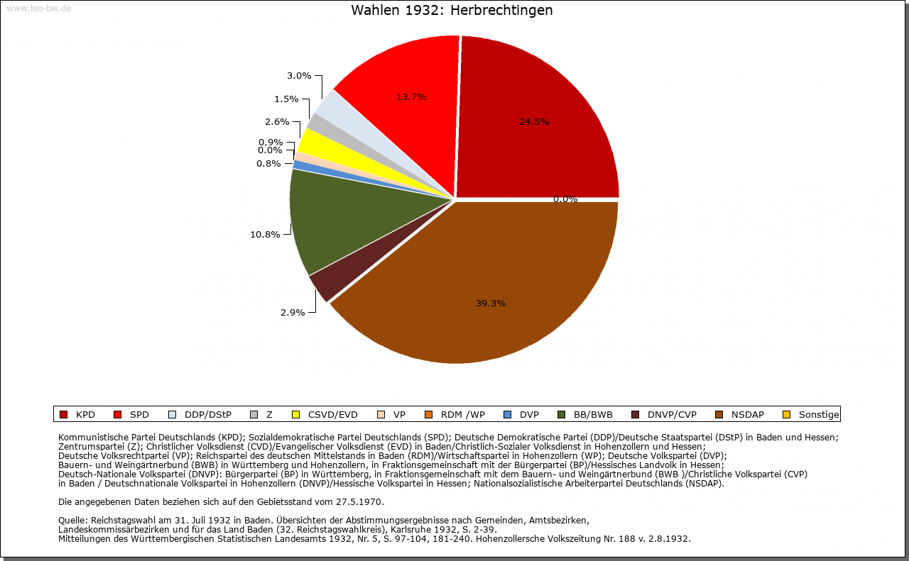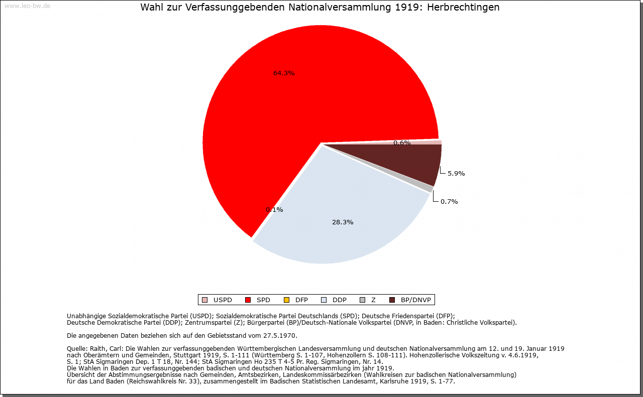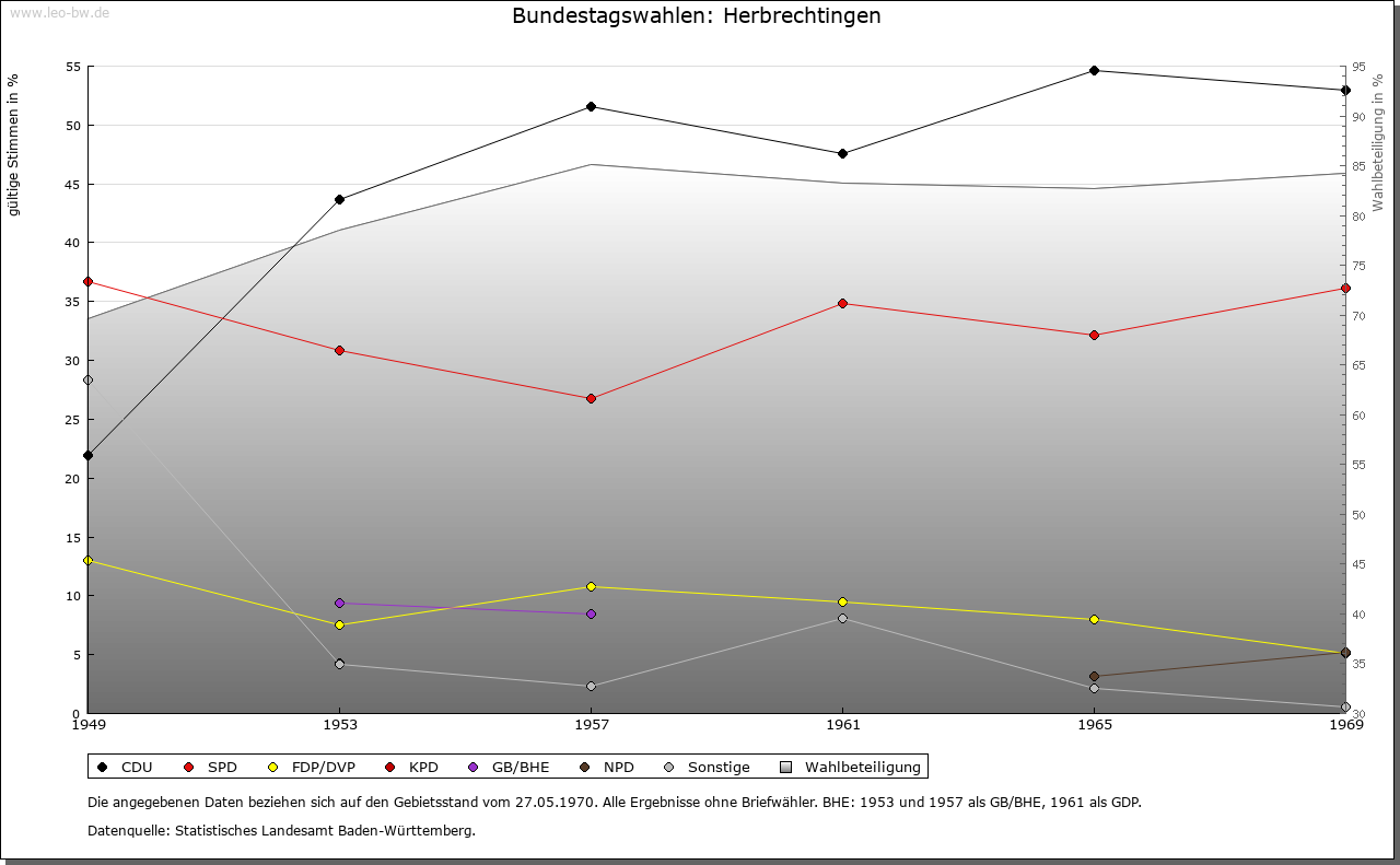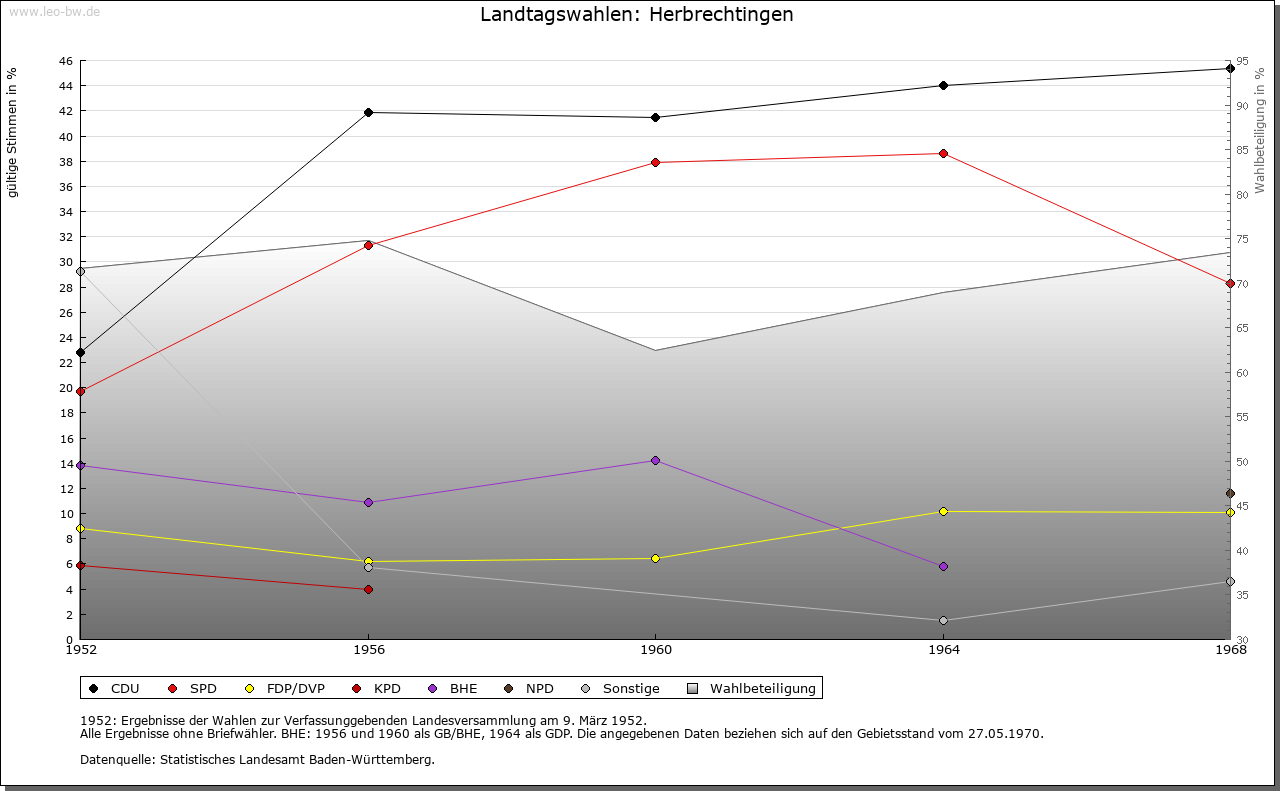 Geschichte: 774 Hagrebertingas, 777 Haribertingas (Personenname Charibert). Merowingerzeitliche Siedlung mit zwei Reihengräberfeldern. In der Frühzeit wohl Adelssitz (reich ausgestattetes Frauengrab). War sicher alemannisches Herzogsgut, das 746 von den Karolingern konfisziert wurde (774 Fiscus Hagrebertingas). 866 gehörte Herbrechtingen zum Riesgau. Vor 774 gründete Abt Fulrad von St. Denis in Herbrechtingen ein St. Veranus und Dionysius geweihtes Eigenkloster, das er seiner Abtei vermachte, der der Besitz der Veranus-Zelle noch 866 von König Ludwig bestätigt wurde. Karl der Große schenkte dem Kloster seine »curtis« Herbrechtingen. Die Zelle mit ihrem reichen Besitz wurde wohl von Herzog Burchard um 920 eingezogen. Herbrechtingen muß dann im Erbgang an Heinrich III. gekommen sein, der sich 1046 hier aufhielt und wohl damals das Kollegiatstift Herbrechtingen errichtete. Als Eigenkirche vererbte es sich auf die Staufer. Friedrich Barbarossa wandelte das herabgekommene Kollegiatstift 1171 in ein Augustiner-Chorherrenstift um und begabte es unter anderem mit dem Marktrecht in Herbrechtingen, das bis dahin Otto von Hürben als Lehen gehabt hatte und das auf Heinrich III. zurückgehen mag, einem vom Hochstift Augsburg lehenrührigen, zuvor wohl den Pfalzgrafen aus der Adalbert-Sippe gehörenden Maierhof sowie abgelösten Ministerialengütern des Heinrich von Staufen und Diepold Güsse, die zur Mitgift der Adele von Vohburg gehört haben könnten; Vögte blieben die Staufer. 1171 fortfolgend sind Edelfreie, 1252 — 1302 Adelige bezeugt, die zuerst dillingische, dann helfensteinische Ministerialen waren. Im Dorf gehörte dem Stift, nachdem es 1343 den Anteil an Niedergericht und Grundbesitz der von Eselsburg gekauft hatte, fast der gesamte Grundbesitz, seine auswärtigen Besitzrechte bestanden vor allem aus den Kirchensätzen in Hürben, Mergelstetten, Setzingen, Niederstotzingen, Giengen, Nattheim und Hermaringen. Die Vogtei hatten seit 1226 die Dillinger Grafen, danach seit 1258 die Helfensteiner; sie wurde Zubehör der Herrschaft Heidenheim. Die schon 1531 unter der ulmischen Pfandherrschaft vorbereitete Reformation wurde 1536 von Herzog Ulrich durchgeführt. Nach Aufhebung des Interims setzte Herzog Christoph einen evangelischen Prälaten ein und ließ den Besitz durch ein Klosterstabsamt verwalten. 1741 — 1749 amtierte hier Johann Albrecht Bengel. 1630 nochmals von Mönchen besetzt, kam das Stift endgültig 1648 an Württemberg. 1806 Aufhebung des Kloster-Amts, 1807 zum Oberamt Giengen, 1810 zum Oberamt, seit 1938 Landkreis Heidenheim. — Kloster und Dorf waren lange Zeit getrennte Gemeinwesen, die jedoch im wesentlichen denselben Obrigkeiten unterstanden. Die Zugehörigkeit zur Herrschaft Heidenheim zogen Kloster und Dorf in alle Händel derselben hinein: 1279 und 1449 Plünderung durch die Giengener, 1346 durch die Anhänger Kaiser Ludwigs, 1634 durch die Kaiserlichen. 1634 fortfolgend starben 502 Personen an der Pest. Das abgekommene Marktrecht wurde dem Dorf 1664 erneuert.