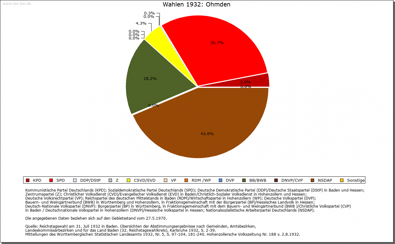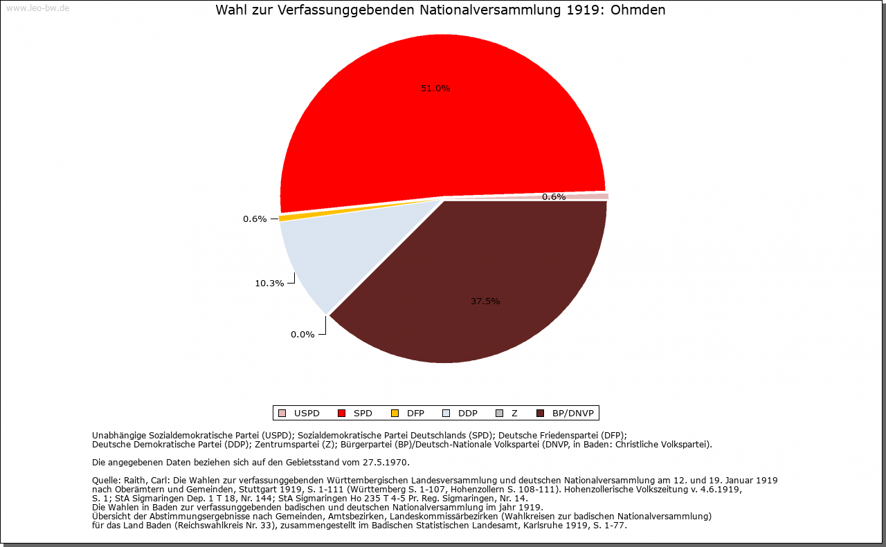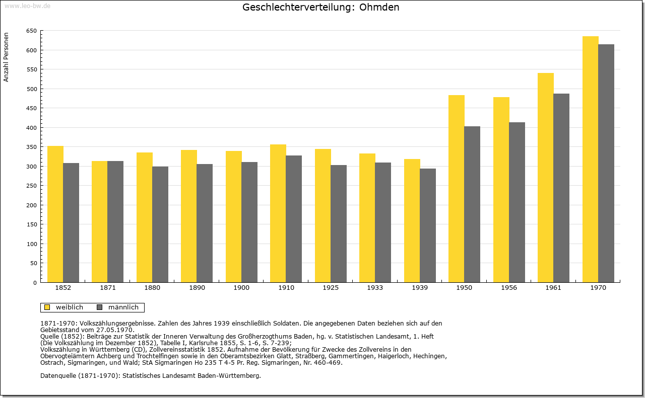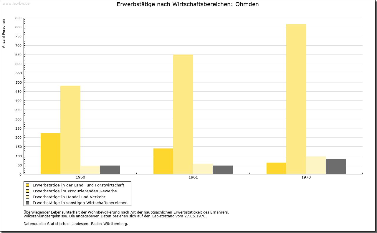 | Wirtschaft und Bevölkerung: | 1525 bestand Ohmden aus 41 Behausungen mit schätzungsweise 185 Einwohnern, das versteuerbare Gesamtvermögen wurde auf 1446 Gulden veranschlagt. 1544/45 besaßen 17 Prozent der Einwohner unter 20 Gulden, 29 Prozent 20–100, 48 Prozent 100–500 und 5 Prozent 500–1000 Gulden. Zehn Empfänger von Lohn- und Dienstgeld (Knechte und Mägde) wurden pro Kopf auf 3,5 Gulden geschätzt. 1598 wohnten im Flecken 124 Bürger und sieben Witwen, der Ort hatte somit rund 560 Einwohner. Die Leiden im 30-jährigen Krieg begannen 1630 mit der Einquartierung kaiserlicher Truppen, schwere Verwüstungen erfolgten nach der Nördlinger Schlacht von 1634: 150 Rinder, 125 Pferde, 1500 Scheffel Frucht wurden von den Kaiserlichen entwendet, viele Gebäude zerstört. Viele Einwohner waren in das ummauerte Kirchheim geflüchtet. 1634/35 forderten Seuchen (die man als Pest bezeichnete) viele weitere Opfer. Raub und Brand verursachten auch die Armeen der Franzosen, Schweden und Bayern 1643. Der Gesamtschaden war immens hoch. Die Zahl der Einwohner sank im 30-jährigen Krieg von 304 (1617) auf 102 (1655) ab, von 70 Häusern blieben nur 44 übrig, noch 1662 waren der Ort und seine Einwohner hoch verschuldet. Erst 1725 wurde die Vorkriegszahl der Bevölkerung wieder erreicht, 1803 gab es 508 Einwohner im Ort. Bewirtschaftet wurden 1634: 157 Morgen Wiesen und Gärten, 342 Morgen Äcker in der Oberen, der Unteren und der Weiler Zelg (die auch schon 1565 genannt werden) sowie einige Weingärten. Die Schiefergewinnung wird zwar zum ersten Mal im 17. Jahrhundert erwähnt, es ist aber anzunehmen, dass sie schon im Mittelalter betrieben wurde. 1730 waren in Ohmden 48 Häuser mit Scheunen und 15 Häuser ohne Scheunen steuerpflichtig. Einige Gebäude sind »fein dorfmäßig«, die übrigen aber teilweise sehr schlecht und baufällig; etliche Gebäude haben Schieferdächer. Das Wirtschaftsland umfasste damals 515 Morgen Äcker, 382 Morgen Wiesen, 26 Morgen Baum-, Gras- und Küchengärten, darunter auch Weingärten, 198 Morgen Wald in Gemeindebesitz, 222 Morgen Viehweiden, Allmenden und Egärten in Gemeindebesitz, insgesamt 1343 Morgen. Die Qualität der landwirtschaftlichen Flächen wird damals als schlecht bezeichnet: die Äcker und die Wiesen liegen bergig und sind von Wildfraß betroffen. Die Weingärten sind ziemlich schlecht. Handwerk ist in Ohmden kaum vorhanden. Eine Person betreibt eine Gastwirtschaft. |
