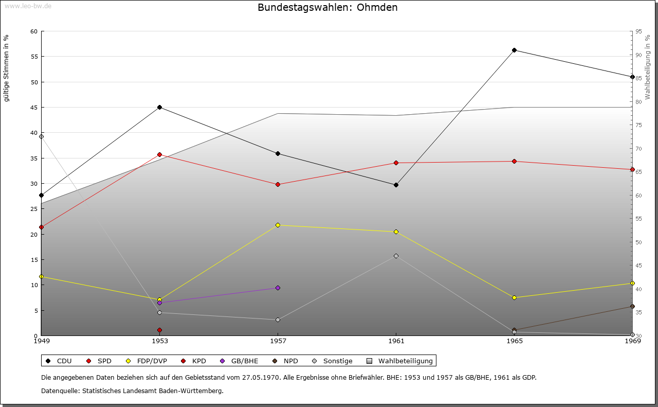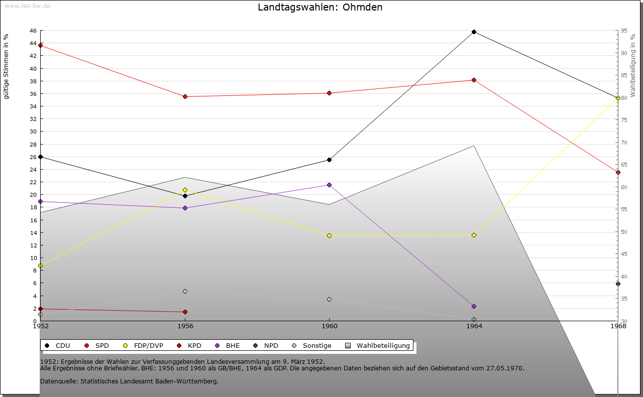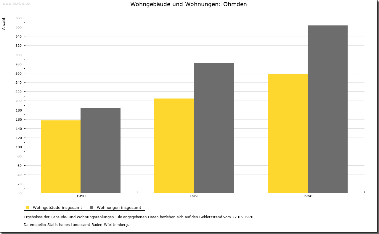 Ortslage und Siedlung (bis 1970): | Auf der Gemarkung befinden sich in Richtung Zell hallstattzeitliche Grabhügel (im Oberholz), im Oberdorf wurden ein römischer Hof und in seiner Nähe alemannische Reihengräber nachgewiesen. Der Ortsname Ohmden (alte Formen: 12. Jahrhundert »Amindon«, 13. Jahrhundert »Ameden«, »Amdun«, 1314 »Ampden«, 1534 »Ombden«) ist aus einem Flurnamen entstanden, der »bei den zweimal gemähten Wiesen« bedeutet. Der Ort, wahrscheinlich vom älteren Jesingen aus besiedelt, ist aus den beiden alten Höfen, dem Unteren Hof und dem Oberen (Widum-)hof zusammengewachsen. Im 14. Jahrhundert werden der »Remins hoff«, der »Cuonsmanns hoff« und der »Stimpers hoff« genannt, die im Unterdorf lagen und ein Drittel ihrer Erträge an Sankt Peter abzuliefern hatten. Die Menschen auf diesen Höfen galten daher als Gotteshausleute. Auf der Markung Ohmdens lag im hohen Mittelalter eine weitere Siedlung Pippendorf (Siedlung des Pippo), die später wüst gefallen ist. Daran erinnert ein Flurname nordöstlich des Ortes. Die Lage der Ohmdener Burg (am ehesten im Bereich der Steige) konnte bis jetzt nicht festgestellt werden. Das am Trinkbach gelegene Dorf besitzt neue Wohngebiete im Osten (1960), im Nordosten (1965) und am Südrand (1970), sowie eine gewerbliche Ansiedlung am Westrand (1950/60) des Ortes. |