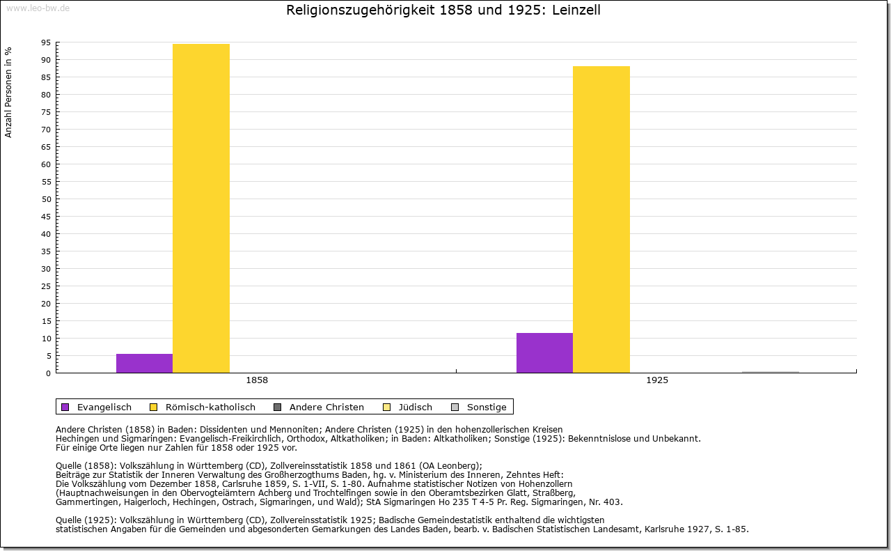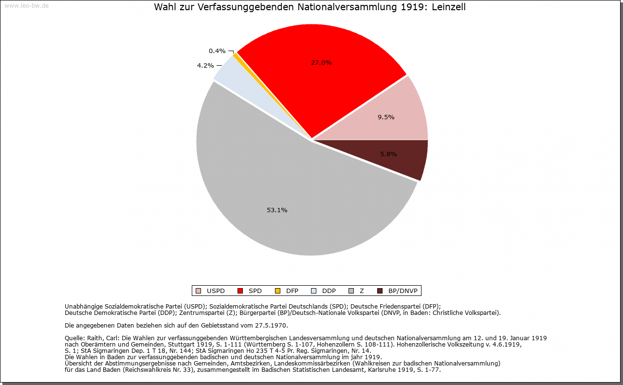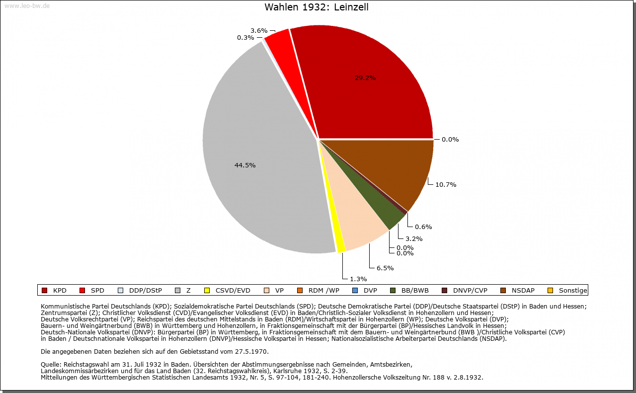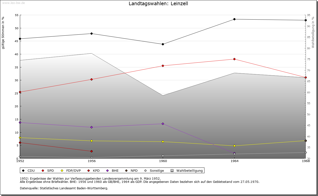 | Geschichte: | 1259 Cella, 1409 Zell an der Lin, 1456 Lynzell. Der Ortsname weist auf eine frühe klösterliche Niederlassung an der Lein, die wohl von Ellwangen ausging, aber keine Spuren hinterlassen hat. Eine Mühle eignete Kloster Ellwangen 1356 dem Albrecht Hack. Die Feste mit Zubehör trugen 1360 — 1483 die Gmünder Taler genannt Burger von Kloster Ellwangen zu Lehen, seit 1484 die von Westerstetten, seit 1530 die von Horkheim, seit 1612 die Faber von Randeck. Nach Aussterben der von Randeck im Mannesstamm gab Ellwangen das heimgefallene Lehen 1636 an den wallensteinischen Kriegskommissar Valentin Lang, der 1634 in den Reichsfreiherrenstand erhoben worden war und als Oberamtmann in ellwangische Dienste trat. Zum Rittergut Leinzell, das dem Kanton am Kocher immatrikuliert war, gehörten außer Schloß und Dorf sowie dem Weiler Ölhäuser auch einige Untertanen in Göggingen. Das Schloßgut ist noch heute im Besitz der Familie. 1806 kam Leinzell unter württembergische Landeshoheit; seither Oberamt, seit 1938 Landkreis Schwäbisch Gmünd. — Der um 1790 eingeführte Weinbau ging bald wieder ab. Die wirtschaftliche Lage der Einwohner war lange Zeit sehr ungünstig. Im 18. Jahrhundert, namentlich nach einer 1776 erfolgten Teilung der Herrschaft, siedelten die von Lang zur Steigerung ihrer Einkünfte zahlreiche besitzlose Fremde an, die auf der kleinen Gemarkung, die zur Hälfte zum Schloß gehörte, keine Erwerbsmöglichkeiten fanden und sich durch Wandergewerbe (als Kesselflicker, Scherenschleifer und dergleichen) und Hausierhandel mit selbstgefertigten Korb-, Bürsten-, Besen- und anderen Waren sowie durch Bettel zu ernähren suchten. Im 19. Jahrhunderft versuchte der württembergische Staat durch Gründung einer Industrieschule, die Verdienstmöglichkeiten durch Heimarbeit für auswärtige Fabriken schaffen sollte, der Notlage abzuhelfen. Allein im Jahr 1852 wanderten 28 Familien mit staatlicher Beihilfe nach Amerika aus. 1855 — 1877 stand die Gemeinde unter Staatsaufsicht. — Im 30 Jährigen Krieg wurde fast der ganze Ort einschließlich des Schlosses verbrannt. |