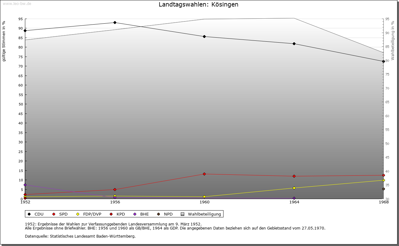 | Geschichte: | 9. Jahrhundert (Кор. 12. Jahrhundert) Kesingen (Personenname), Ort der ältesten Siedlungsschicht mit Reihengräberfriedhof. Kloster Fulda erhielt hier im 9. Jahrhundert Besitz, den später die Grafen von Öttingen zu Lehen trugen. Von diesen als Ortsherren erhielten im 13. Jahrhundert die Klöster Kaisheim und Christgarten Besitz. Auch Kloster Neresheim und mehrere Adelsfamilien waren begütert. 1623 kaufte Neresheim ein adeliges Haus, das 1585 der Neresheimer Vogt Werner Nuttel erbaut hatte, gab es aber samt seinem sonstigen Besitz 1764 an Öttingen-Wallerstein ab. Öttingen hatte von jeher Dorfherrschaft und Hochgericht sowie seit 1353 eine Zollstätte. Der Ort fiel 1806 an Bayern, 1810 an Württemberg. Bis 1938 Oberamt Neresheim, dann Landkreis Aalen. |
