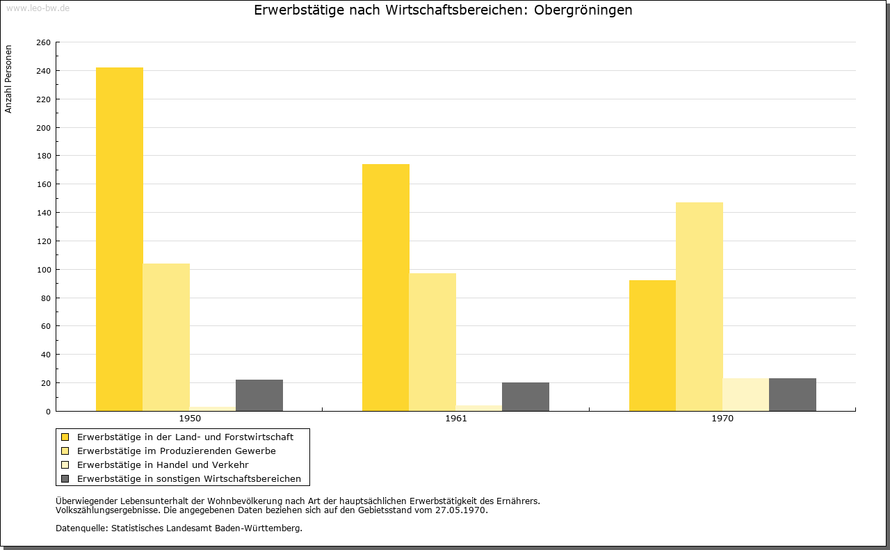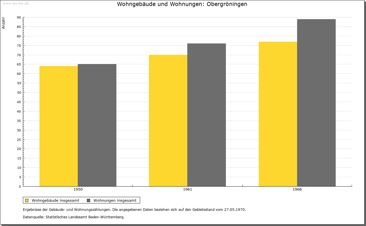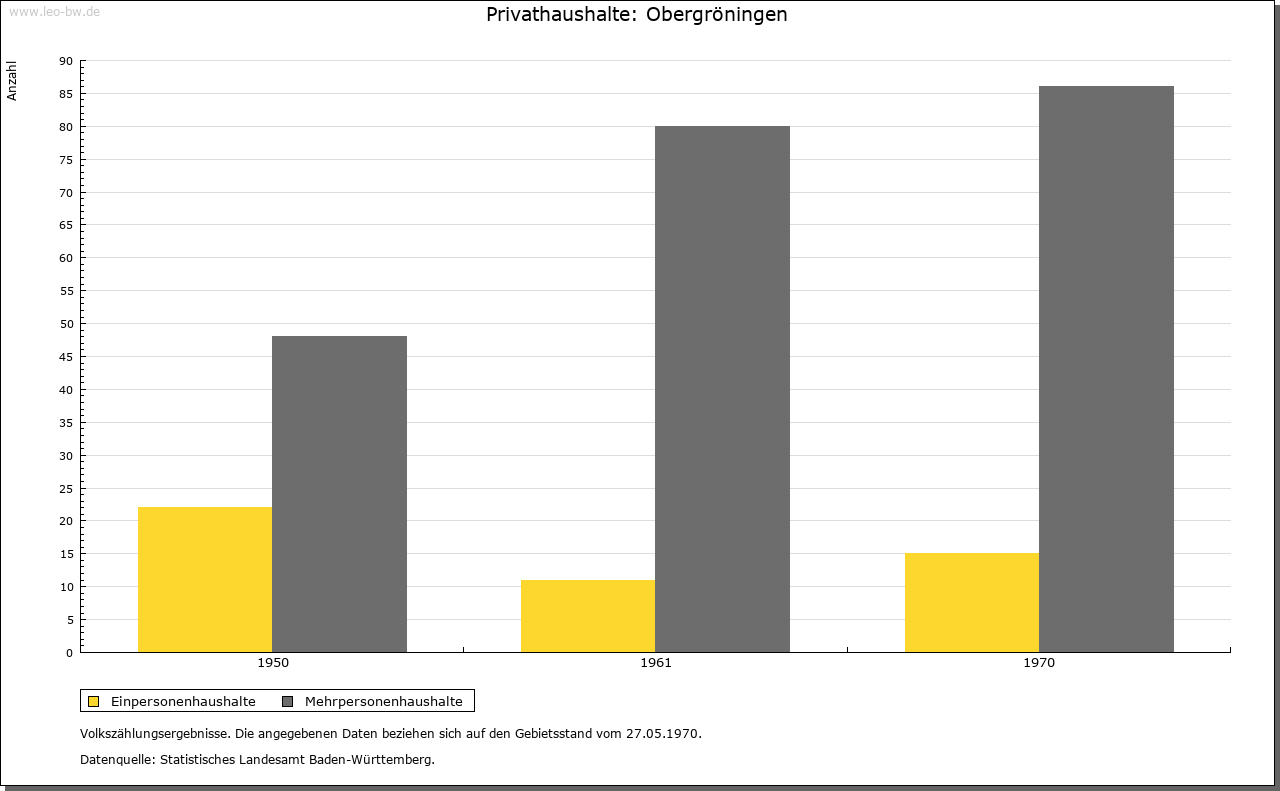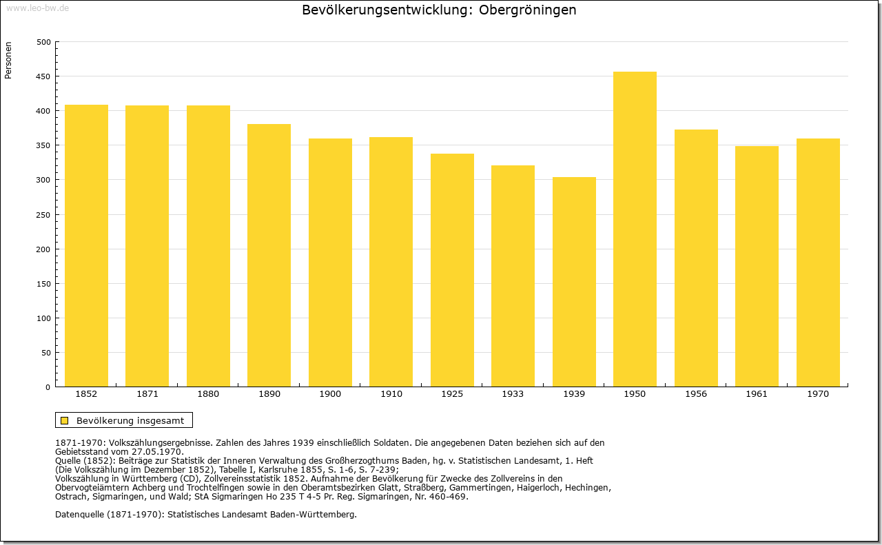 | Geschichte: | 1248 Gruningen (Personenname), Ort der ältesten Siedlungsschicht. Ob mit Gruningen, in dem 1248 Kloster Comburg begütert war, Ober- oder Untergröningen gemeint ist, steht nicht fest. Jedenfalls gilt Obergröningen als der ältere der beiden Gröningen-Orte. Der Ort kam von den von Rechberg 1436 zusammen mit Untergröningen an die Schenken von Limpurg. Das Dorf zählte damals neun Höfe und Lehen. Es gehörte nach der limpurgischen Erbteilung ins Amt Untergröningen des Landesteils Limpurg-Gröningen, der 1774 an Hohenlohe-Bartenstein fiel. Kam 1804 durch Tausch an die Fürsten von Colloredo-Mansfeld, 1806 an Württemberg. Oberamt Gaildorf, seit 1938 Landkreis Schwäbisch Gmünd. Im 30 Jährigen Krieg starb das Dorf nahezu aus. In neuerer Zeit stieß man auf ein Massengrab mit Pesttoten. Allein 1635 starben 100 Personen an Seuchen. |