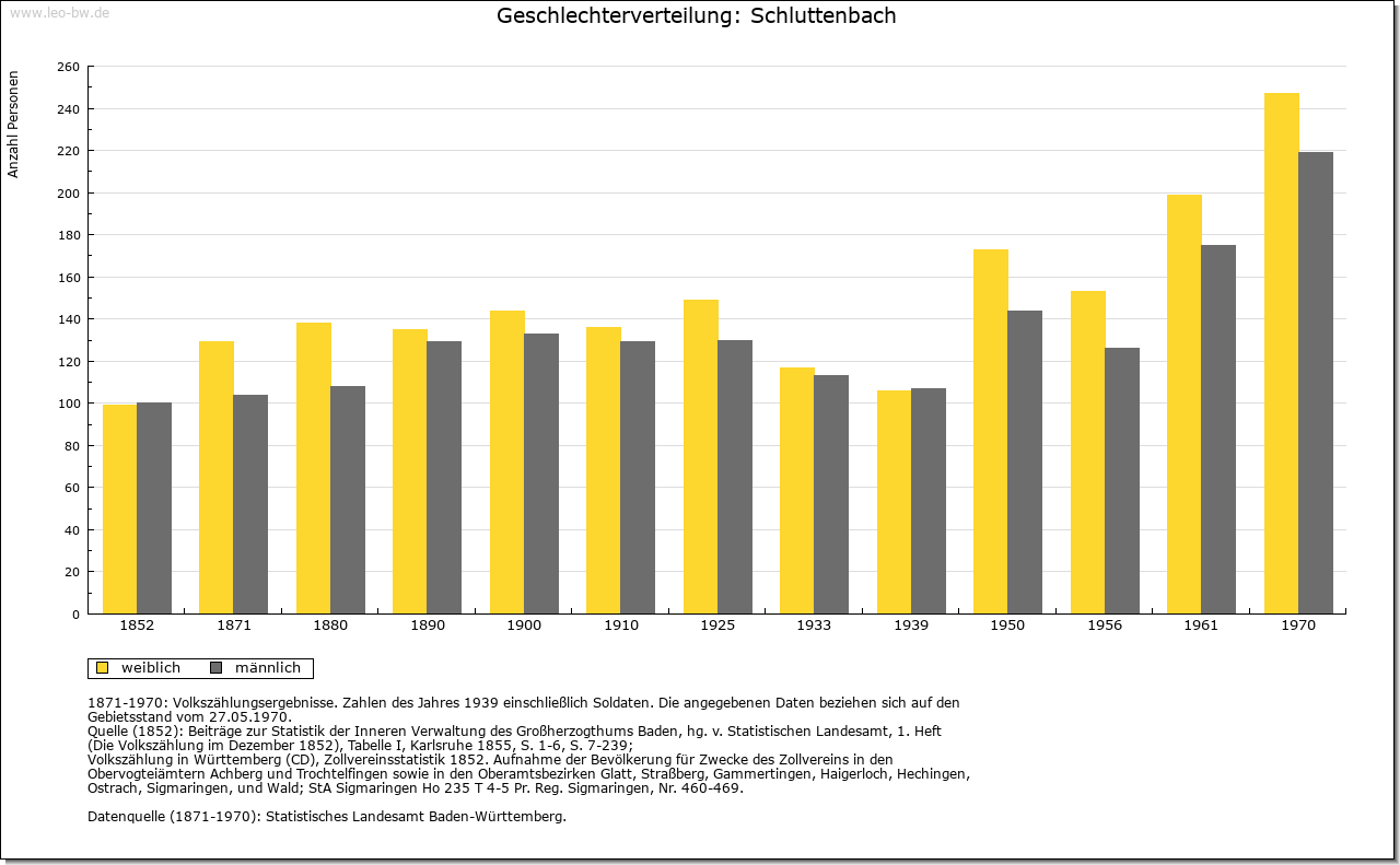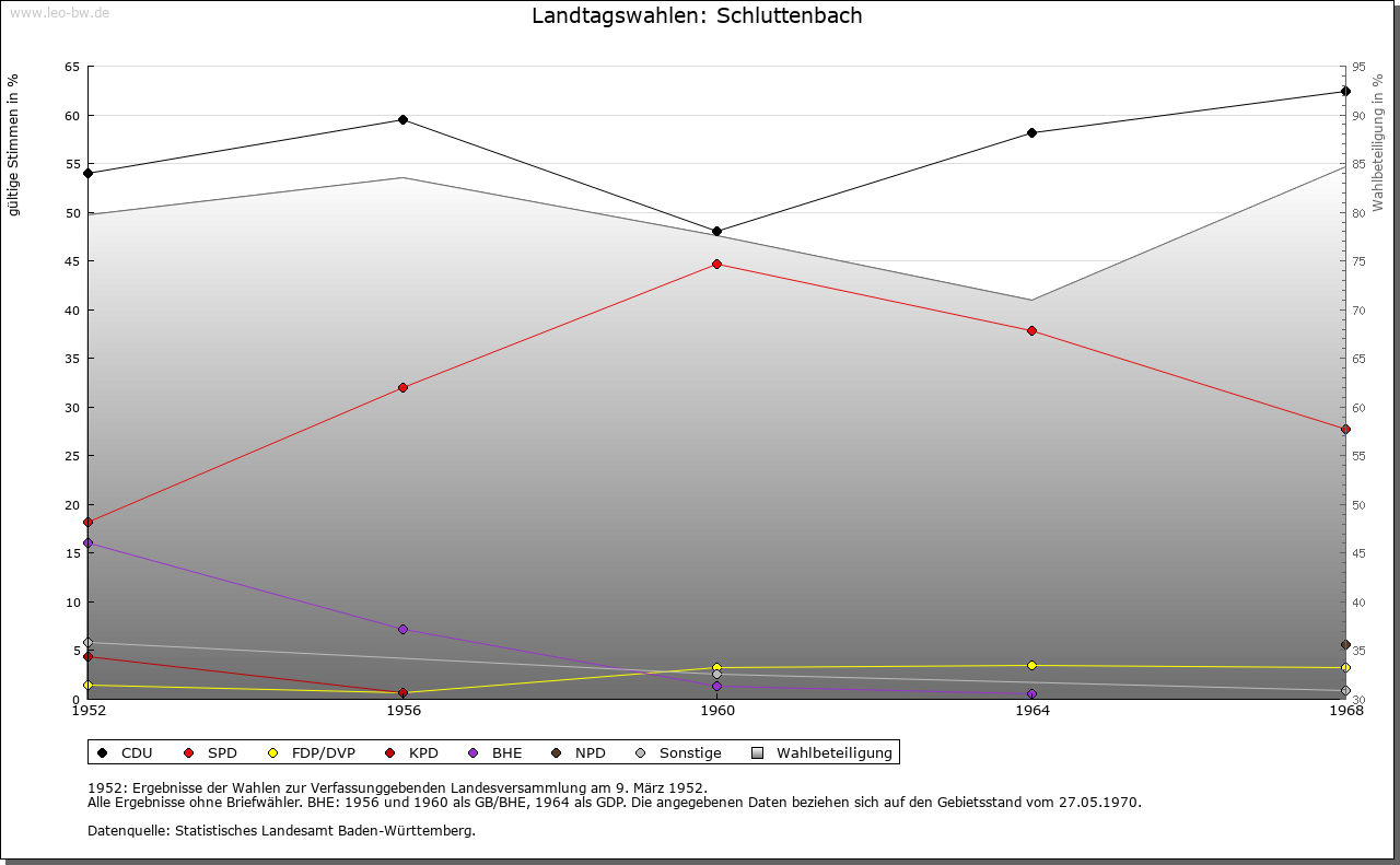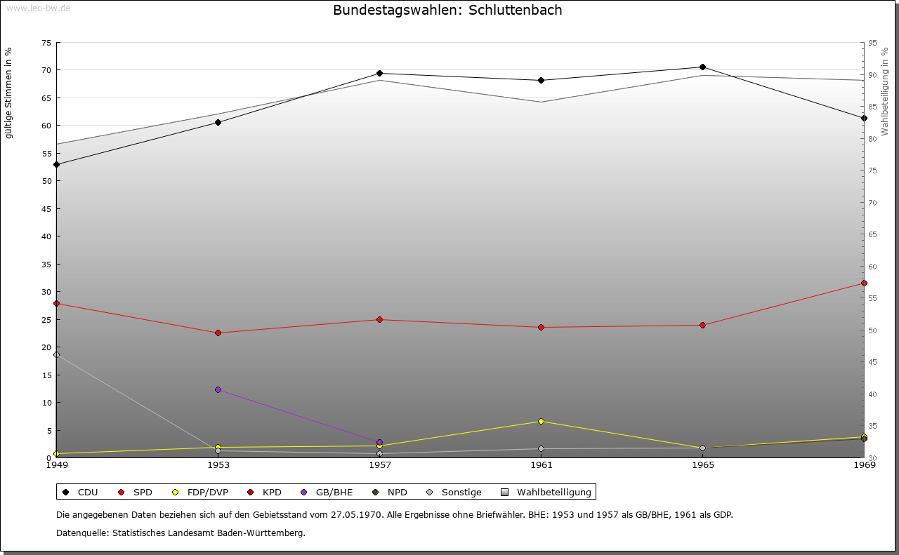 | Geschichte: | 1346 Sluttenbach, mehrere Deutungsmöglichkeiten als Schlamm-, Schilf- oder Schluchtbach. Hochmittelalterliche Rodungssiedlung im Bereich der Gemarkung Ettlingenweier, mit dem es noch lange in Markgenossenschaft blieb. Wohl wie Grünwettersbach (Stadtkreis Karlsruhe) aus dem Erbe der Grafen von Malsch und der Grafen von Vaihingen stammend und 1346 durch Kechler von Rotenberg, einem remchingischen Schwiegersohn, an Württemberg verkauft, Amt Neuenbürg. 1528 im Austausch für Teile von Schwann (Gemeinde Straubenhardt, Enzkreis) an die Markgrafen, Amt Ettlingen bis 1937. |