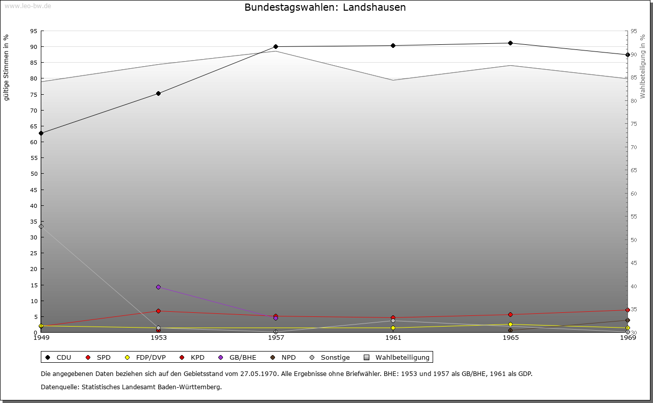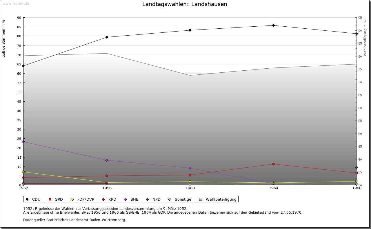 | Geschichte: | 864/76 (Kopialüberlieferung 12. Jahrhundert) Huserard marca, wohl verschrieben für Husare, Ausbauort von Menzingen, zunächst ohne nähere Kennzeichnung, um 1100 (Kopialüberlieferung 16. Jahrhundert) Nanthesshusen, 1386 Lantzhusen, also Umdeutung einer Nennung nach Personenname. Bedeutender Lorscher, dann Hirsauer, auch Odenheimer Grundbesitz. Herrschaftsrechte bei den Herren von Menzingen, von diesen 1426 und 1427 in zwei Hälften ans Kloster Odenheim verpfändet, 1533 endgültiger Verzicht auf die Rücklösung. Seit Zugehörigkeit zum Kloster unter bischöflich-speyerischer Landesherrschaft. 1803 an Baden, 1810 zum Amt Eppingen. 1924 zu Bruchsal, 1938 zum Landkreis Sinsheim. |