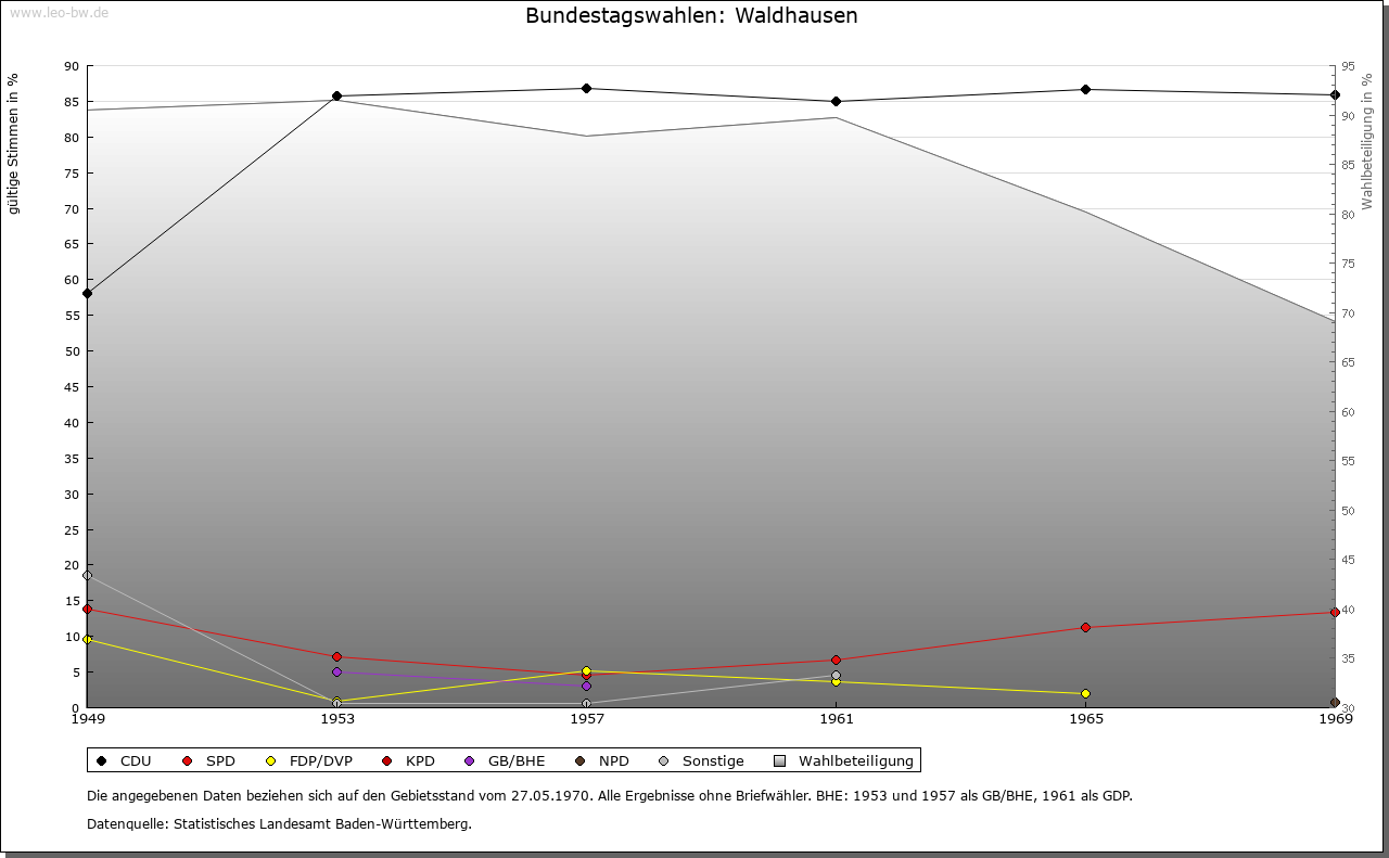 | Geschichte: | 1316 Housin, 1485 Walthusen. Rodungssiedlung von Bödigheim her im Amorbacher Odenwald. Grundherrschaft Amorbach. Zent und Amtskellerei Mudau des mainzischen Oberamtes Amorbach. Die Ortsherrschaft Würzburger Lehen für die Rüdt von Bödigheim. Mainzische Landeshoheit, Steuerrechte der Ritterschaft umstritten, ebenso 1803 die Rechte des Fürsten von Leiningen, 1806 badisch. Seit 1813 Amt Buchen. |