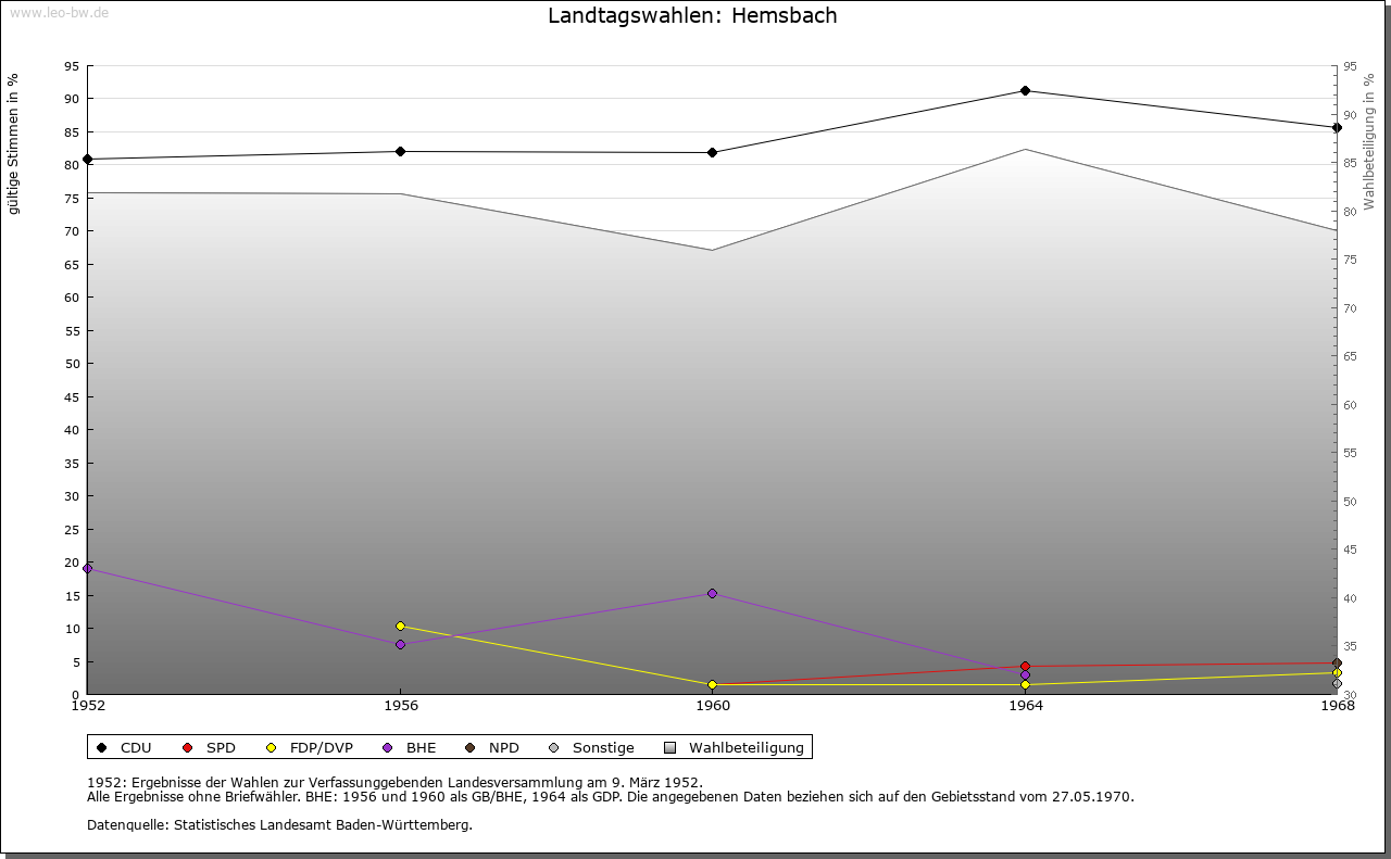 | Geschichte: | 837 Heinwinesbach, von Personenname Heinwin. Ausbauort der fränkischen Zeit. Zum Königsgut um Osterburken gehörig, unter Karl dem Großen an Würzburg. Im 13. Jahrhundert unter der Oberherrschaft der Herren von Dürn. Teilweise als Würzburger Lehnsleute die Junker von Adelsheim begütert, aber die wesentlichen Herrschaftsrechte von den Herren von Dürn und ihren Verwandten im 12./13. Jahrhundert an Kloster Seligental gegeben. Mit diesem ab 1558 unter unmittelbar kurmainzische Herrschaft, Zent Osterburken. 1803 an Leiningen, 1806 an Baden, Amt Osterburken, ab 1828 Bezirksamt Adelsheim, 1936 Buchen. |
