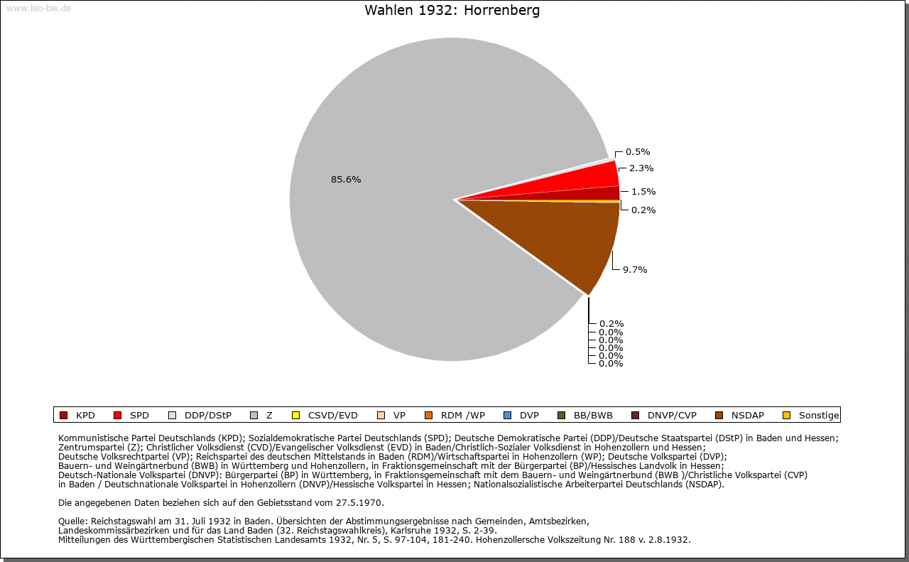 | Geschichte: | Ab 1272 Horrenburch, von hör, Sumpf, Schmutz. Nicht immer sicher von Hornberg am Neckar (Gemeinde Neckarzimmern, Verwaltungsraum Mosbach, Neckar-Odenwald-Kreis) zu unterscheiden. Der Name von der Burg auf eine allmählich sich anschließende Siedlung übertragen. Die Burg im 16. Jahrhundert aufgegeben. Vor 1272 Herrschaft wohl vom Bistum Worms ans Speyerer Hochstift übergegangen. 1238-1455 eigener Niederadel. Horrenberg 1463-1507 mit dem Amt Rotenberg an Kurpfalz verpfändet. 1803 an Baden, 1910-1938 zum Bezirksamt Wiesloch, dann Heidelberg. |
