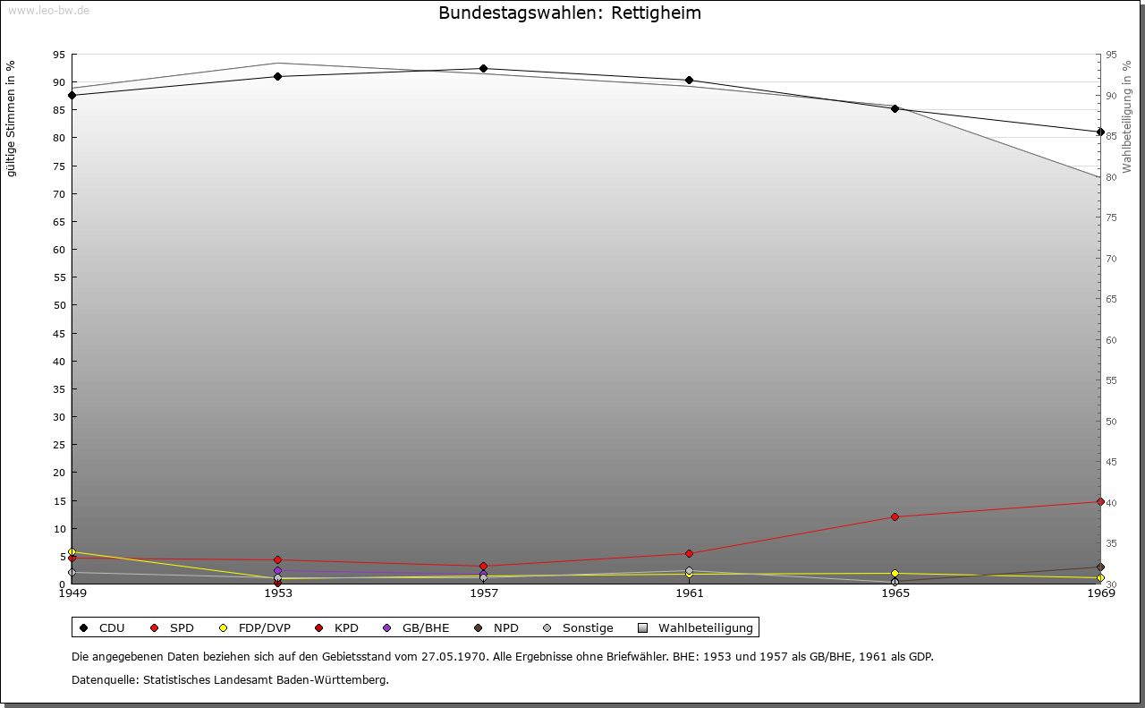 | Kirche und Schule: | Die Kirche St. Nikolaus, Filial von Malsch. 1868 selbständige katholische Pfarrei. Spätklassizistischer Bau von 1824. 1956 durch großen Chorraum erweitert. Evangelischer Nebenort von Langenbrücken. |