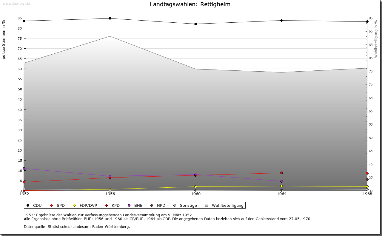 | Geschichte: | 770-800 (Kopialüberlieferung 12. Jahrhundert) Radincheim, von Personenname Reding. Vielleicht ursprünglich mit Malsch, wohin sich nachher der Schwerpunkt verlagerte, eine Einheit bildend. Wohl von den Kraichgaugrafen an Kloster Odenheim. Dessen Vogtei nach Aussterben der Grafen von Lauffen 1219 an den König, 1338 an den Bischof von Speyer gekommen. 1546 auch die Ortsherrschaft fürstbischöflich, wahrgenommen durch das Amt Kislau. 1803 badisch. 1810-1938 zum Bezirksamt Wiesloch. |
