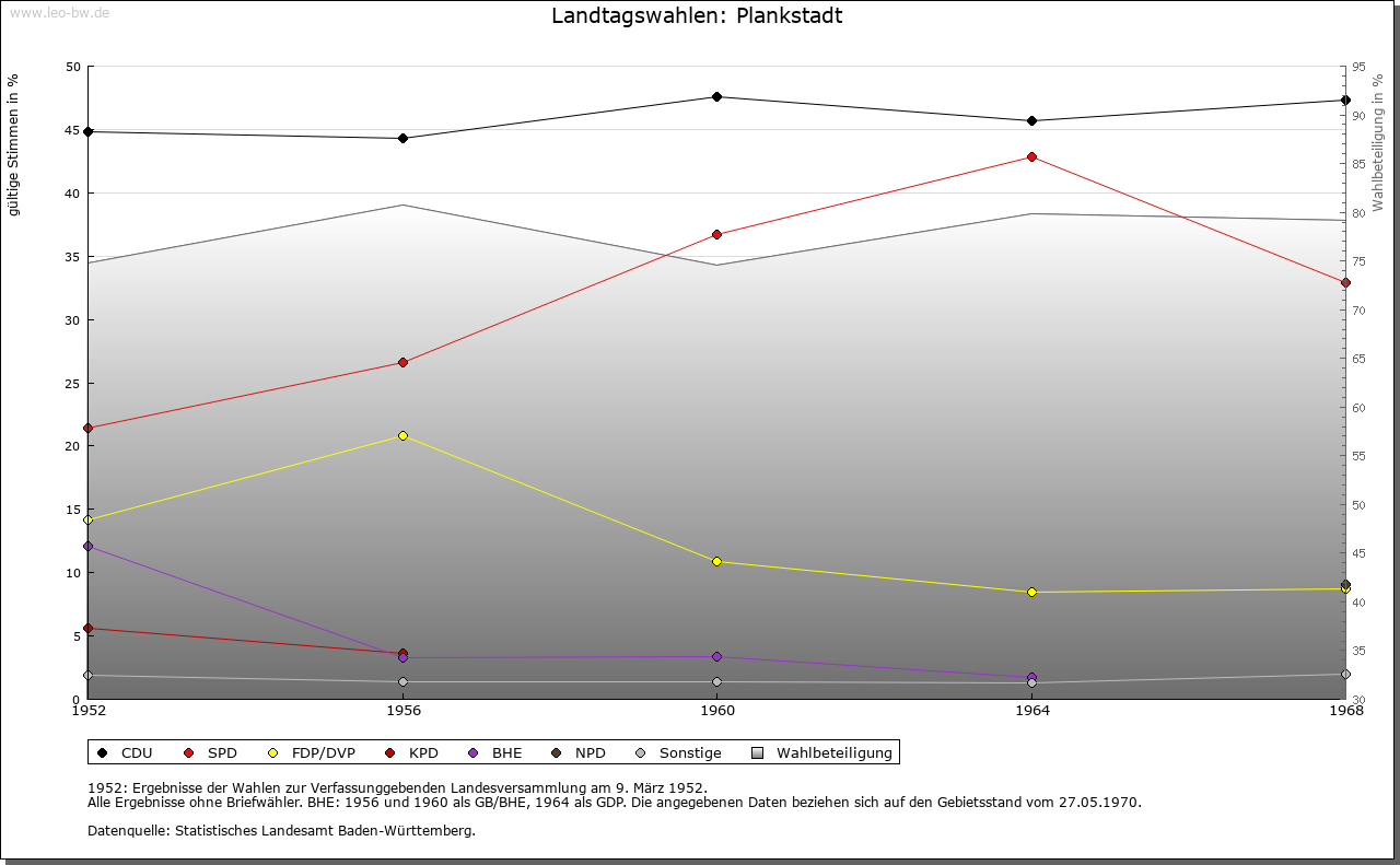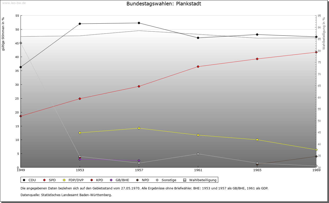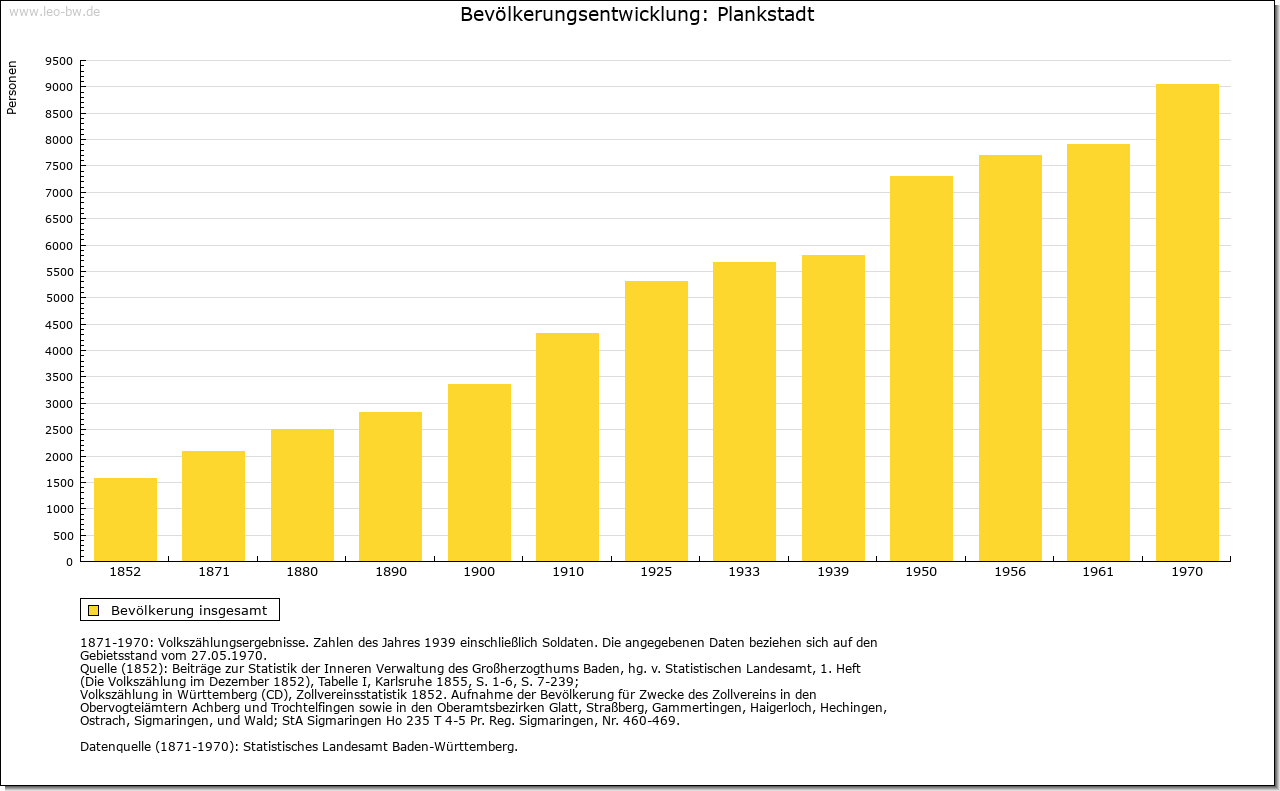 | Geschichte: | 771 Blanckenstat, vielleicht von Personenname. Plankstadt, wo neueste Funde in der Schwetzinger Straße vielleicht einen Reihengräberfriedhof andeuten, wohl erst in der Lorscher Zeit mit einer sich ausbildenden Grundherrschaft zum Schwerpunkt der Siedlung geworden. Das im Süden auf der Gemarkung gelegene Truchtolfesheim (784-804), das durch den Namen und einen Reihengräberfriedhof als ältere Siedlung belegt ist, ging allmählich ab. 1165 kam, schon unter pfälzische Oberherrschaft, der große Lorscher Besitz ans Tochterkloster Neuburg, 1173 von diesem an Kloster Lobenfeld. 1254-1259 kauften die Schönauer Zisterzienser den ganzen Grundbesitz und versuchten, Plankstadt zur Grangie zu machen. Das scheiterte am Widerstand der erstarkenden Gemeinde, das Land wurde wieder in Pacht ausgegeben. Plankstadt gehörte zur Kirchheimer Zent und damit zum Oberamt Heidelberg. 1803 wurde es durch den neuen Landesherrn Baden dem Amt Schwetzingen zugeteilt, 1924 mit diesem dem Bezirksamt Mannheim eingegliedert. |