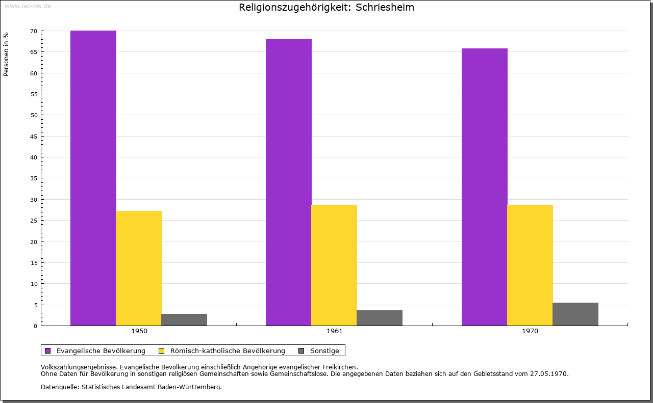 | Kirche und Schule: | Die Pfarrkirche (St. Vitus, 1496) wohl nach der Stadtgründung vom unbekannten alten Platz wegverlegt. Patronatsrecht 1456 von Kloster Ellwangen an Kloster Schönau. Reformation durch die Kurpfalz. Ab 1699 auch lutherische Pfarrei mit weitem Sprengel, deren Kirche von 1711 heute neuapostolisches Gotteshaus. Am Platz der reformierten Barockkirche 1835 klassizistische Kirche, 1899 nach Westen erweitert. Seit 1967 zwei evangelische Pfarreien. 1698 katholische Pfarrei unter landesherrlichem Patronat. 1711 Kirche Mariä Himmelfahrt, diese 1794 verlängert, ebenso 1925 und neubarocker Turm angefügt. 1959 große Erweiterung nach Norden und Umorientierung. |