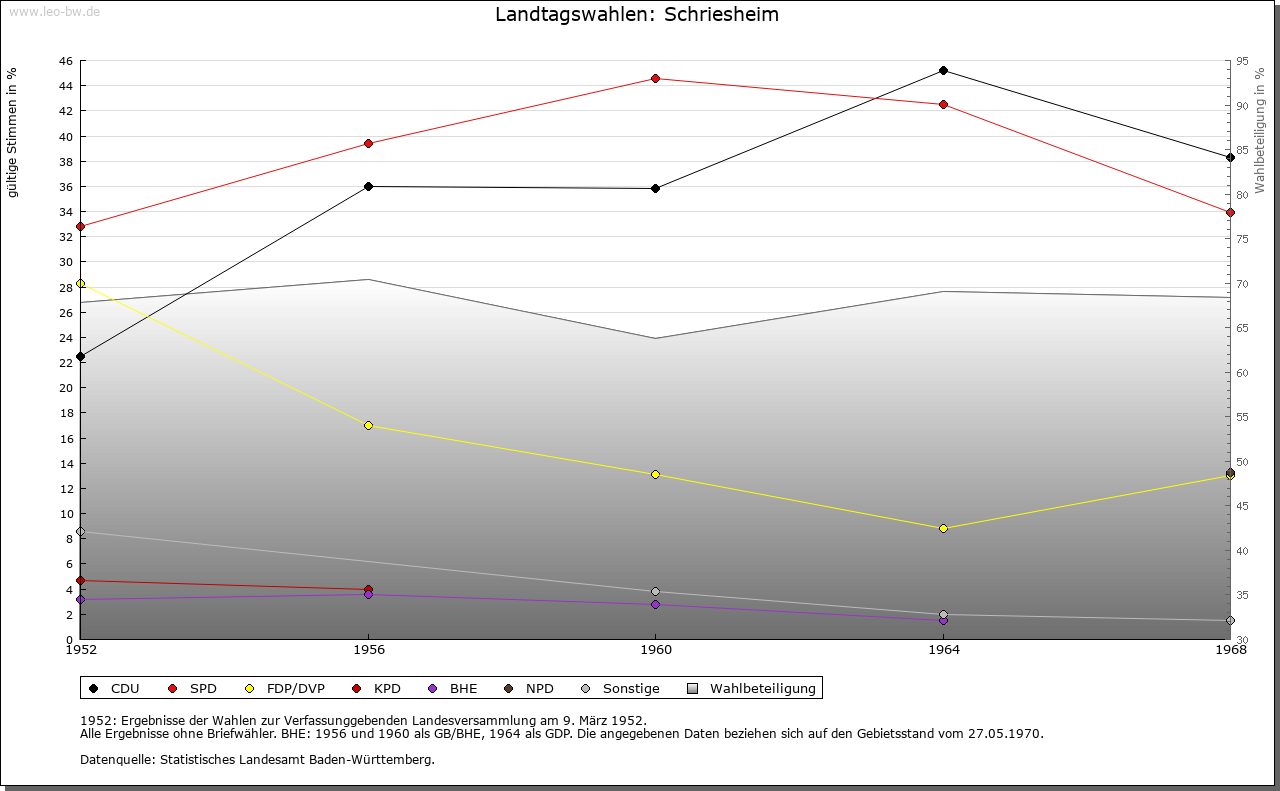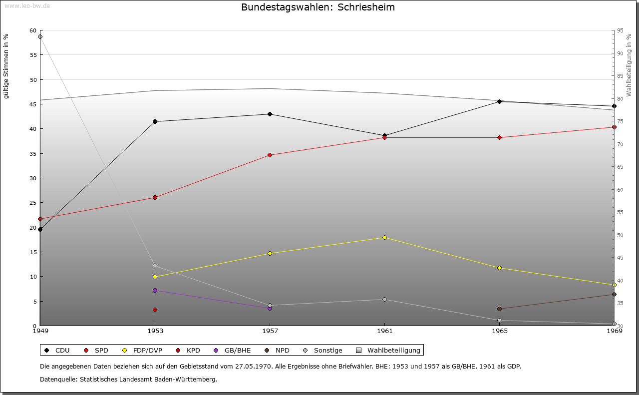 | Geschichte: | 764 (Fälschung 12. Jahrhundert) Scriezesheim, 766 (Kopialüberlieferung 12. Jahrhundert) Scrizzesheim, von Personenname. Bisher fehlt ein Reihengräberfriedhof. Der Ursprung der Siedlung ist trotzdem im 6. Jahrhundert zu suchen. Neben Lorsch überwiegender Grundbesitzer das Kloster Ellwangen. Dieses hatte in Schriesheim eine Propstei, die im späten 12. Jahrhundert nach Wiesenbach (Verwaltungsraum Neckargemünd) verlegt wurde. Die Vogtei darüber wie über den Lorscher Grundbesitz stand den Edelherren von Strahlenberg zu, einem ab 1174 nachweisbaren Zweig der Herren von Hirschberg (vgl. Leutershausen, Gemeinde Hirschberg an der Bergstraße). Die Strahlenburg selbst wurde erst um 1230 von Konrad von Strahlenburg widerrechtlich auf Ellwanger Grund gebaut. Nach Eingreifen des Kaisers musste er sie wie die Dorfherrschaft von Ellwangen zu Lehen nehmen. Um 1250 errichteten die Strahlenberger unterhalb der Burg eine Stadt, eine quadratische Anlage mit einer Achse. 1301 Stadt und Burg für Pfalz geöffnet, bald aber auch für Mainz. Die Konkurrenz beider Territorien endete 1347 mit dem endgültigen Verkauf durch die Strahlenberger an die Pfalz; sie waren noch bis nach 1440 auf der Burg als Träger des ellwangischen Lehens für die Pfalz ansässig. In der Landesteilung 1410 Schriesheim an Pfalz-Mosbach, 1448 an die Linie Pfalz-Simmern-Zweibrücken, später -Veldenz. 1470 in der Weißenburger Fehde von Kurpfalz erobert, die Stadtbefestigung geschleift. Die Strahlenburg anscheinend erst durch die Hessen im Landshuter Krieg 1504 zerstört. Heute trotz Ausbaus zur Gaststätte noch äußerer Bering, runder Bergfried (13. Jahrhundert) und Außenmauer des Palas erhalten. Schriesheim, fortan nur noch Marktflecken, wurde vor 1500 zum Hauptort der Äpfelbacher (vgl. Großsachsen, Gemeinde Hirschberg an der Bergstraße), jetzt Schriesheimer Zent, innerhalb des Oberamtes Heidelberg. 1803 an Baden. 1813 Amt Ladenburg, 1863 zum Bezirksamtes Mannheim. |