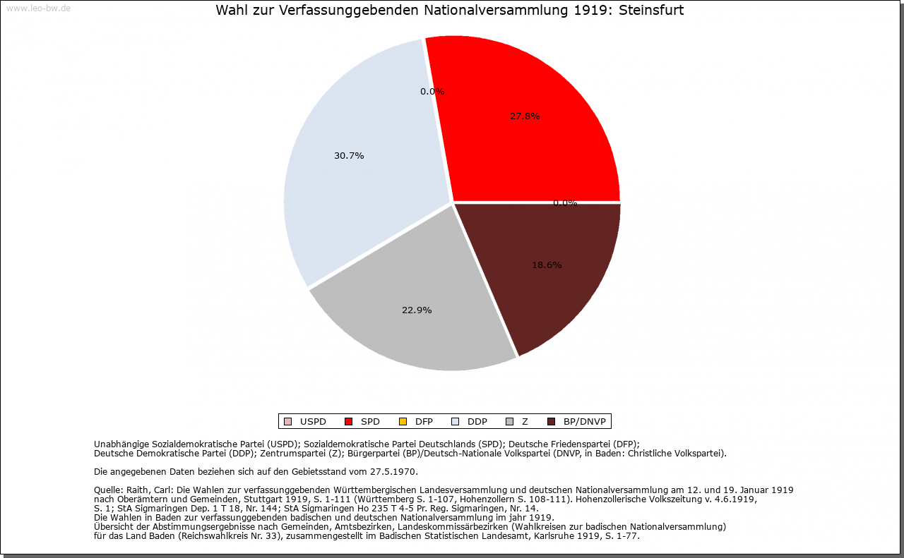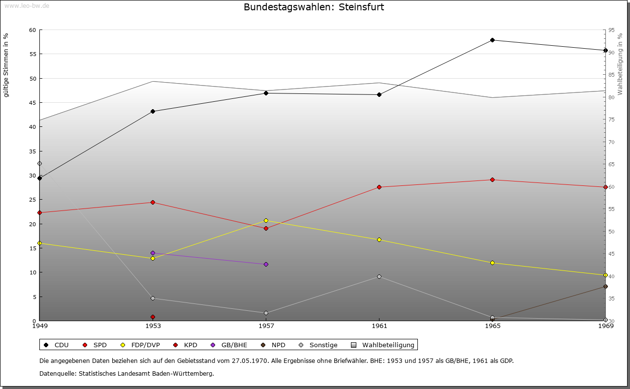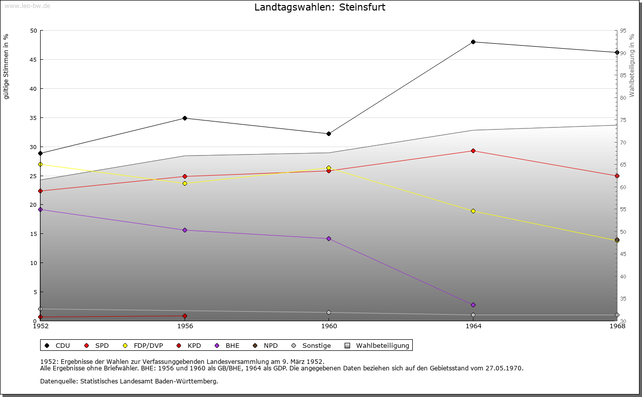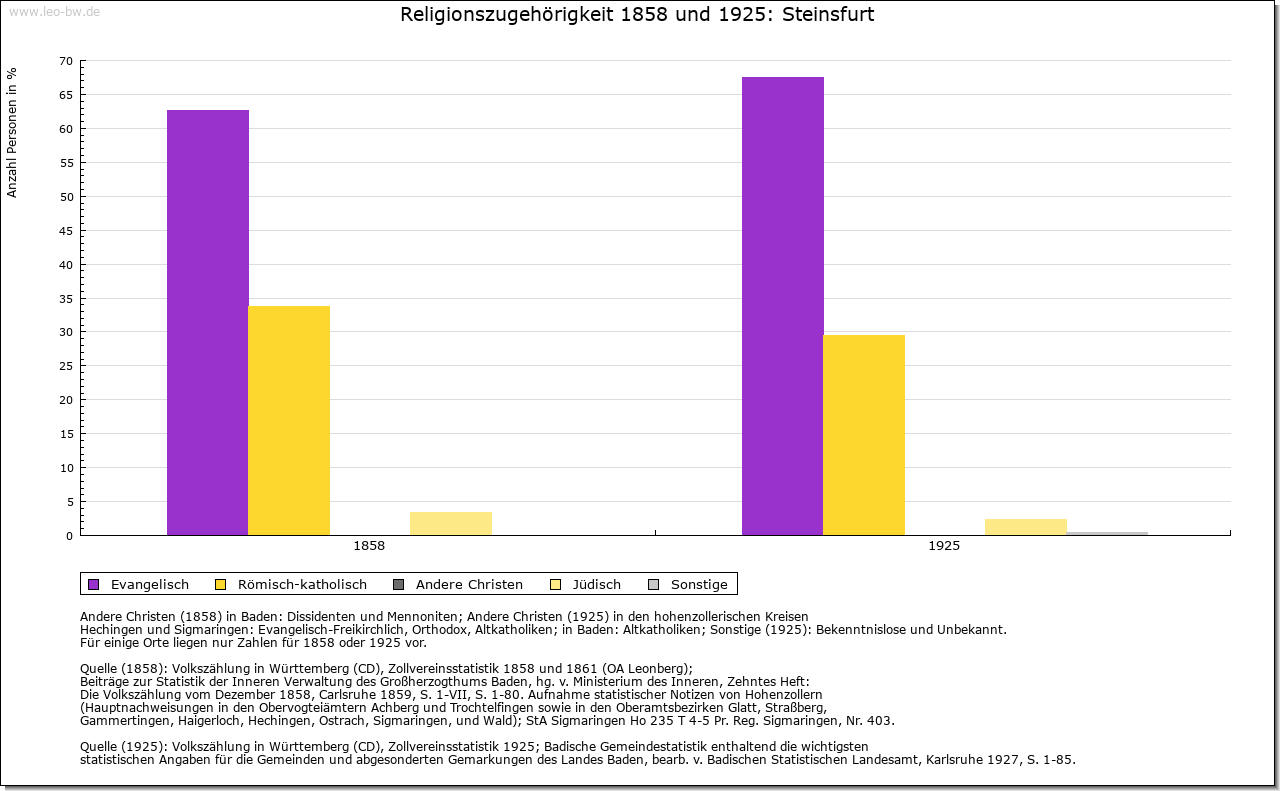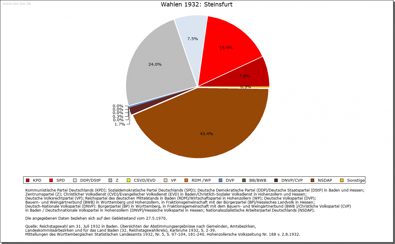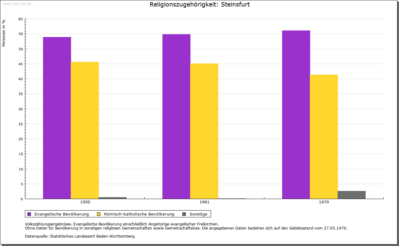 | Geschichte: | 1100 Steinvort. Übergangsstelle über die Elsenz an einem bedeutenden römischen Ruinenplatz und Straßenknotenpunkt. Fränkische Gräber am Westrand und ein vereinzeltes im Süden des Orts. Im Hochmittelalter Grundbesitz der Kraichgaugrafen ans Kloster Sinsheim. Hohe Obrigkeit wohl im Zusammenhang mit Sinsheim und der Sinsheimer Klostervogtei um 1330 an die Pfalzgrafen. 1420 verpfändete Wiprecht von Neuhaus die halbe Ortsherrschaft, Wormser Lehen, ans Kloster Sinsheim. Wahrscheinlich besaß dieses vorher schon Anteile der Ortsherrschaft, die es behielt, während diese Hälfte und ein weiteres Achtel immer wieder vom Wormser Bischof an die verschiedenen Besitzer von Neuhaus und Ehrstädt, die von Neuhaus, von Sachsenheim, von Helmstatt, später auch die von Gemmingen, ausgeliehen wurden. Mit dem Ende des Stifts Sinsheim in der Reformation und dem 30jährigen Krieg scheint die gesamte Ortsherrschaft der Pfalz zugefallen zu sein. Von Steinsfurt aus ist 1730 Friedrich der Große vor seinem Vater geflohen. Als Zubehör des Oberamtes Mosbach kam Steinsfurt 1803 an den Fürsten von Leiningen und 1806 zum Großherzotum Baden. Ab 1813 zählte es ununterbrochen zum Amt Sinsheim. |