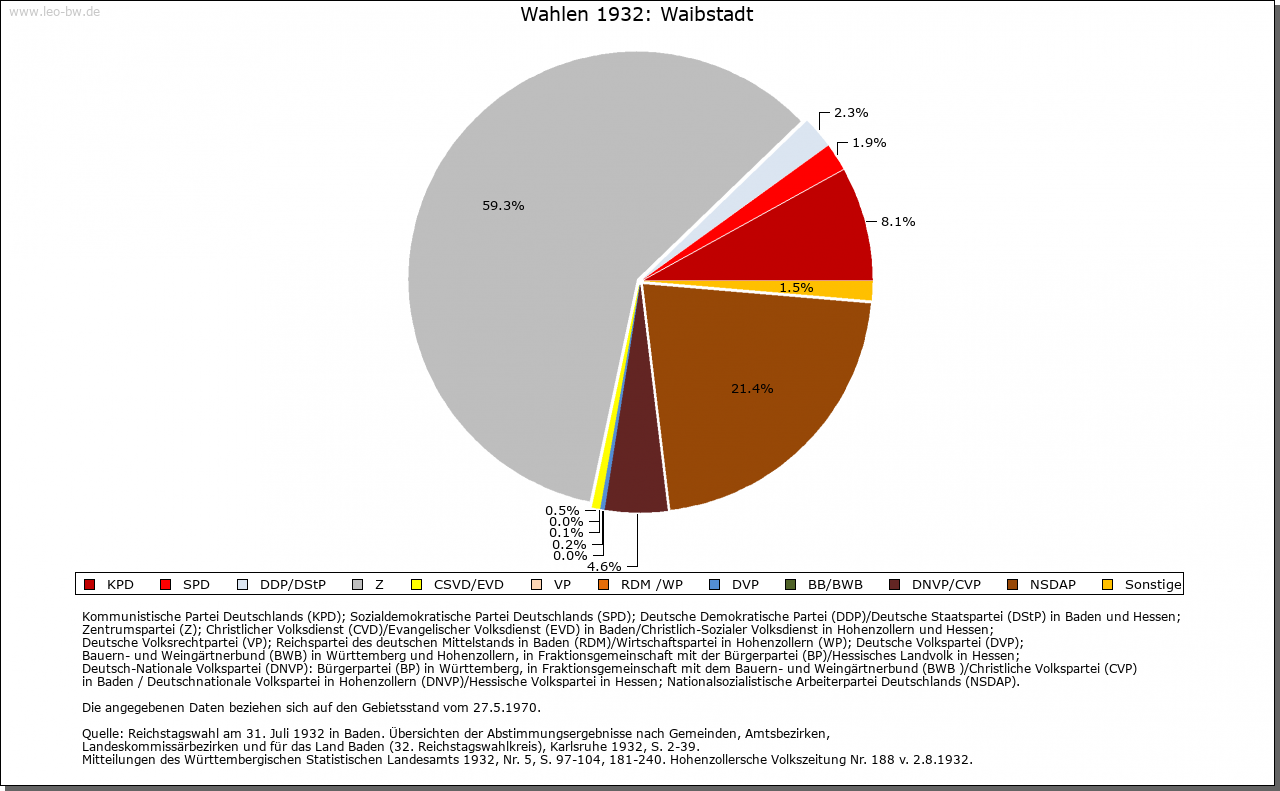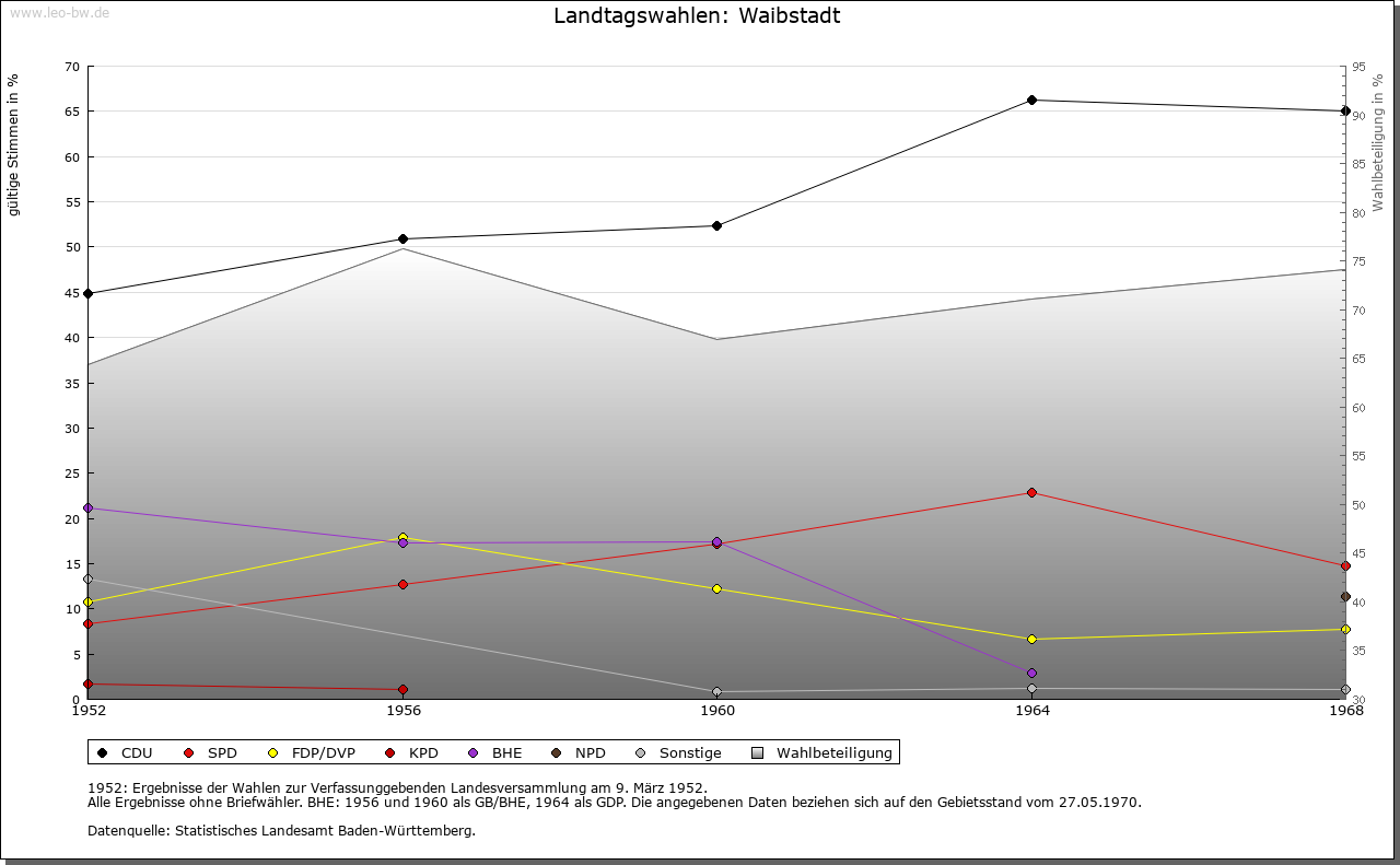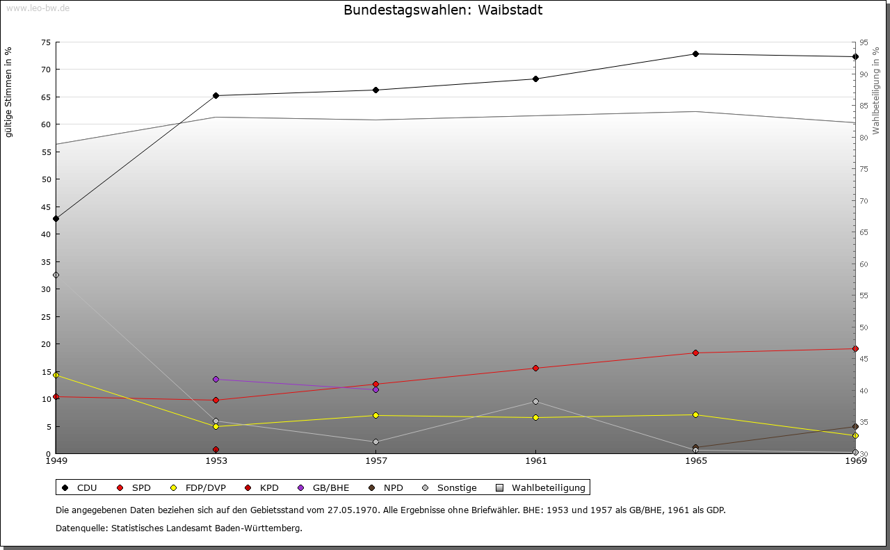 | Geschichte: | 795 (Kopialüberlieferung 12. Jahrhundert) Weibestat, vielleicht von weiba, Gerichtsbezirk. Wenn auch bisher kein Friedhof gefunden, Siedlung doch bis ins 6./7. Jahrhundert zurückgehend. Kleinerer Lorscher und schon früh Wormser Besitz, 873 weitere Schenkungen an das Wormser Stift Neuhausen. Um 1100 edelfreies Geschlecht, vom späten 12. bis ins 14. Jahrhundert Niederadel, ursprünglich Wormser Ministeriale, von den späten Staufern in den Reichsdienst übernommen. Hinweise auf eine Burg sehr unsicher (vgl. aber Gemeinde Neidenstein). Von den Hohenstaufen Waibstadt zur Stadt ausgebaut, 1241 erstmals als Reichsstadt erwähnt, damals gerade abgebrannt. Unregelmäßiger Stadtgrundriss mit fünfeckigem Bering. Oberes und unteres Tor im Süden und Norden, im 19. Jahrhundert samt der ganzen Befestigung abgetragen. Das wohl von Anfang an Wimpfener Recht 1347 erneut verliehen. Die Stadt vor 1330 als Reichspfand an den Bischof von Speyer. Vom Hochstift mehrmals weiterverpfändet, 1382 an Worms, 1394 an von Hirschhorn, 1427 an von Helmstatt. Die bischöfliche Herrschaft von Kurpfalz 1609, gestützt auf ein Auslösungsprivileg von 1331, angefochten, die Stadt besetzt und erst 1615 wieder herausgegeben. Nach dem 30jährigen Krieg versuchte die Stadt vergebens die Selbstauslösung, Prozesse darum liefen bis 1774. Als eigene Stadtschultheißerei war Waibstadt nur lose mit dem bischöflichen Amt Kislau verbunden. 1803 badisch, bis 1810 Sitz eines eigenen Oberamts, dann zum Amt Neckarbischofsheim, ab 1857 zu Sinsheim. |