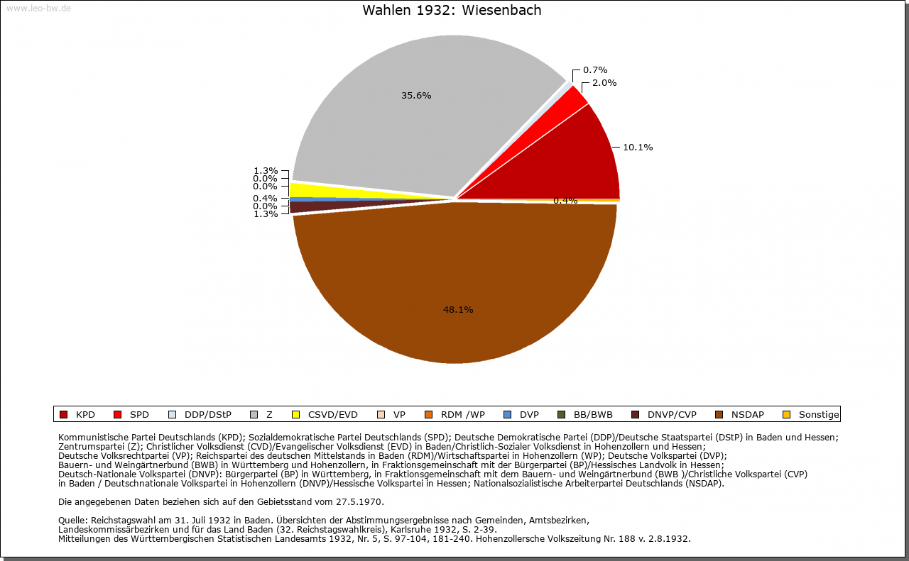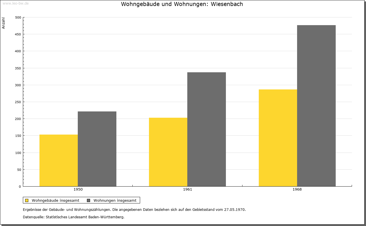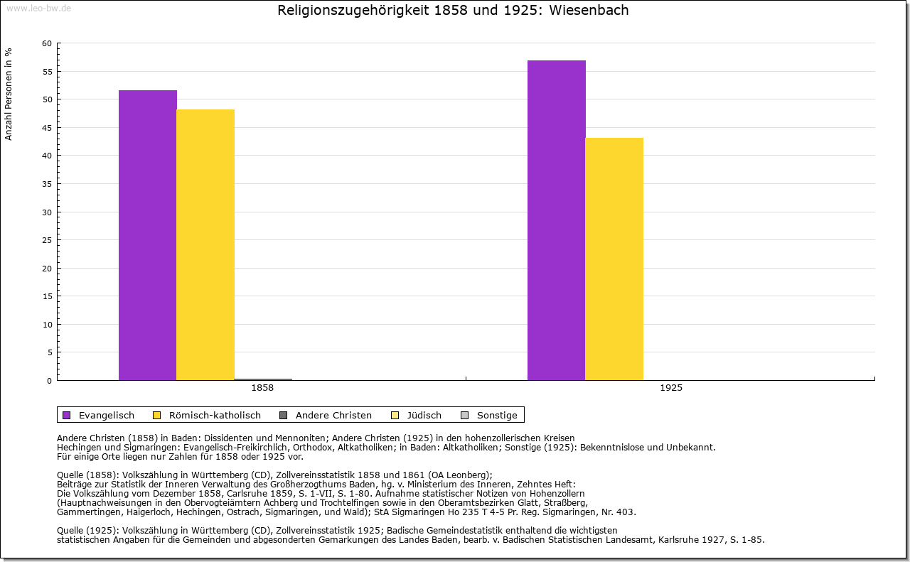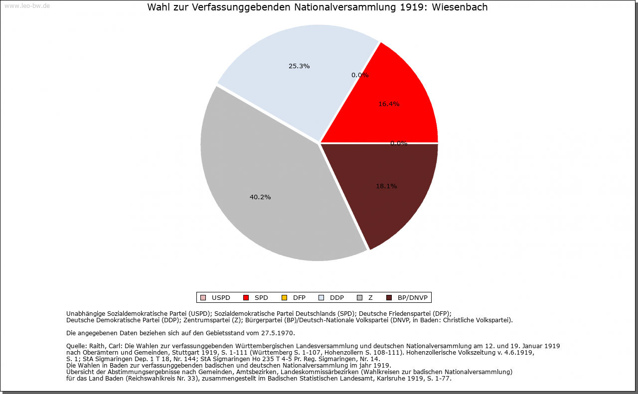 | Geschichte: | 764 Wisinbach (Fälschung 12. Jahrhundert), 1229 Wisenpach, von Wiese (?). Ausbauort der Karolingerzeit. Abgegangene Burg südöstlich des Orts Vorgänger des Dilsbergs, im Besitz der Grafen von Lauffen, wohl von diesen im 12. Jahrhundert mit Grundbesitz an Kloster Ellwangen geschenkt, das die bisherige Propstei Schriesheim, eine reine Güterverwaltung, dorthin verlegte. Die Ortsherrschaft mit dem Dilsberg, die Oberhoheit mit der Meckesheimer Zent um 1330 an die Pfalz. 1803 badisch, Amt Neckargemünd, 1857-1863 Amt Eberbach, dann Heidelberg. |