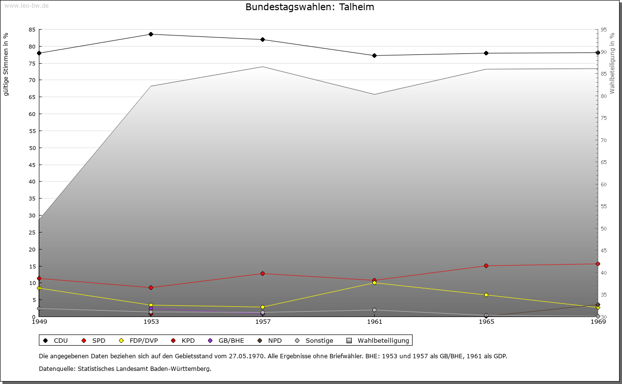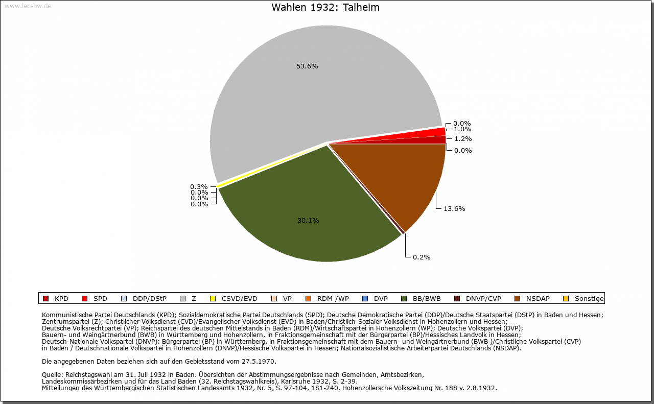 | Geschichte: | Obertalheim: 766 (?), 768 (beides Корien 12. Jahrhundert) Dalaheim. Wohl in der frühen Merowingerzeit angelegt und nach dem Gelände benannt. Erst im 14. Jahrhundert Ober- u. Untertalheim unterschieden. Zwischen 766 und 874 zahlreiche Schenkungen in Talheim an Kloster Lorsch, sicher z. T. auf Ober- und Untertalheim zu beziehen, z. T. auch auf Talheim (Stadt Messingen, Landkreis Tübingen). In Horb Patriziergeschlecht von Talheim, vielleicht aus örtlichen Ministerialen hervorgegangen. Die Oberherrschaft beim jeweiligen Besitzer von Horb. 1385 Obertalheim und ein Teil von Untertalheim als hohenbergisches, dann österreichisches Lehen an die Kechler von Schwandorf. Talheim steuerte trotz österreichischer Landeshoheit zum Ritterkanton Neckar-Schwarzwald und fiel 1805 an Württemberg. Zunächst Oberamt Horb, 1810 Oberamt Nagold, 1938 Landkreis Horb. Untertalheim: 1385 Nider Talheim. Geschichtliche Entwicklung wie in Obertalheim, aber ein Teil von Untertalheim im 15. Jahrhundert nicht an die Kechler, sondern an die von Leinstetten und die von Emershofen ausgeliehen. |